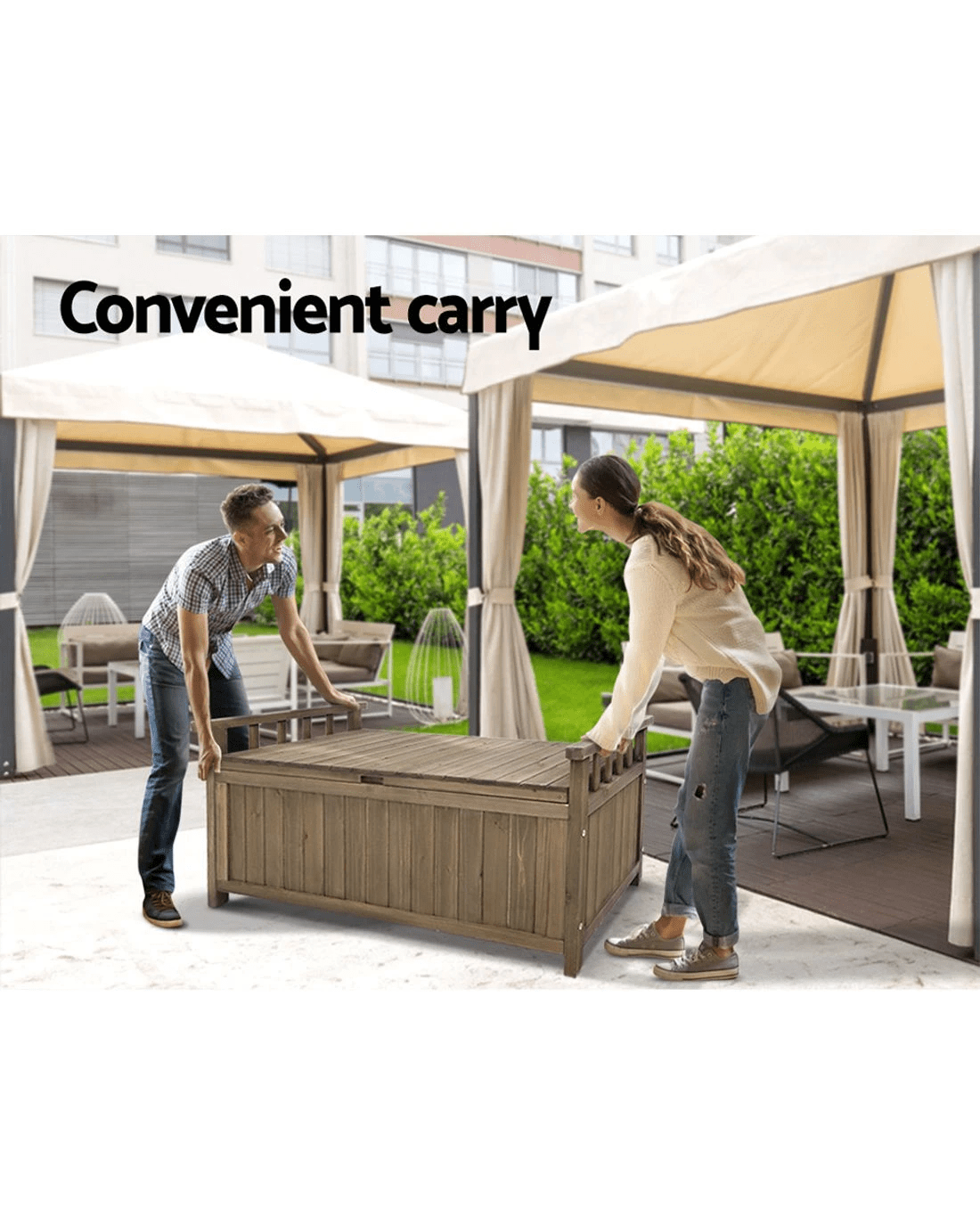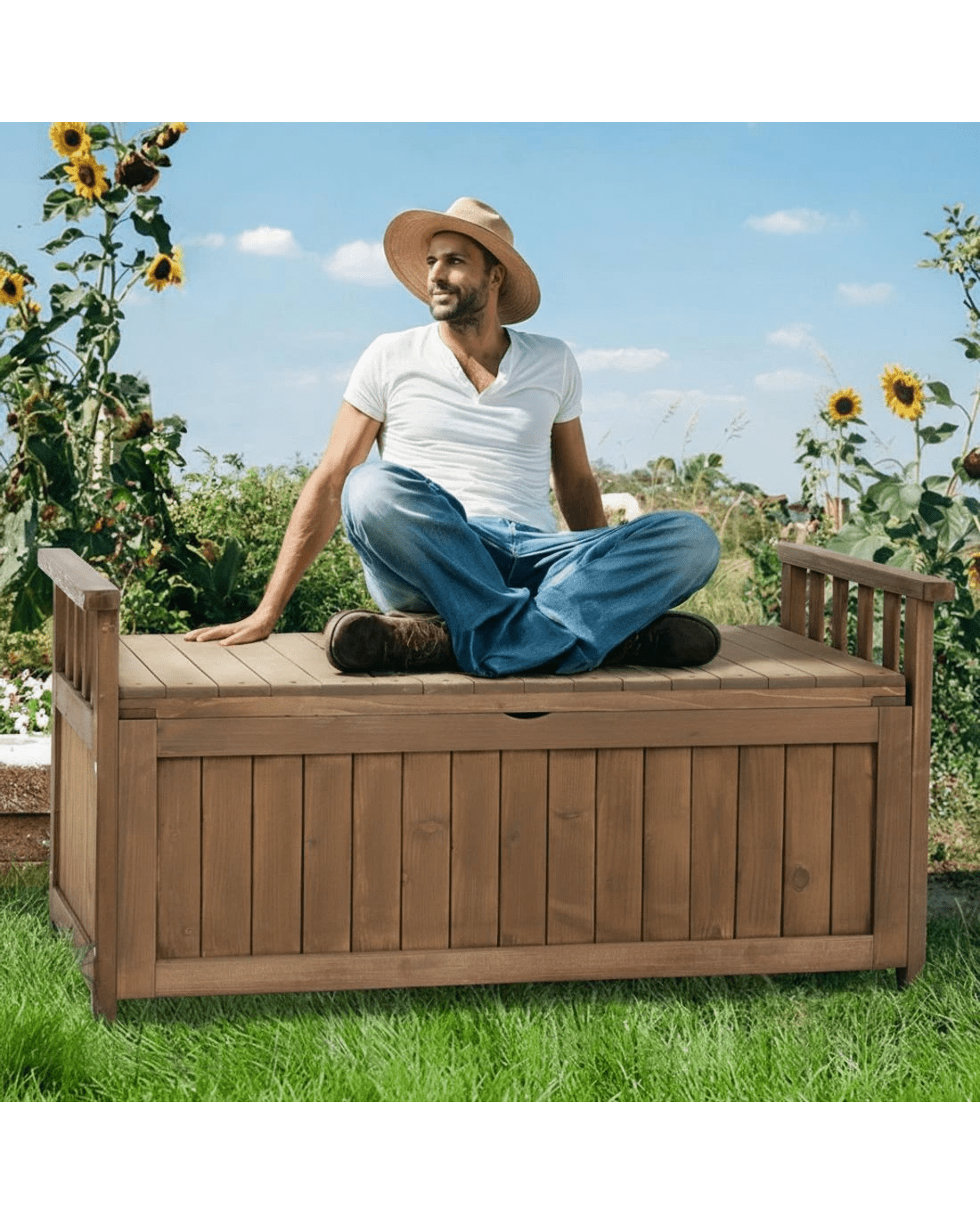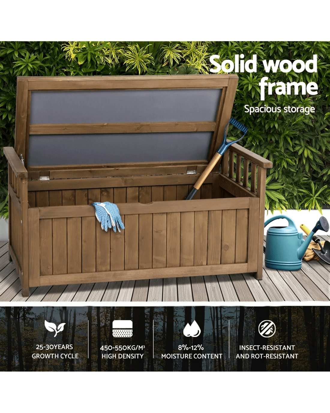 Gardeon Outdoor Storage Bench Box Wooden Garden Toy Tool Sheds Patio Furniture - Brown