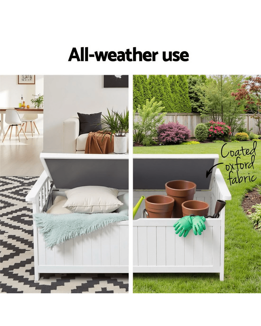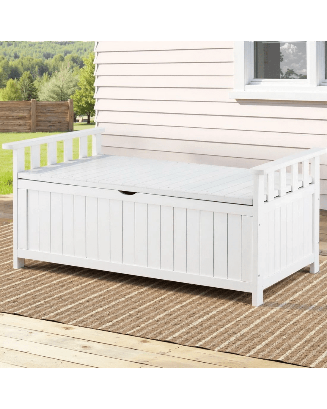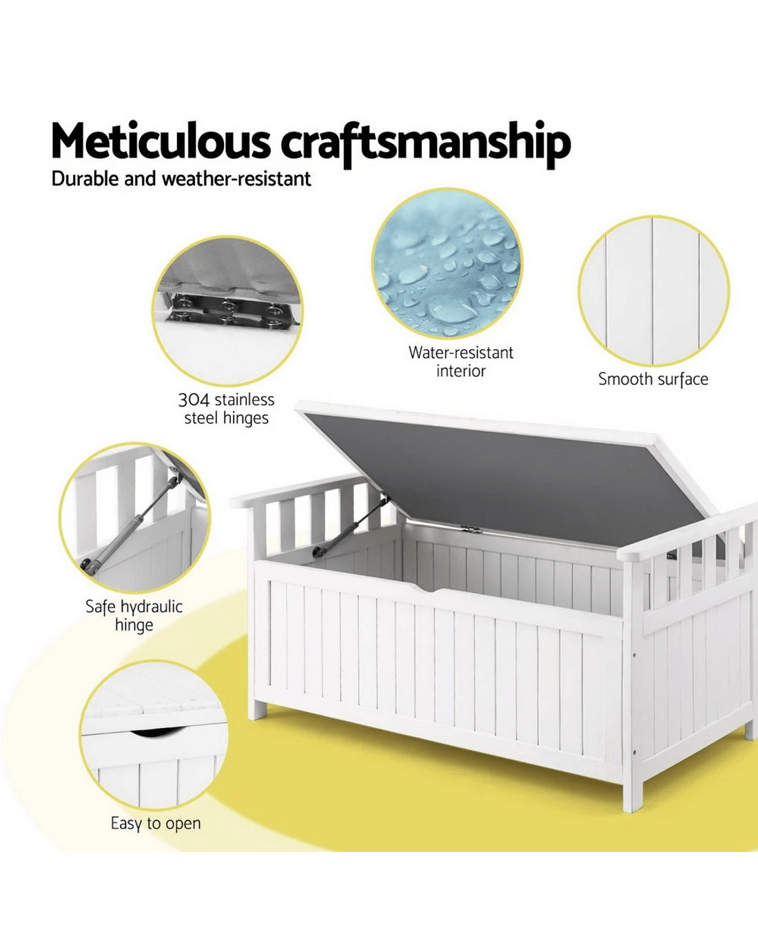 Gardeon Outdoor Storage Bench Box Wooden Garden Toy Tool Patio Furniture - White