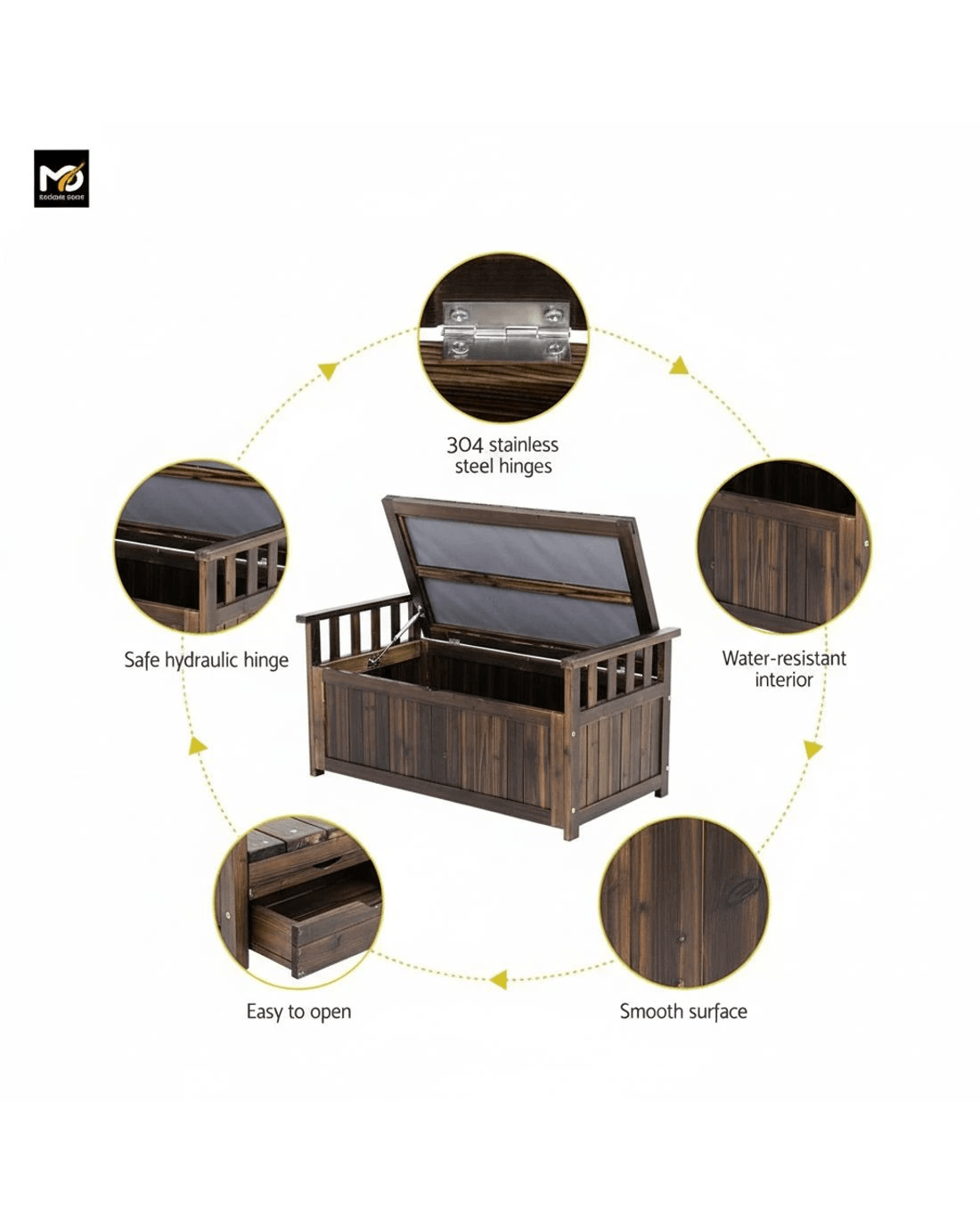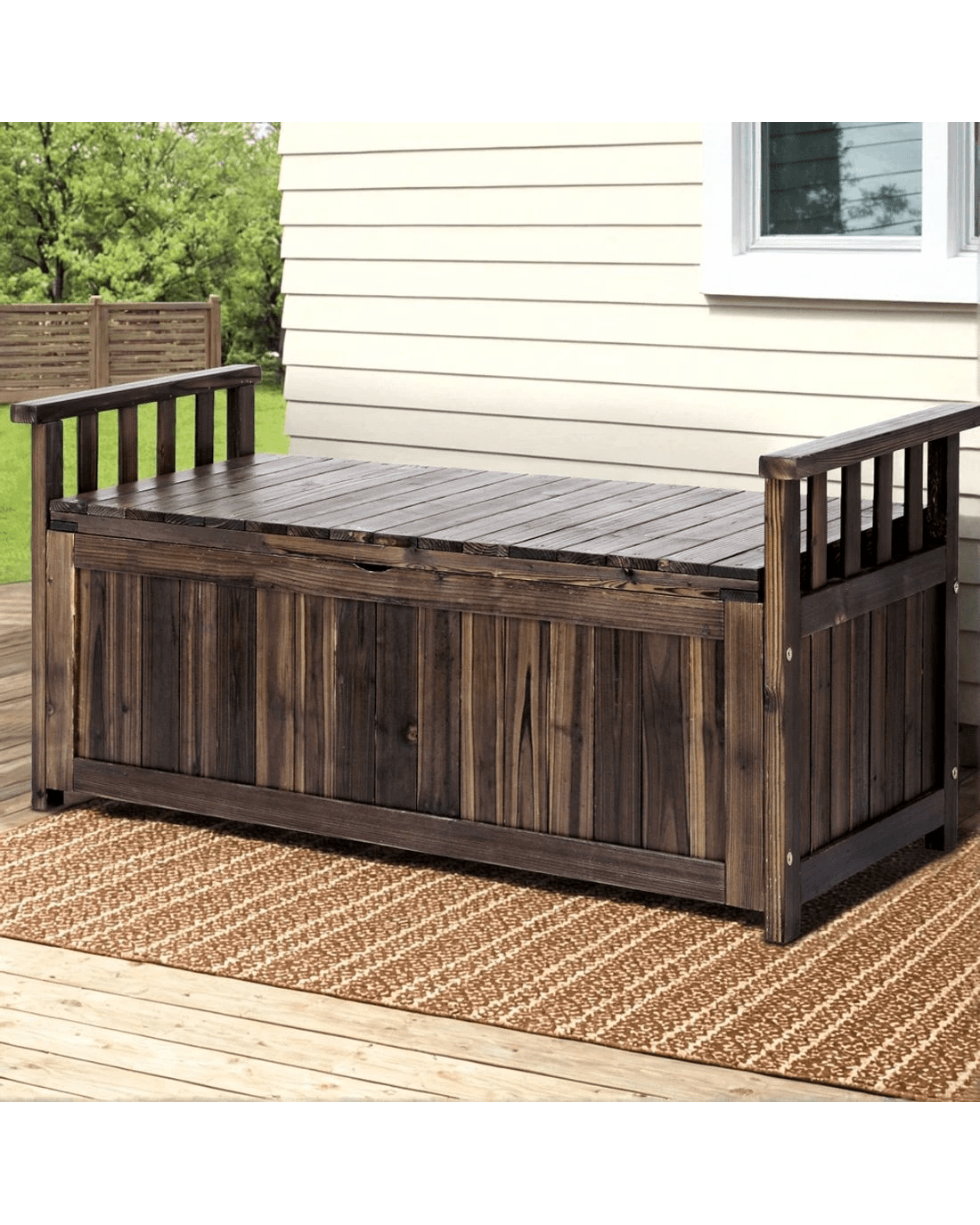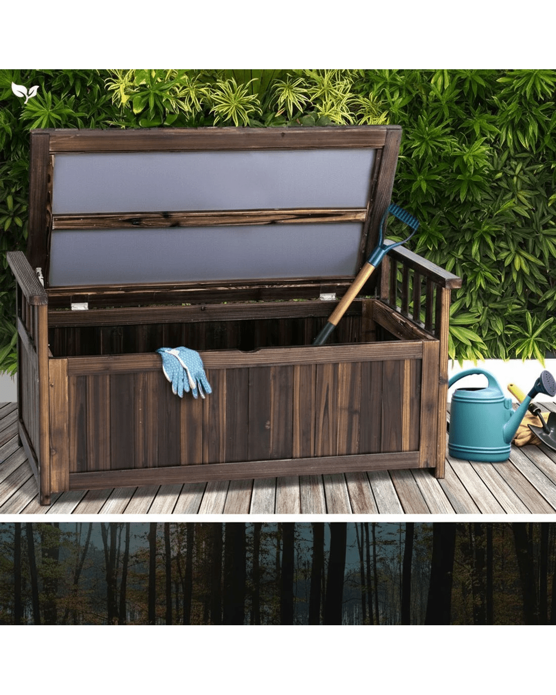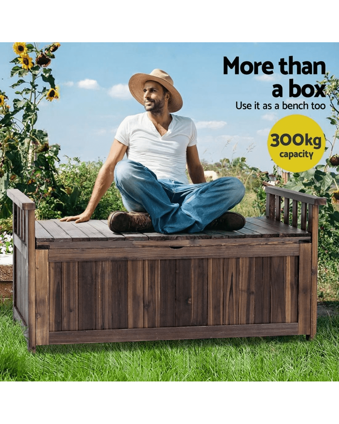 Gardeon Outdoor Storage Bench Box Wooden Garden Toy Tool Shed Patio Furniture - Charcoal