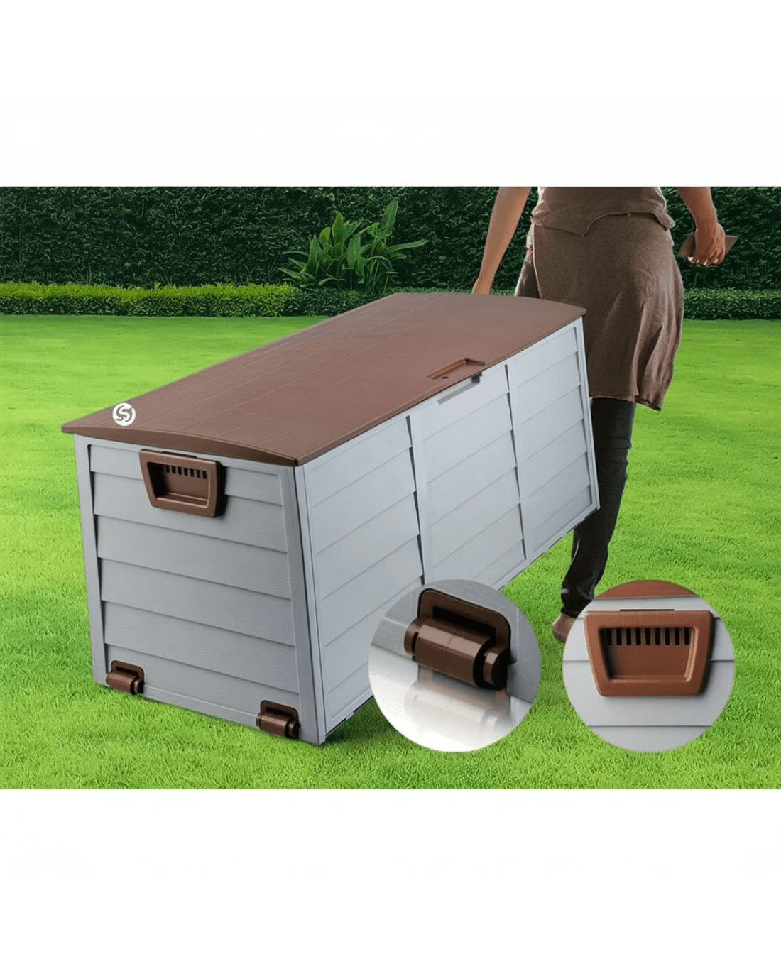 Things beginning to look a tad messy around the backyard? Need to tidy up the garage or shed? Or perhaps extra storage space for all your knick knacks and household stuff? We got just the thing for you. Our massive 290L Outdoor Storage Box. Well, you can use it indoors too.