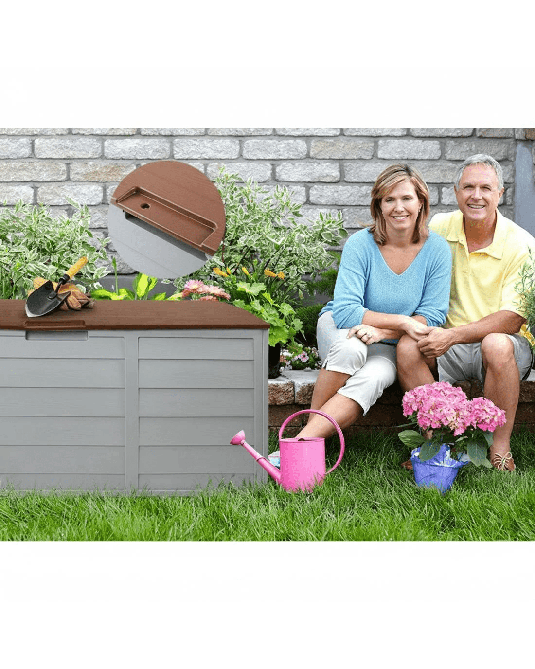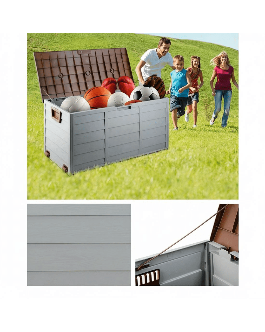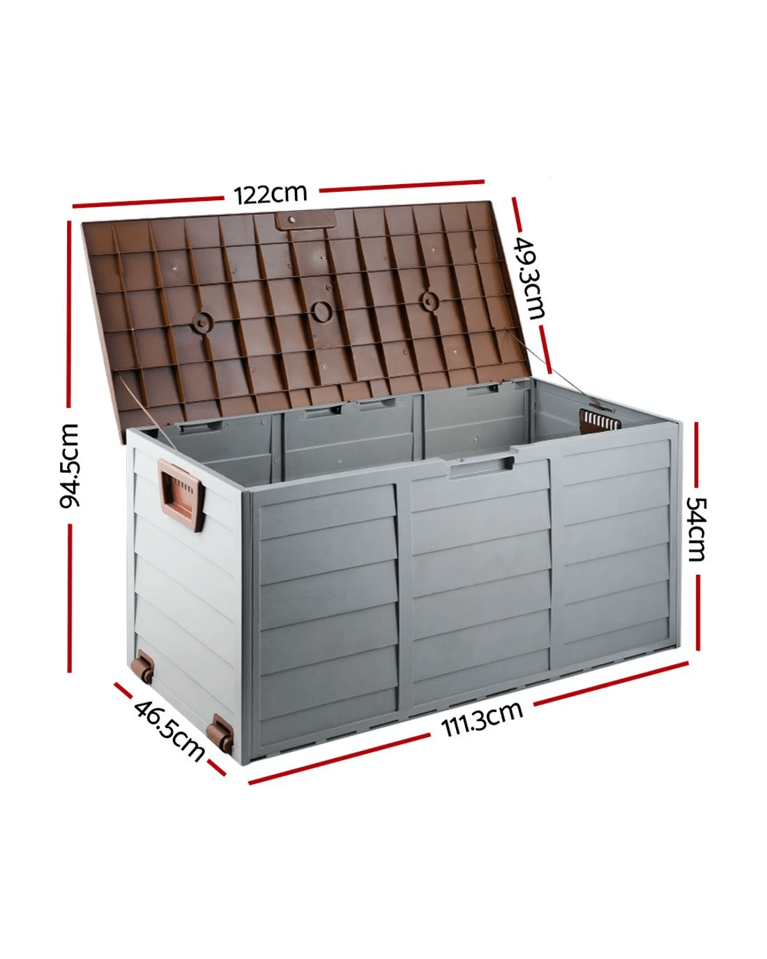 Finished in a modern two-tone shade of brown and grey, our Outdoor Storage Box is simple to assemble with all the supplied accessories and no tools are required. So make life easier for yourself with a neat and tidy home, garage, backyard or garden shed with our 290L Outdoor Storage Box. Get yours today.