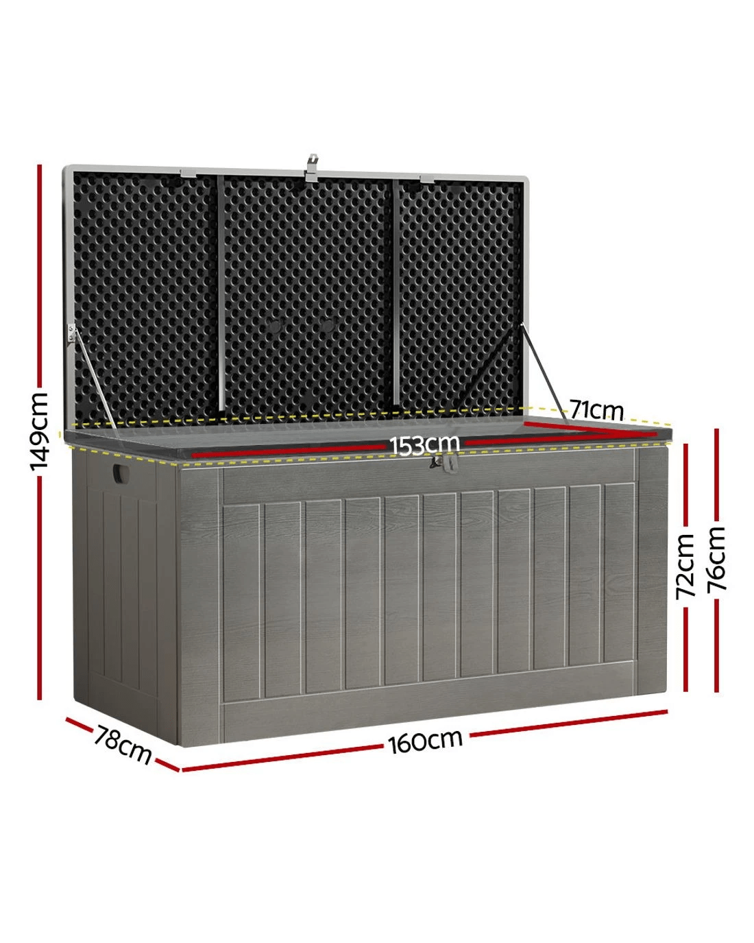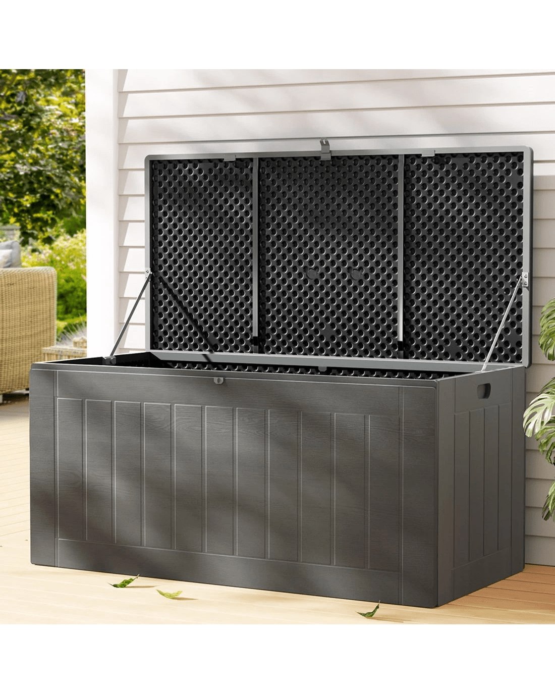 Looking for some extra storage space for your garden or outdoor essentials and tools? Gardeon has you covered with this stylish and versatile Outdoor Storage Bench. The outdoor box is made from PP material that is UV and weather resistant and boasts a strong double-layer construction for extra support. It has a storage capacity of 830L to fit all your outdoor or indoor essentials. It flaunts a fantastic 2-in-1 design: you can use it as a storage cabinet and a comfortable outdoor bench. It comes with a convenient moulded handle, anti-rust aluminium hinges, an inner lid stopper and a built-in lock. Easy to assemble and suitable for indoor and outdoor use, you can add style and function to anywhere in the home with a Gardeon Outdoor Storage Bench.