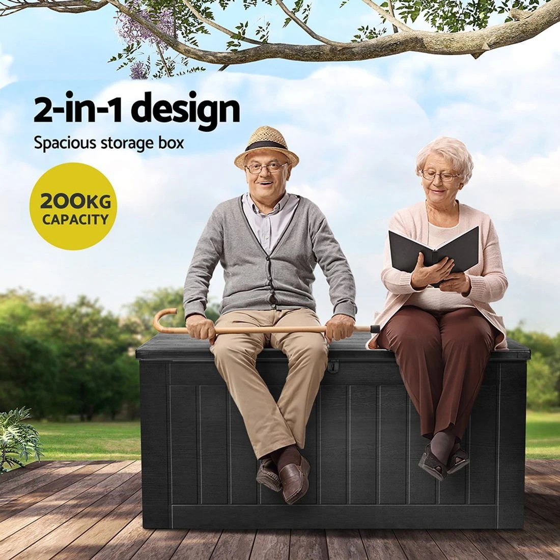 Gardeon Outdoor Storage Box 830L Container Lockable Bench Tool Shed - black