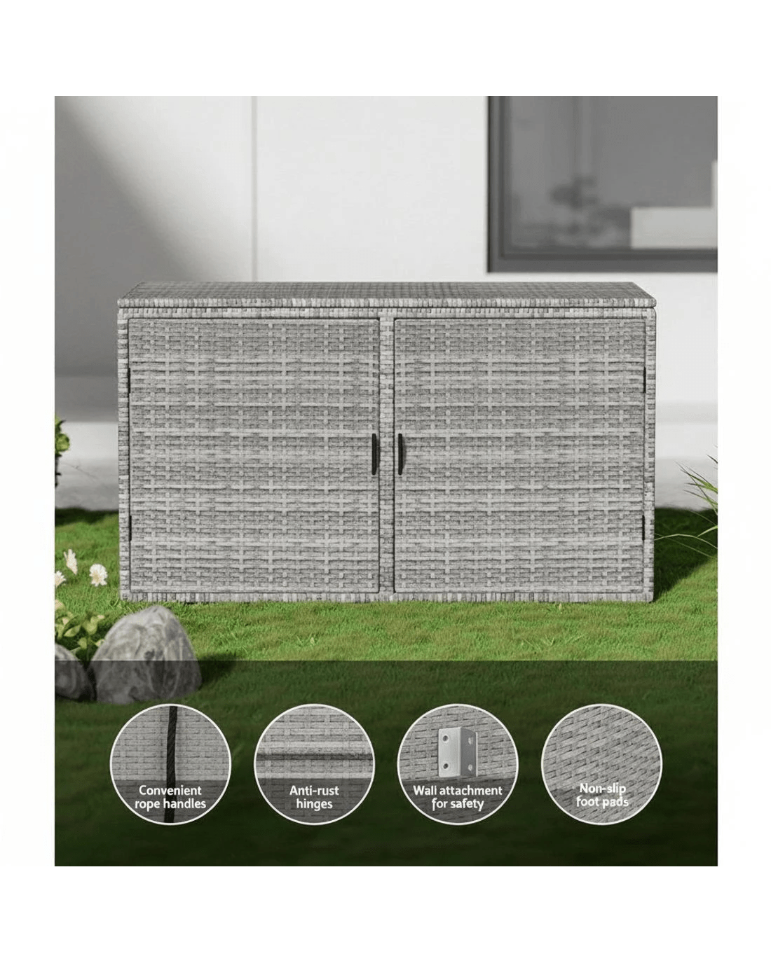 Sold by Aisle SixGardeon Outdoor Storage Cabinet Box Deck Wicker Shelf Chest Garden Shed Tools - Grey