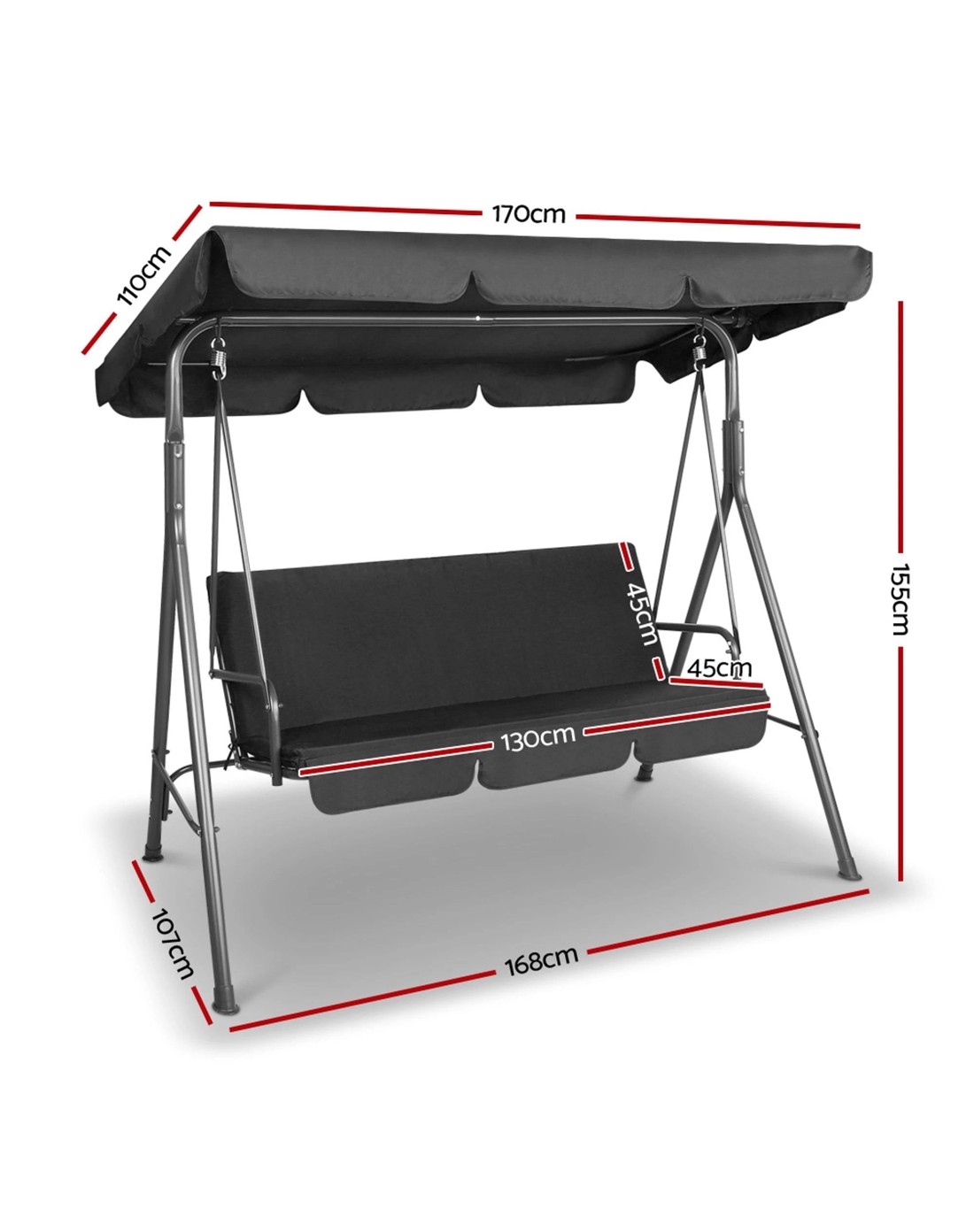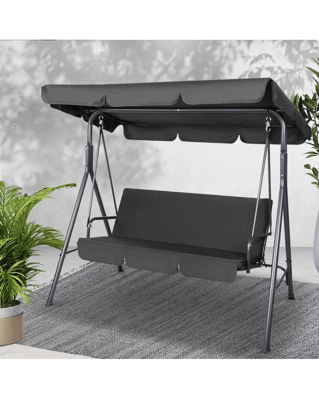 Gardeon Outdoor Swing Chair Garden Bench Furniture Canopy 3 Seater - Black