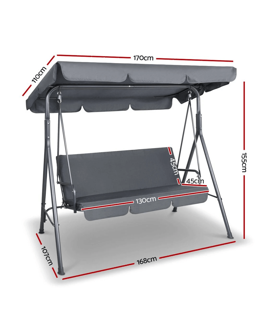 Gardeon Outdoor Swing Chair Garden Bench Furniture Canopy 3 Seater - Grey