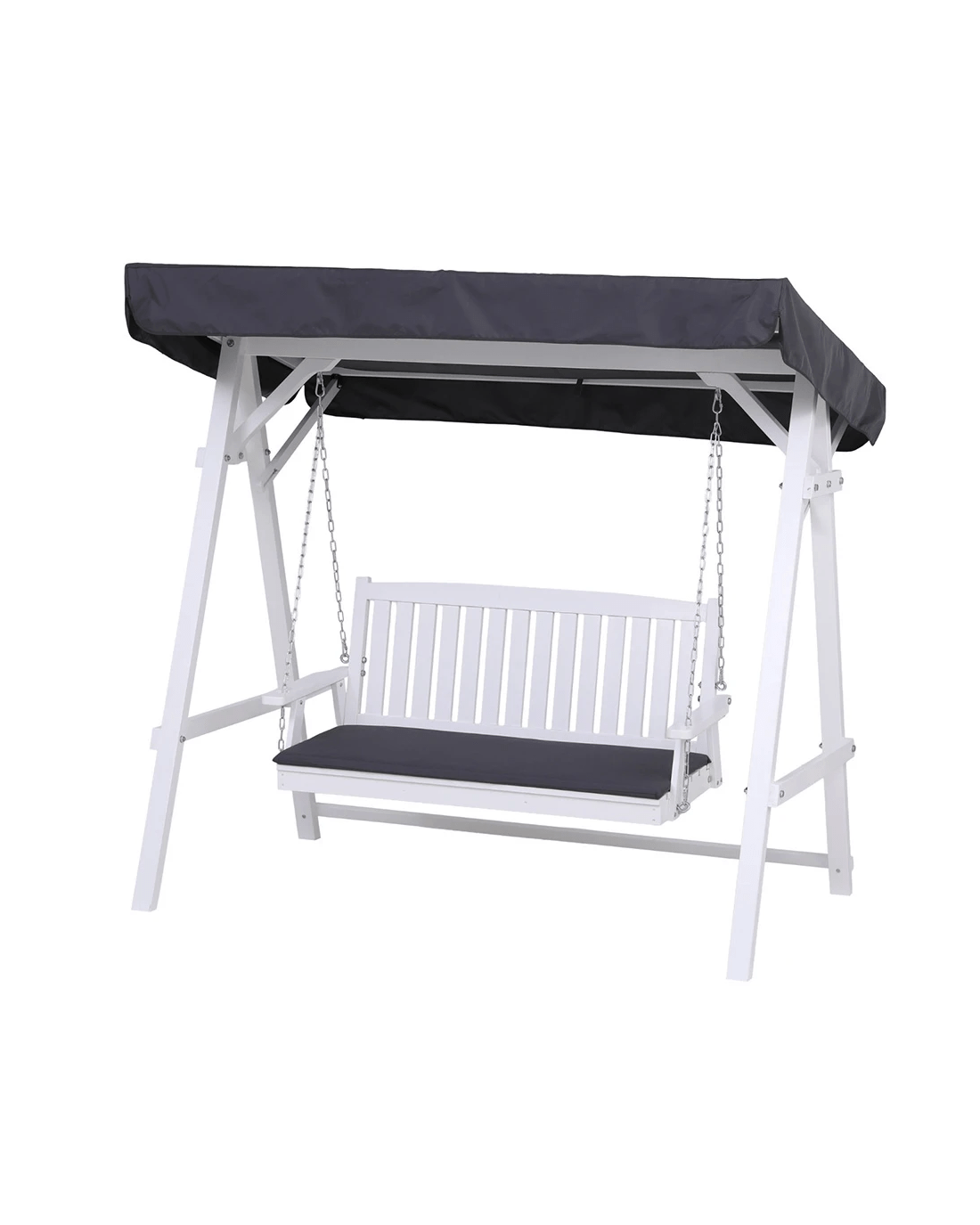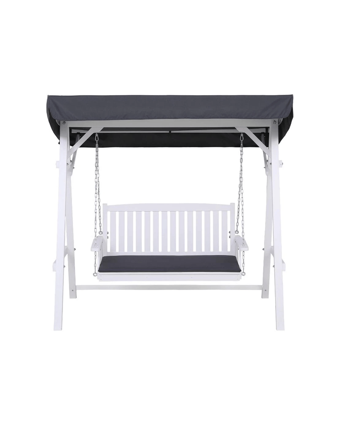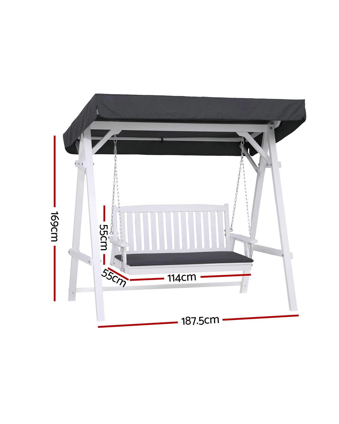 Gardeon Outdoor Wooden Swing Chair Garden Bench Canopy Cushion 3 Seater - White