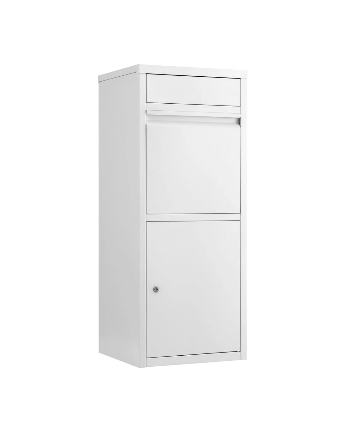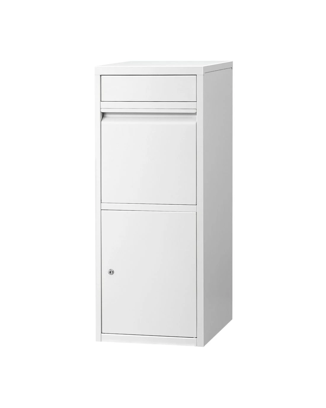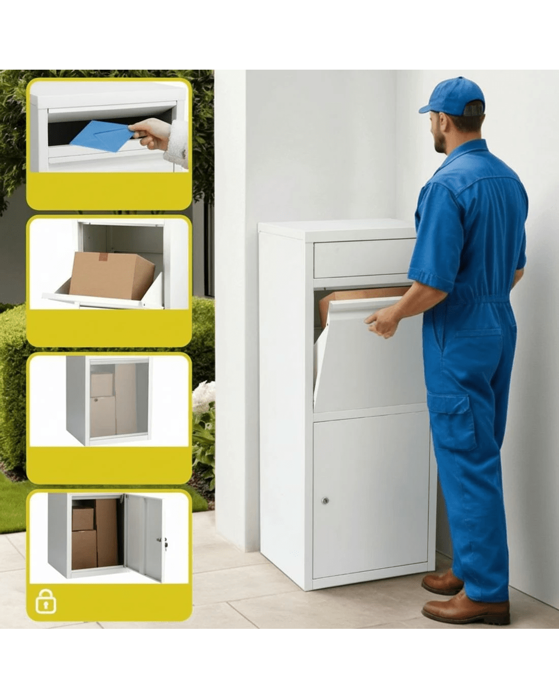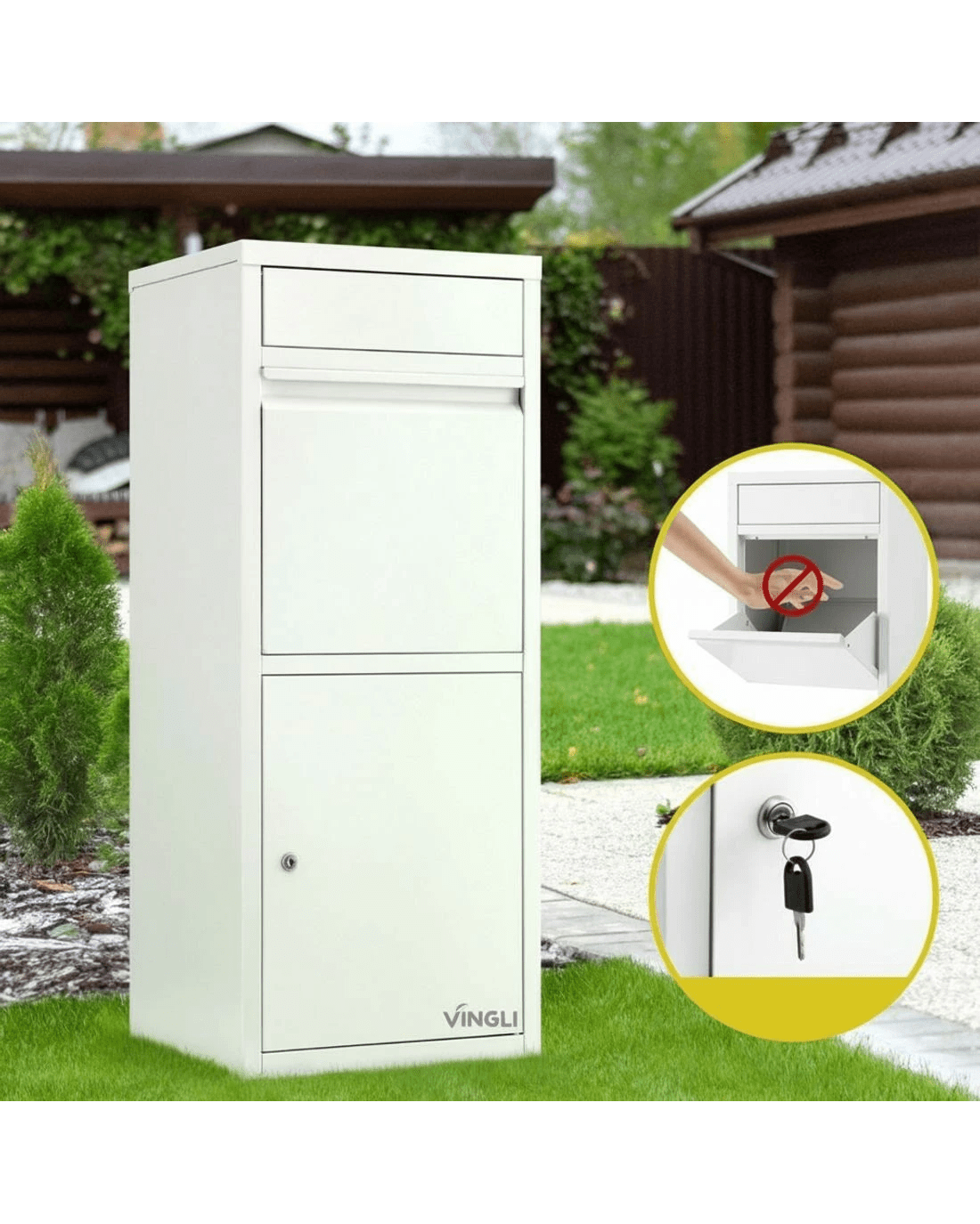 Heavy-duty weatherproof steel frame withstands Aussie elements. Features 2 slots drop design for mail + parcels with 90° large opening for bulky items. Secured locked cabinet includes 2 keys for safe collection. Large storage capacity with soft bottom cushion (2cm thick) protecting deliveries. Ideal for driveways or porches.