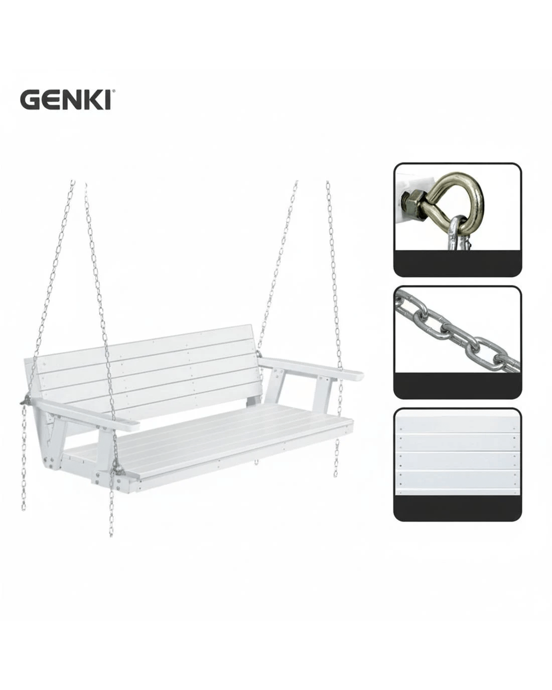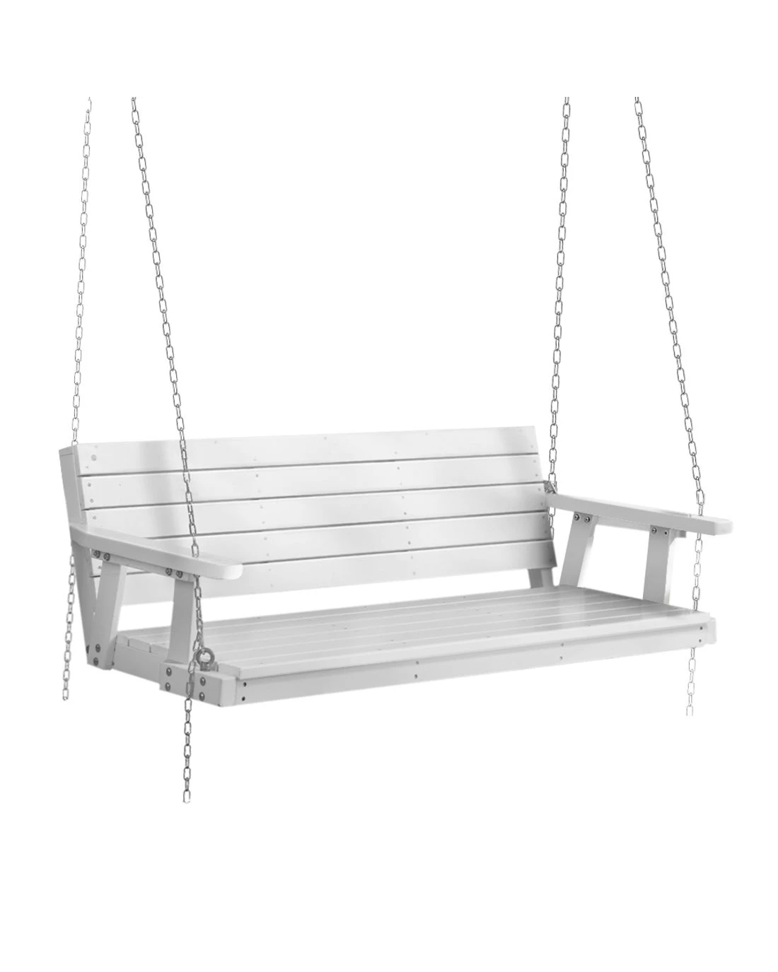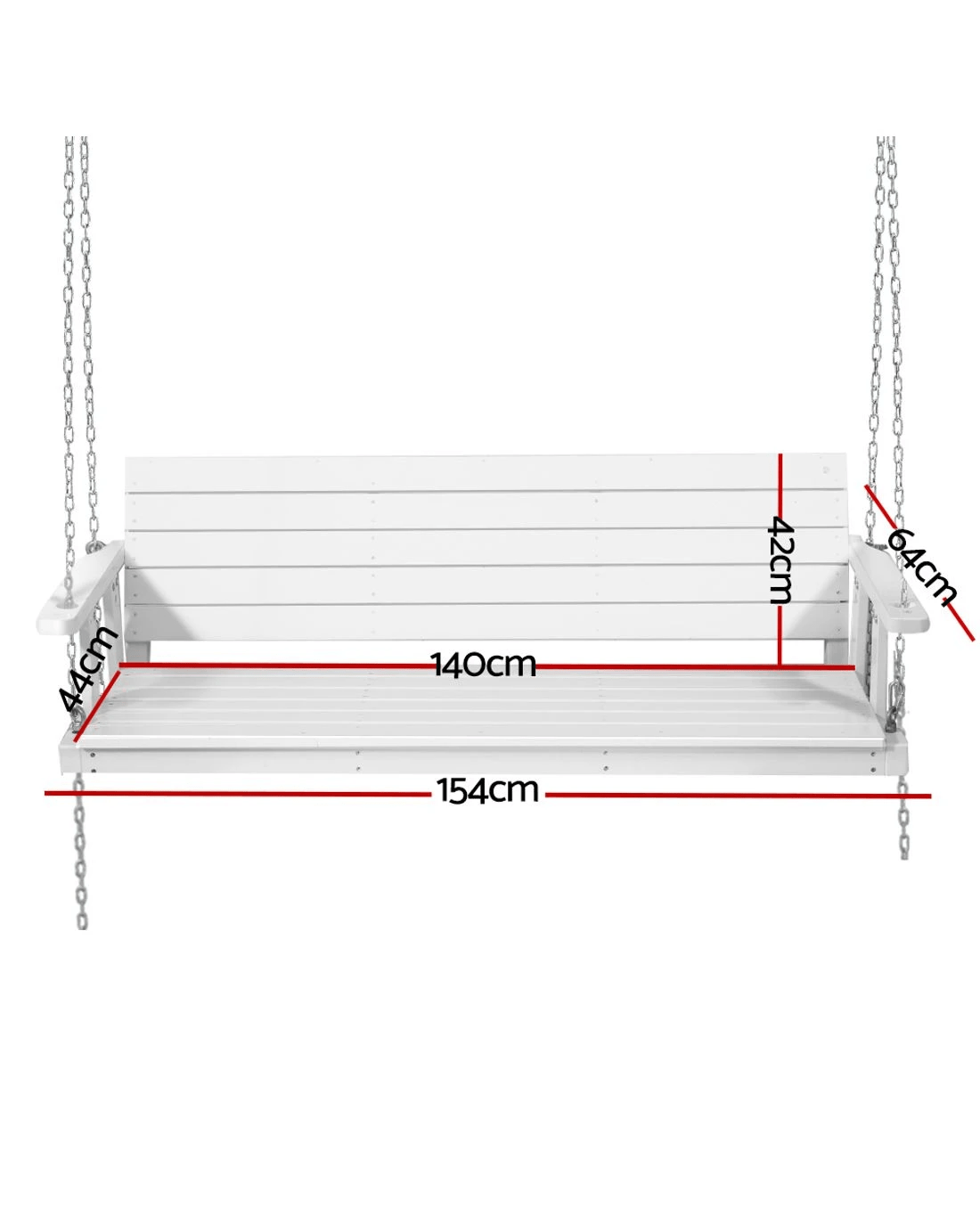 Gardeon Porch Swing Chair With Chain Outdoor Furniture Wooden Bench 3 Seat - White
