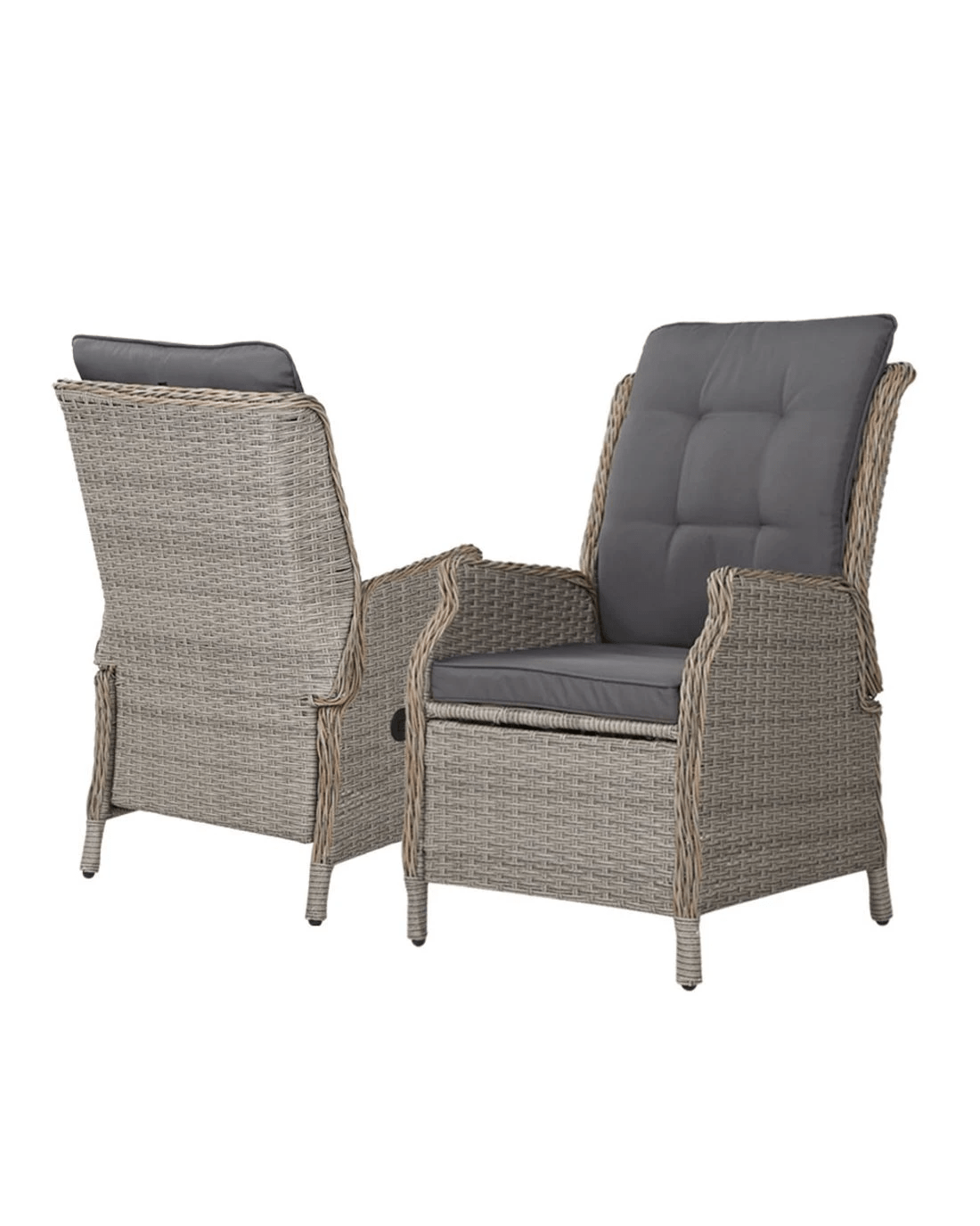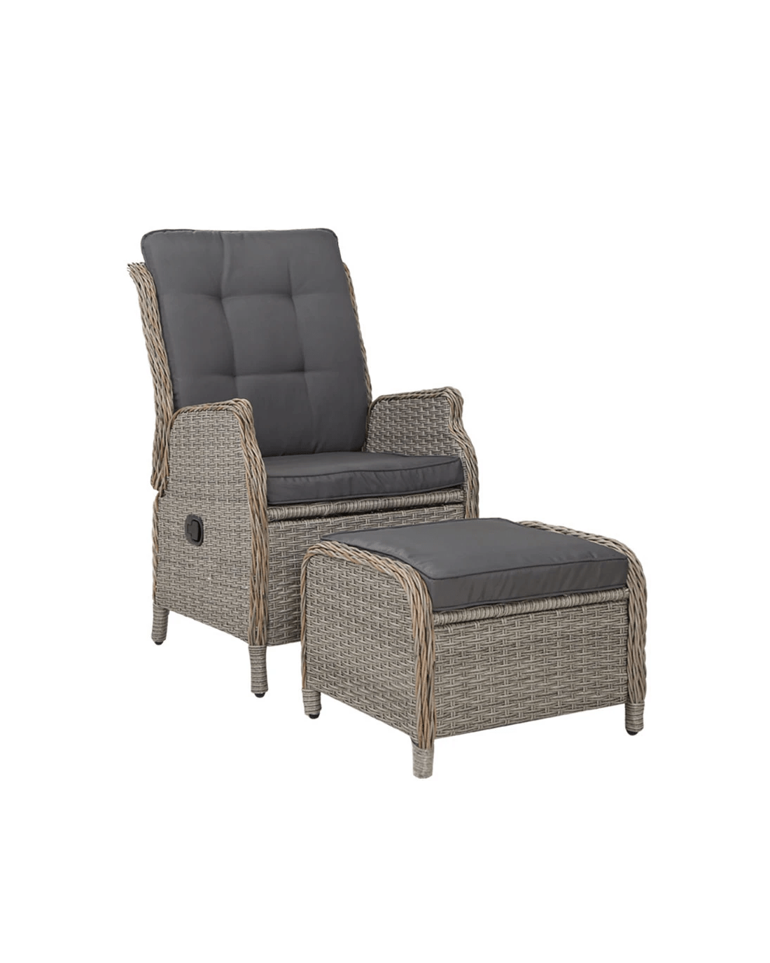Gardeon Recliner Chair Sun lounge Wicker Lounger Outdoor Furniture Patio - Grey