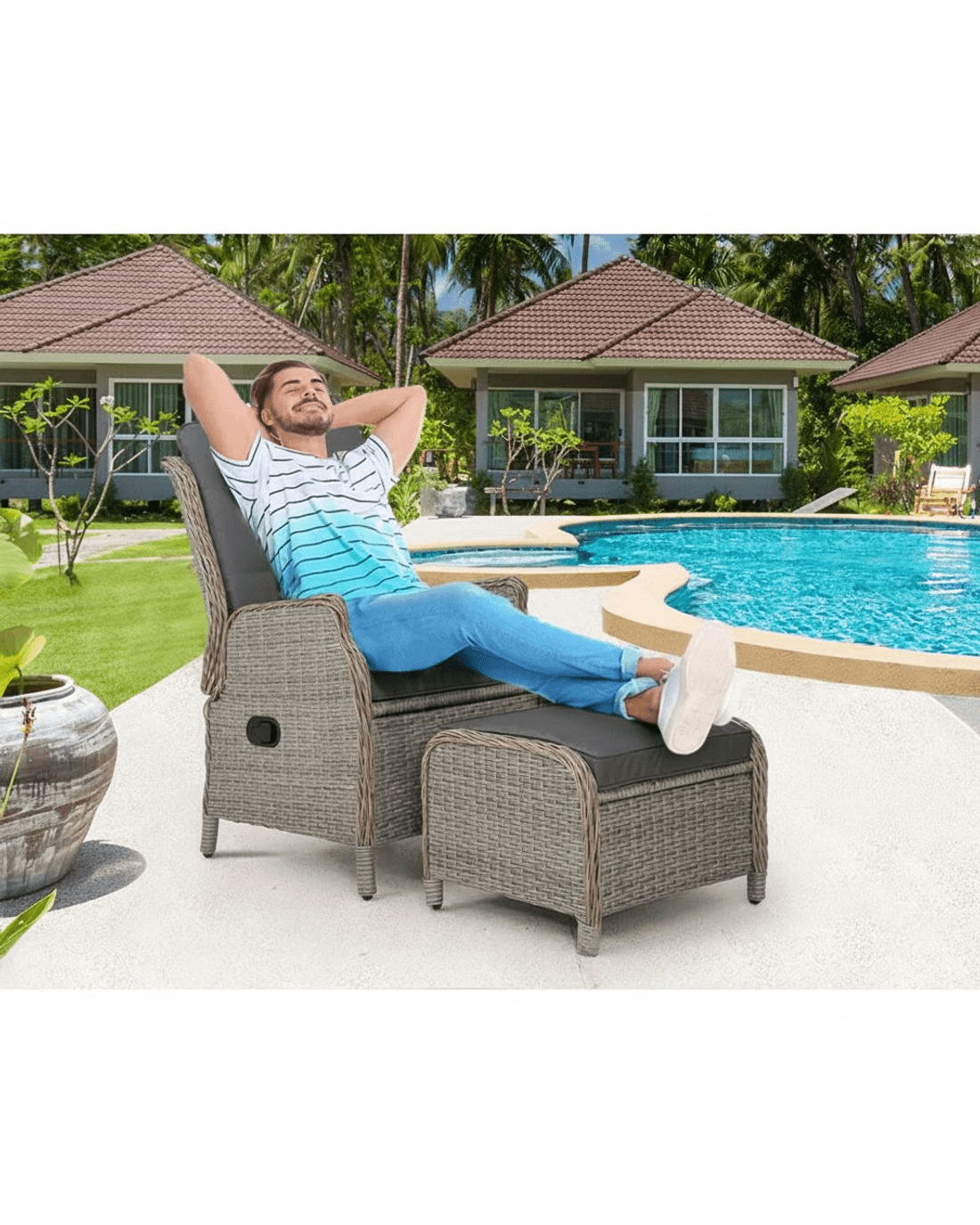 Now you can really sit back and chill in the outdoors with the Gardeon Wicker Recliner Set. Comprising an oversized recliner and matching ottoman, the outdoor ensemble is everything you need for relaxation in elegant wicker style. The set is made of UV-resistant and weather-resistant PE wicker so that you never have to worry about rust, corrosion or weathering issues. The heavy-duty powder-coated steel frame is sturdy and hardy and will stand up to robust use easily. More importantly, the recliner has an adjustable backrest to suit your angle of rest. Better still, the seat cushion is made of high-density foam for ultra-comfort while the zipped cover is weather-resistant, removable and washable. Not least, the useful ottoman is just perfect for putting your feet up. Yes, it is indeed paradise under the sun, moon and stars. Have it outdoors or indoors, the wicker recliner set is equally at home with its exquisite design and unique presence for any home decor enthusiast.
