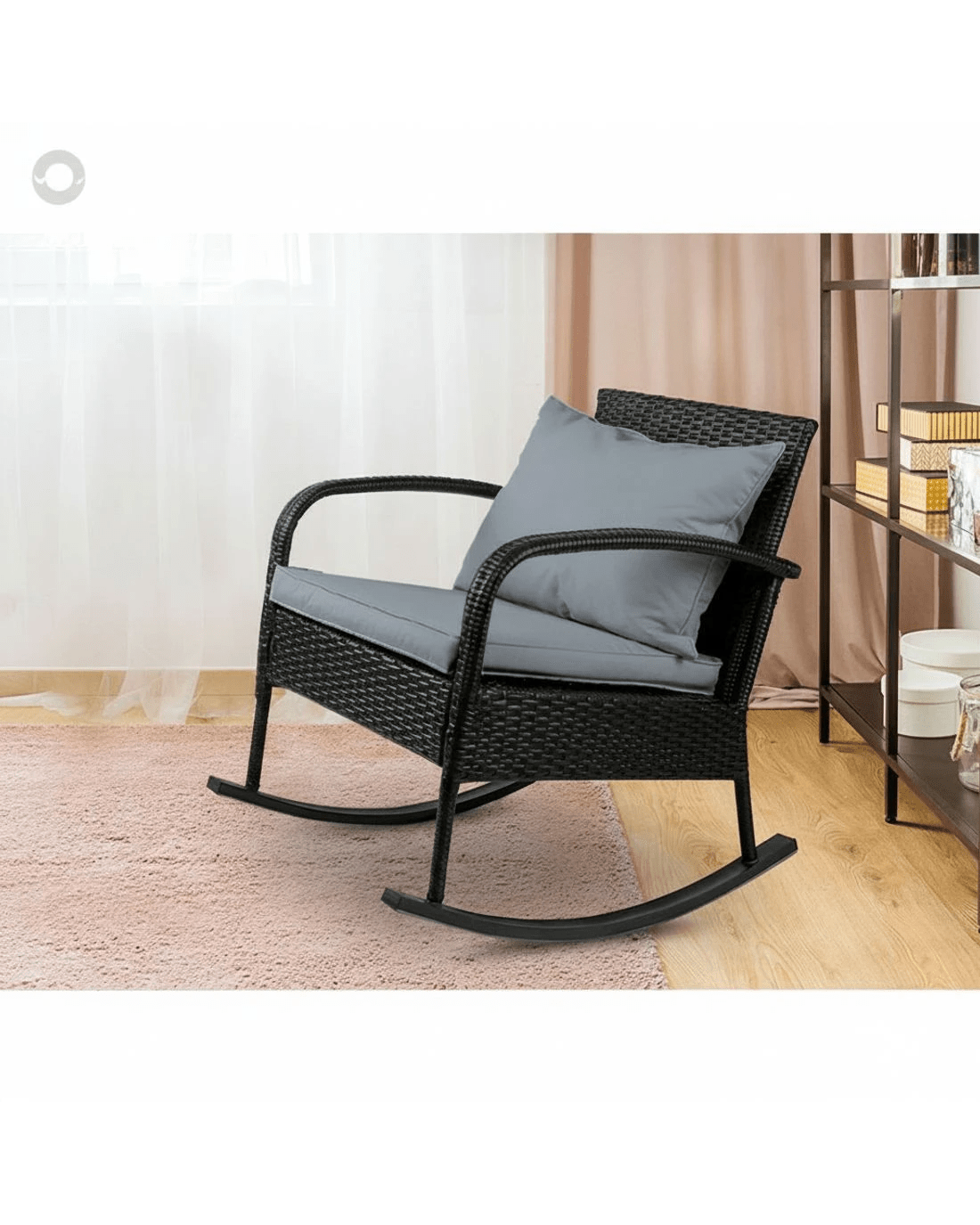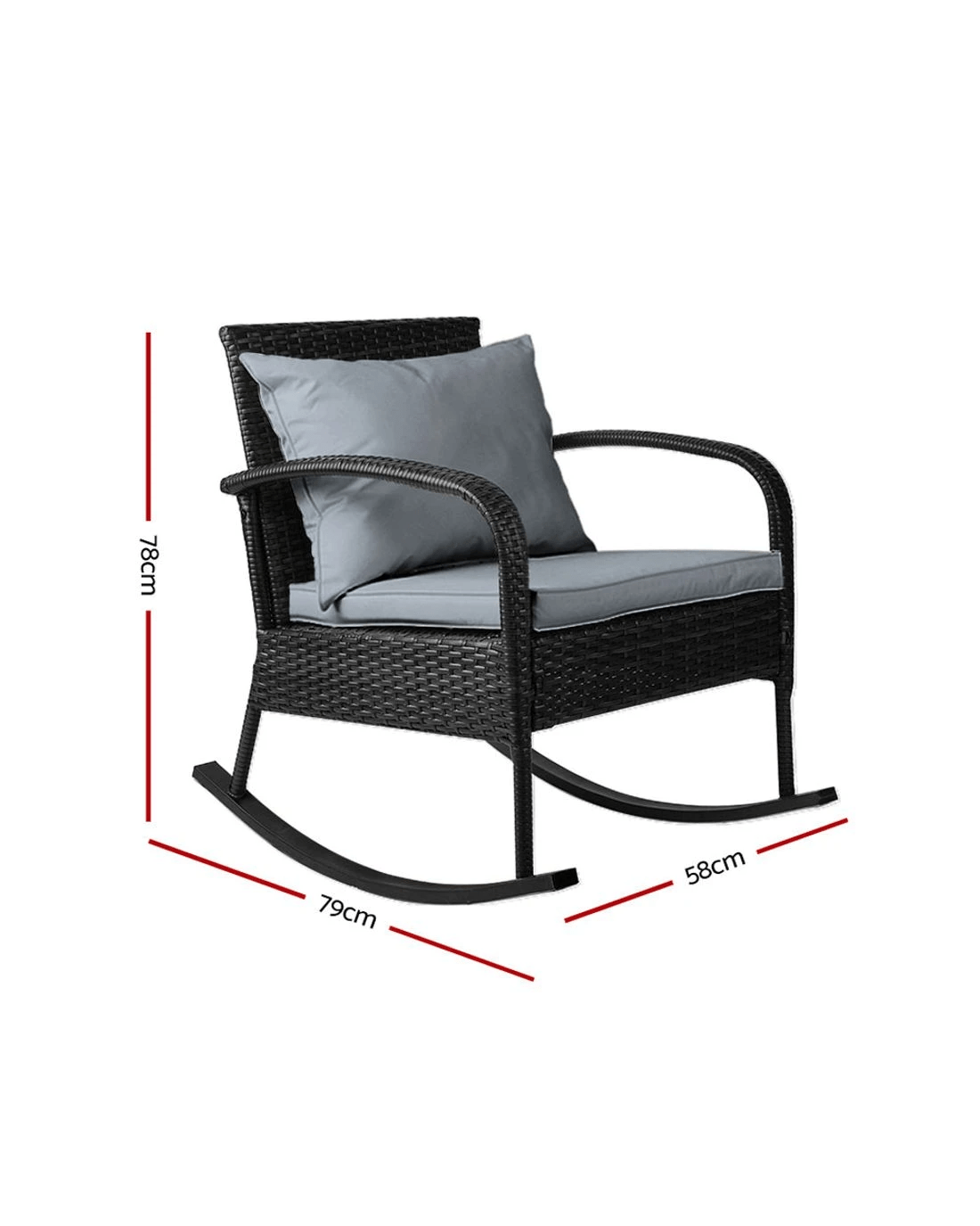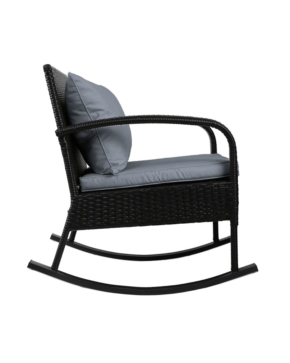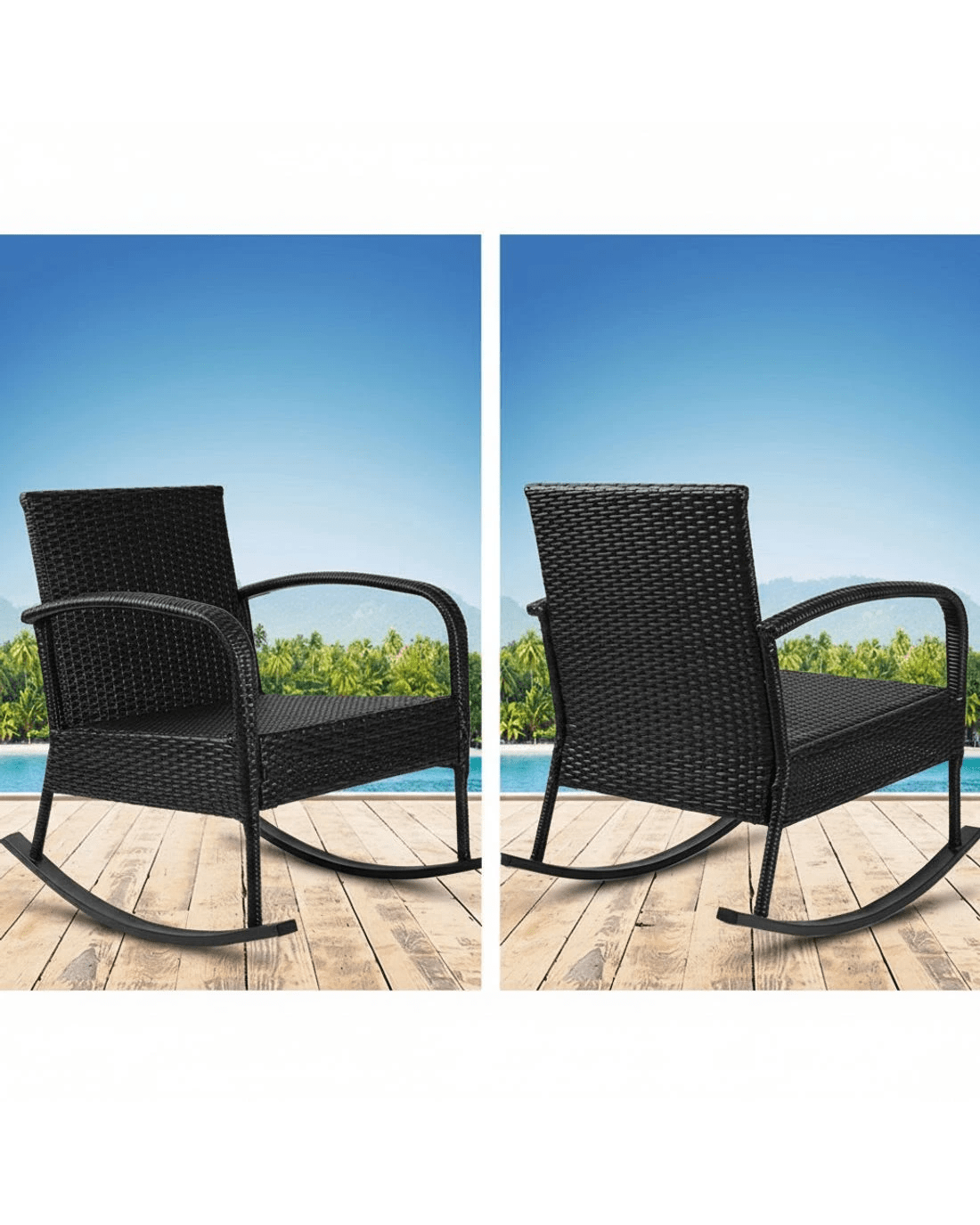 Gardeon Rocking Chair Wicker Outdoor Furniture Garden Patio Lounge Setting - Black