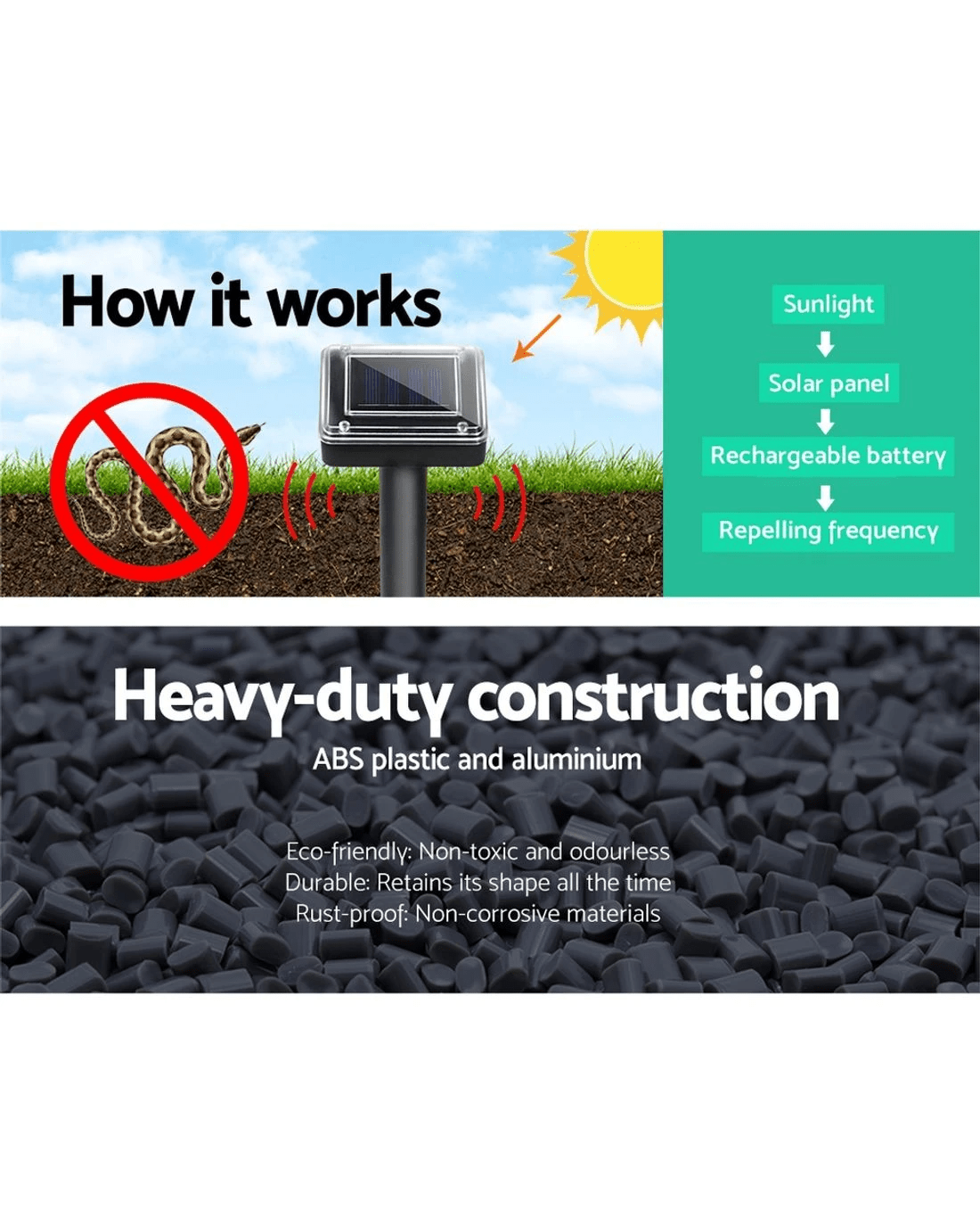 Gardeon Snake Repeller 10 X Multi Pulse Ultrasonic Solar Powered Pest Repellent - Black