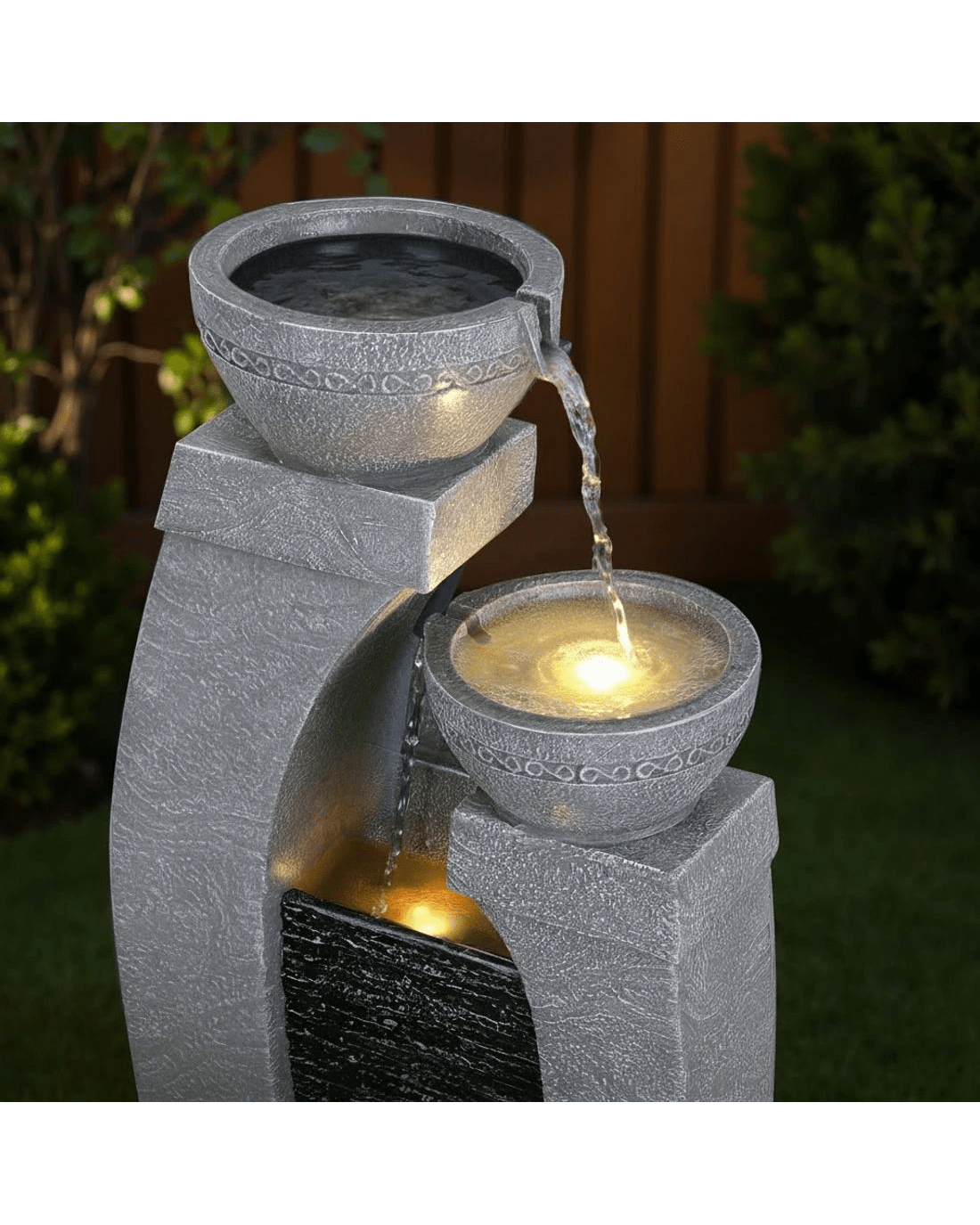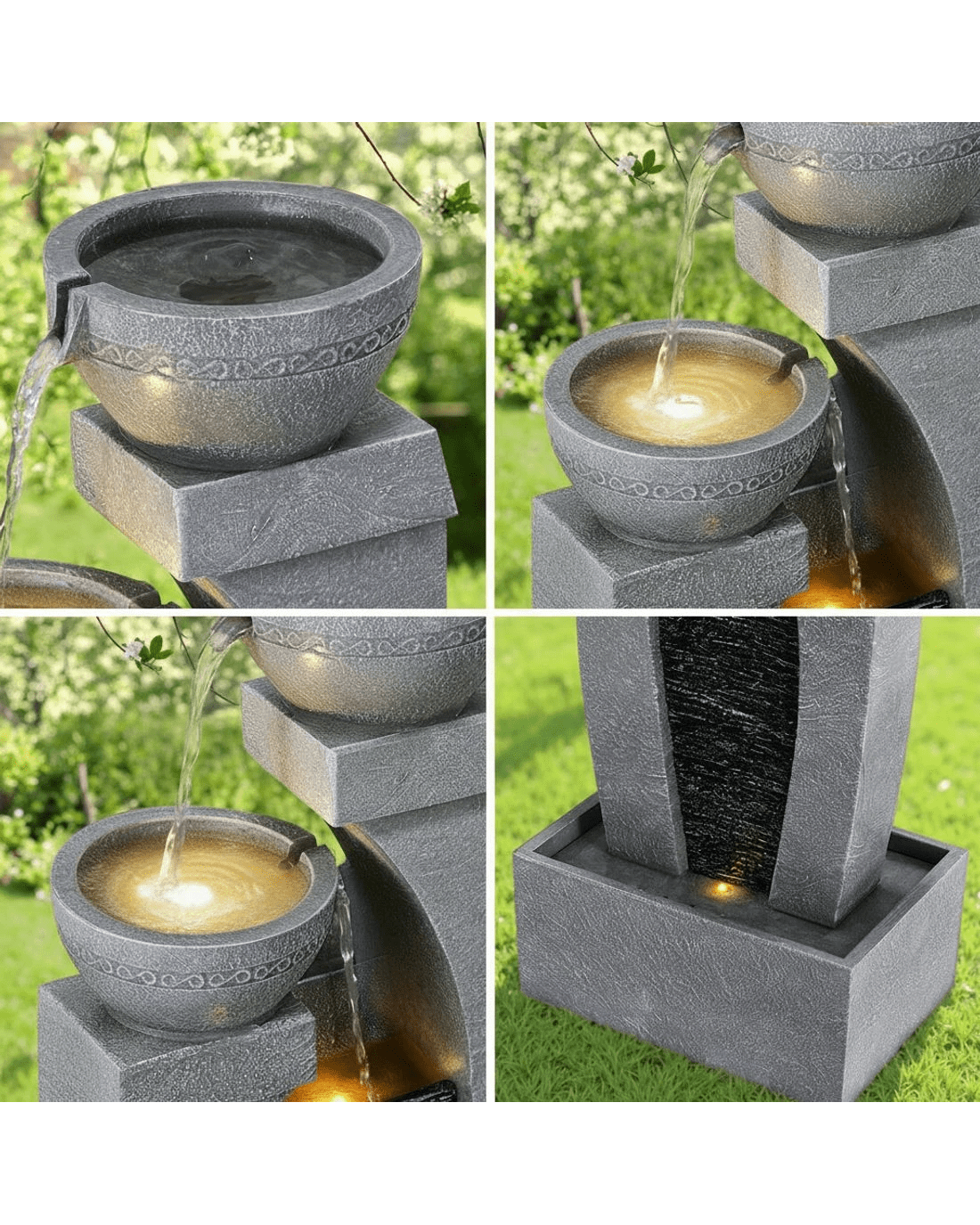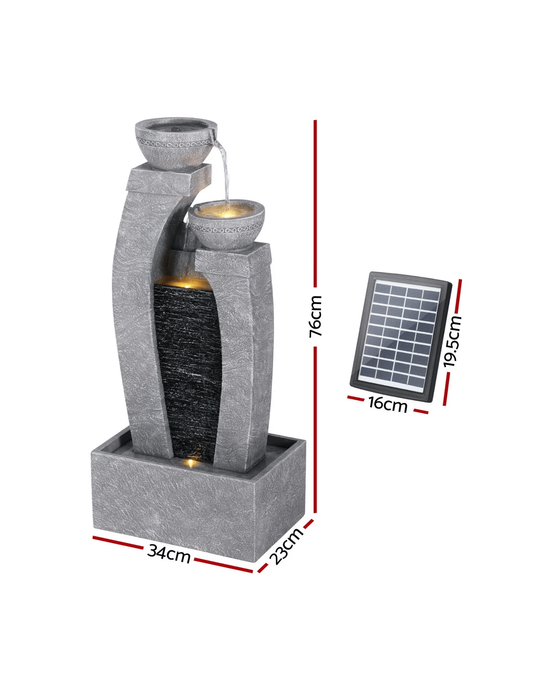 Sold by Aisle SixGardeon Solar Fountain Water Feature Outdoor Fountain Indoor 3-Tier Cascading - Grey