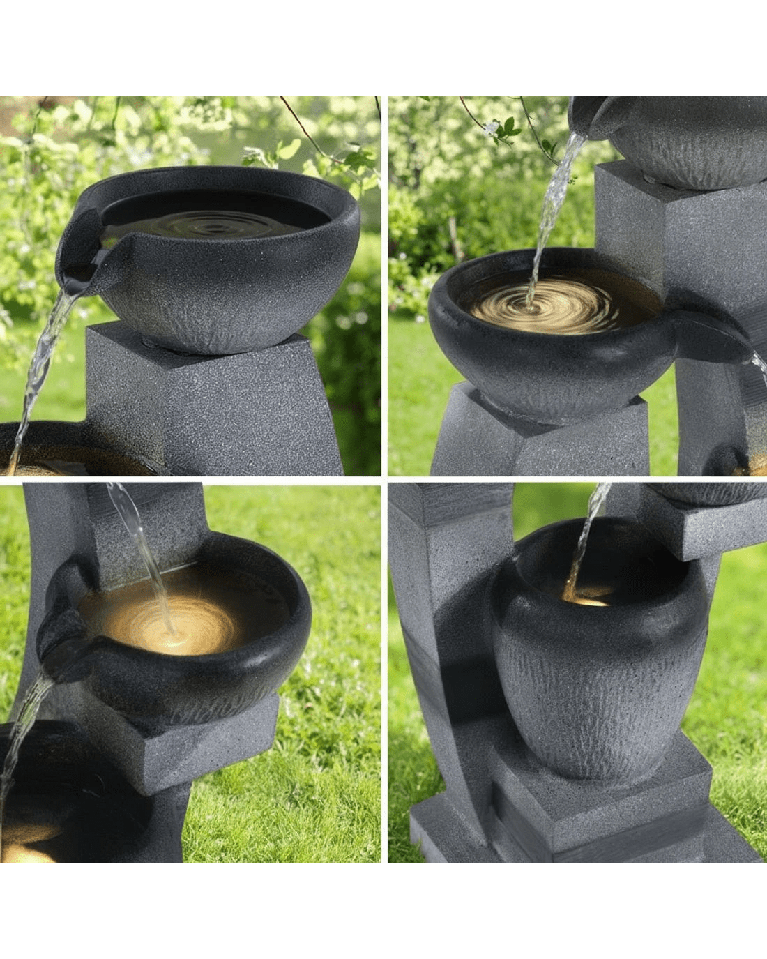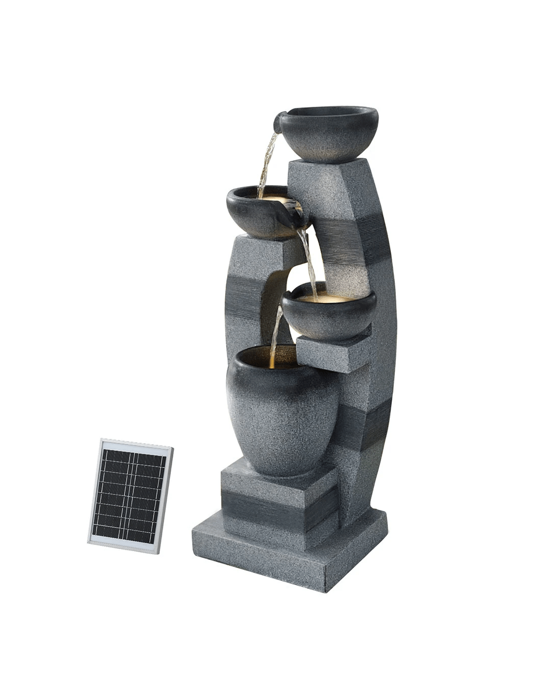 Gardeon Solar Fountain Water Feature Outdoor Fountain Indoor 4 Tier Bowl Cascading - Grey