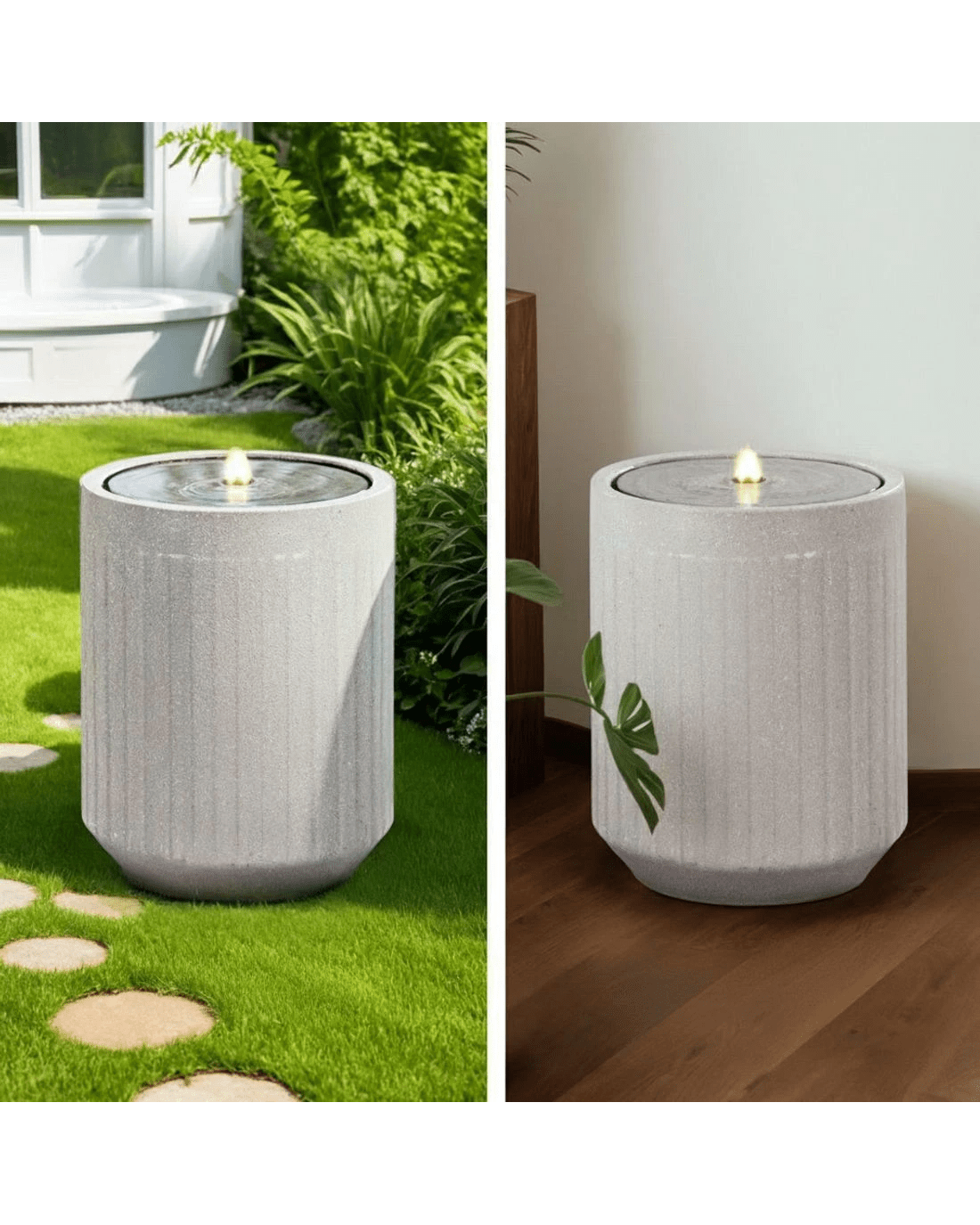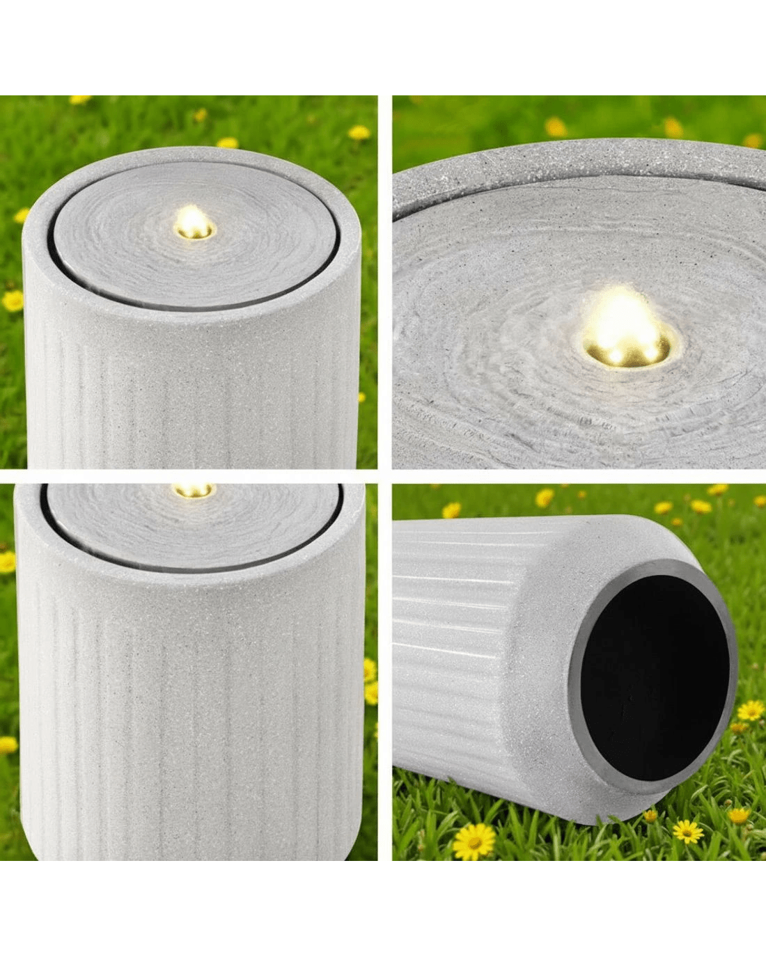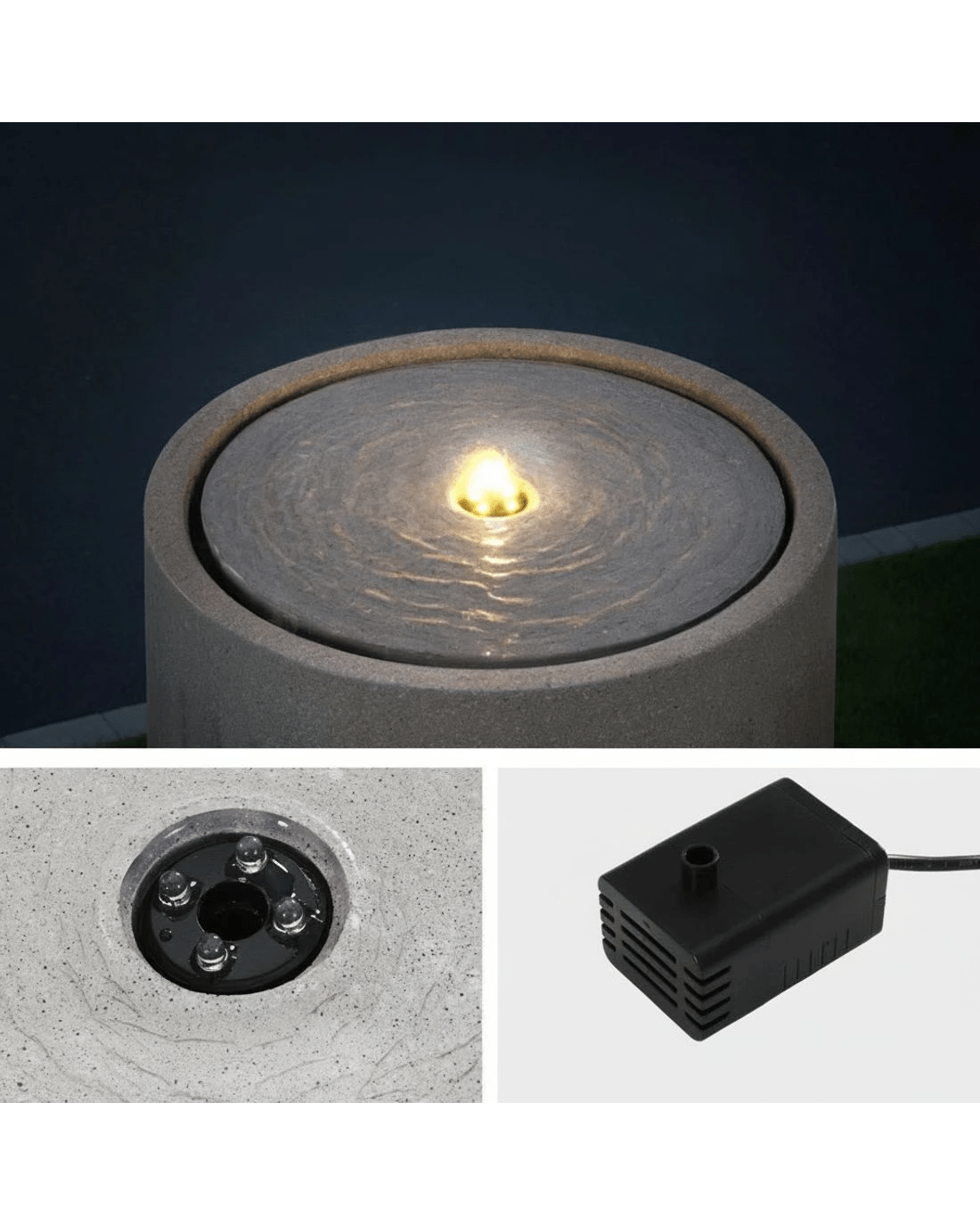 As evening falls, the built-in LED light automatically turns on, adding a warm and soothing glow to your space. Made from durable polyresin, this unit is built to withstand the elements while maintaining a natural stone-like appearance.