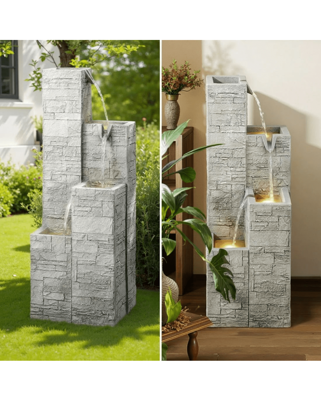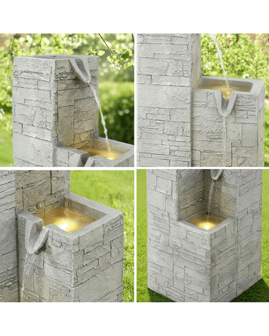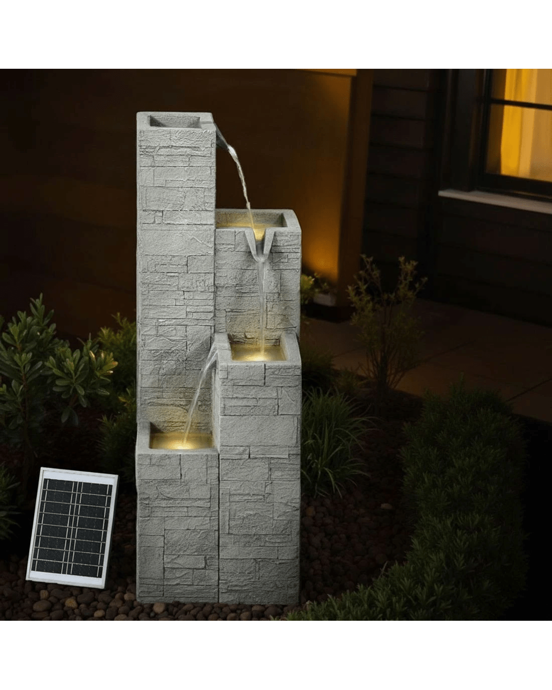 Sold by Aisle SixGardeon Solar Fountain Water Feature Outdoor Indoor 4-Tier Square Cascading - Beige
