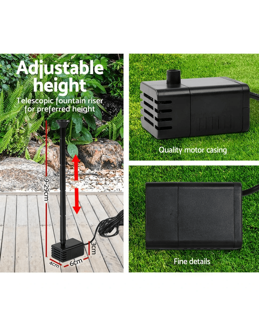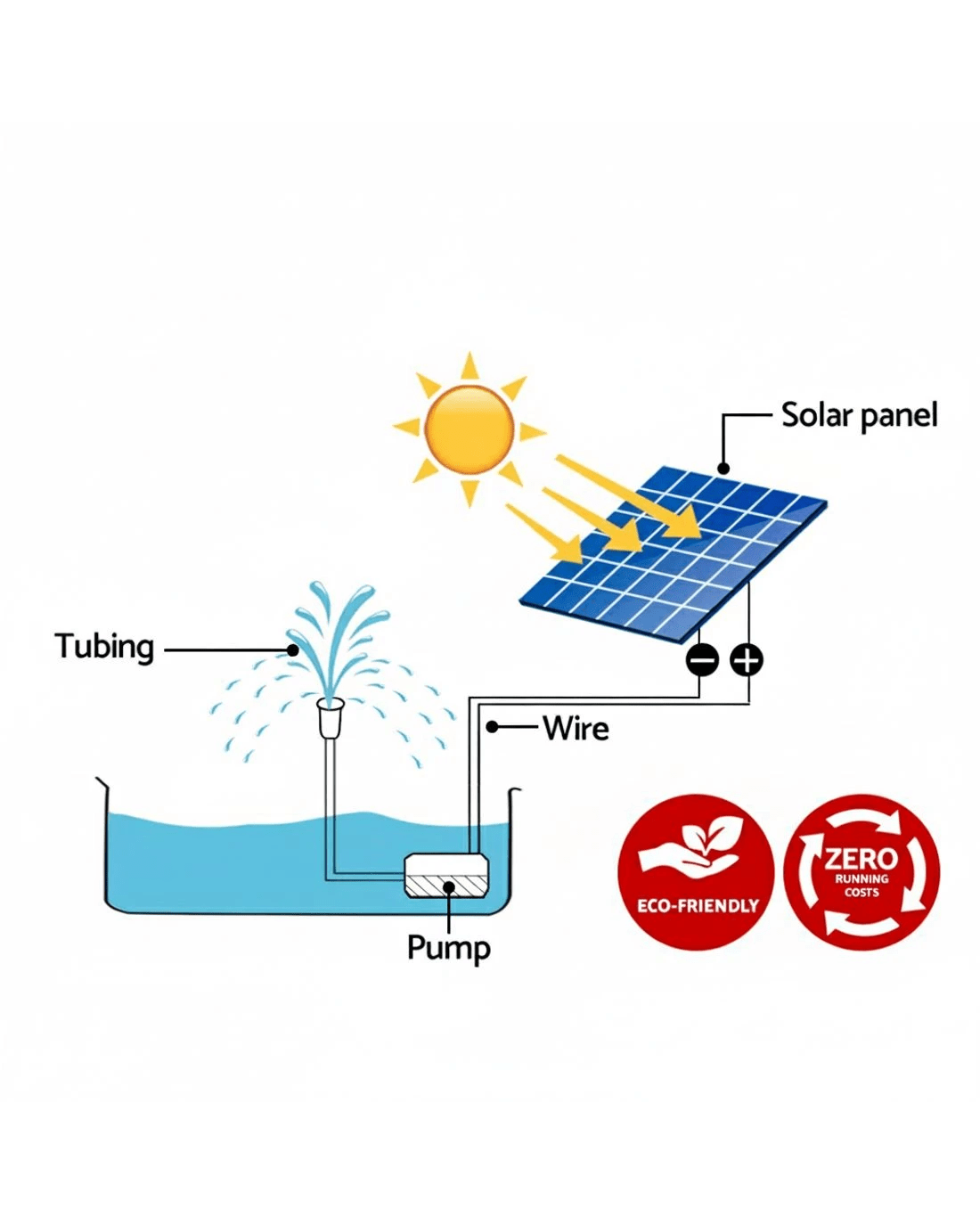 A joyous addition to your garden. Our Solar Powered Fountain can make your garden a simply stunning and mesmerizing place for everyone. Not least, with its energy drawn from the sun, your fountain is practically running at zero costs. And there is more to our fountain than just plain economics. Featuring a brushless DC pump, the fountain can pump up to 1.2m (4ft) high of dazzling water at a flow rate of 230 litres per hour. The solar panels are premium polycrystalline, which means that you get better energy conversion to run the fountain effortlessly. Better still, you can mount the solar panels anywhere within a 5m radius of the water feature. The entire unit comes with all the necessary fittings and accessories for an easy, no-hassle set up.