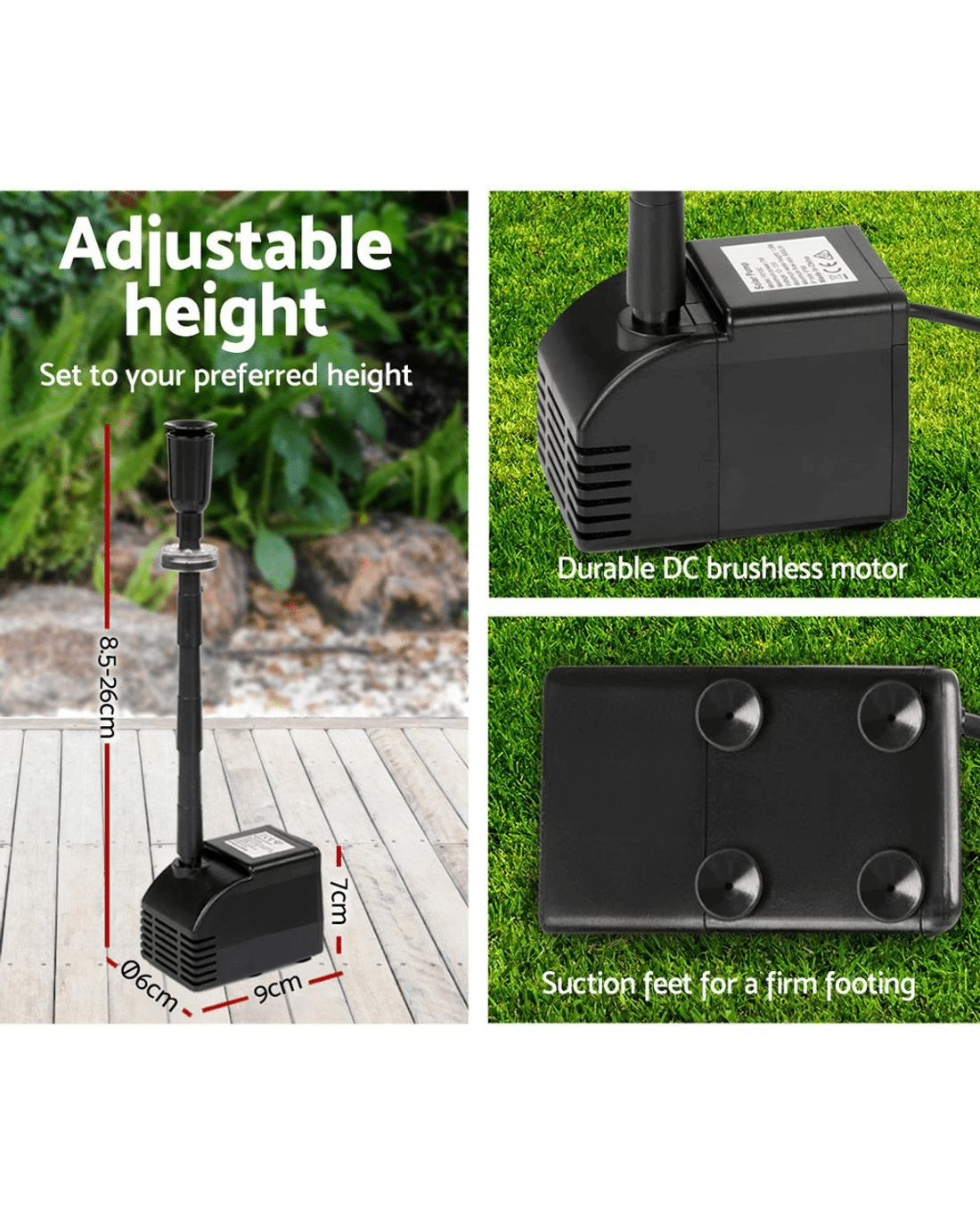 A joyous addition to your garden. Our Solar Powered Fountain can make your garden a simply stunning and mesmerizing place for everyone. Not least, with its energy drawn from the sun, your fountain is practically running at zero costs. And there is more to our fountain than just plain economics. Featuring a brushless DC pump, the fountain can pump up to 2m (6.6ft) high of dazzling water at a flow rate of 800 litres per hour. The solar panels are premium polycrystalline, which means that you get better energy conversion to run the fountain effortlessly. Better still, you can mount the solar panels anywhere within a 5m radius of the water feature. The entire unit comes with all the necessary fittings and accessories for an easy, no-hassle set up.