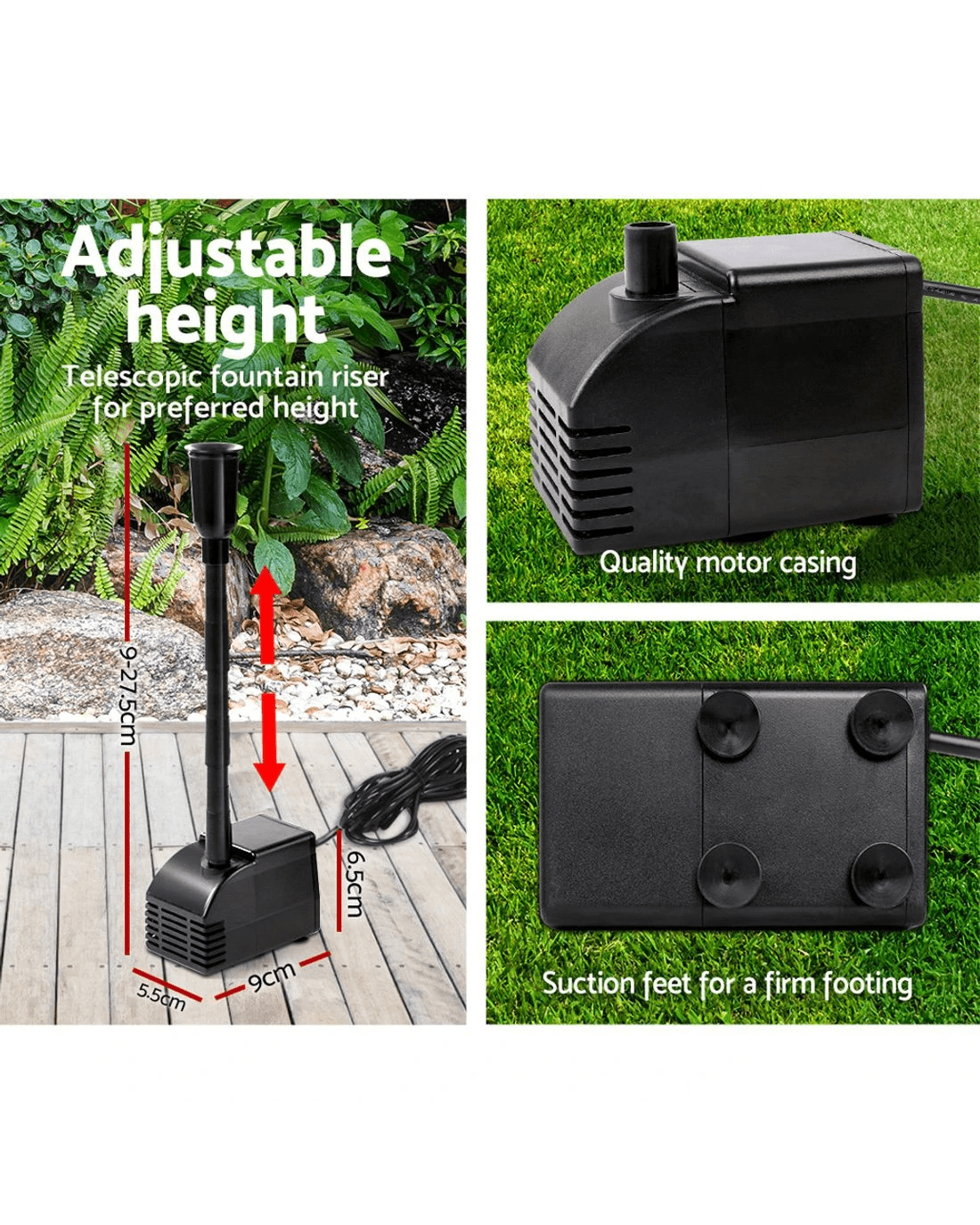 Maximum water lift height: 2.2m (7.2ft)