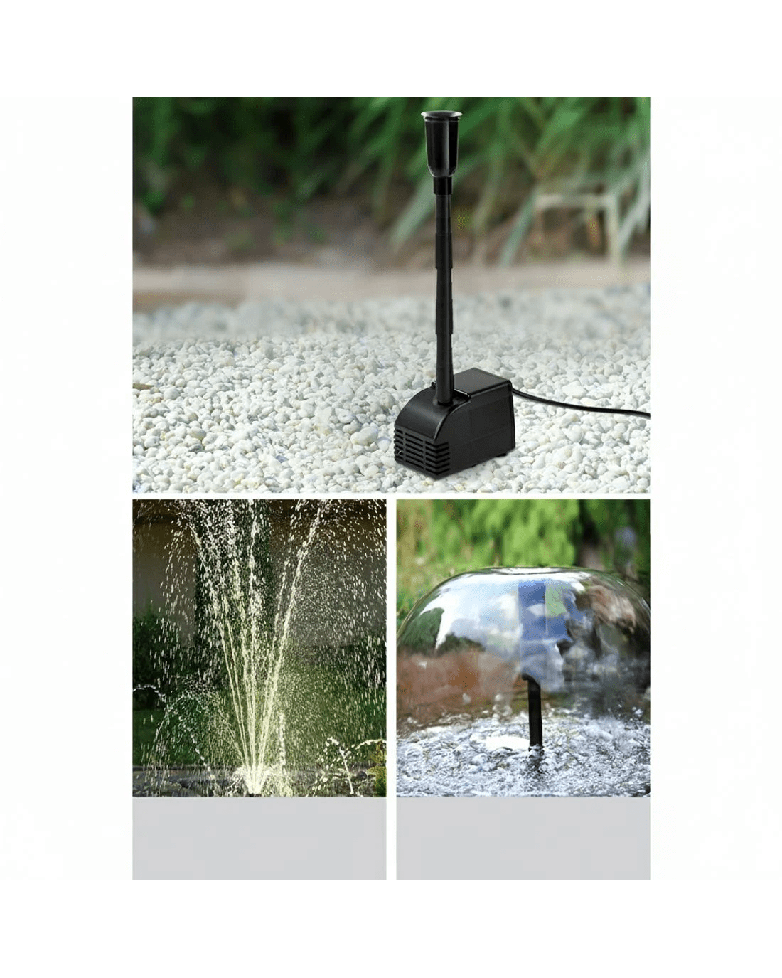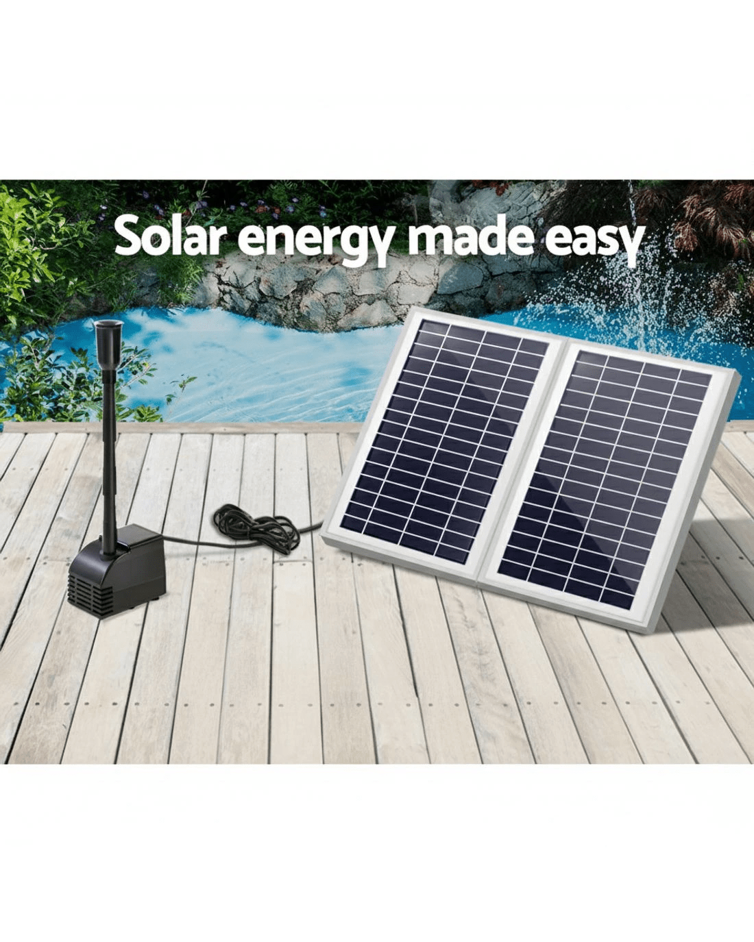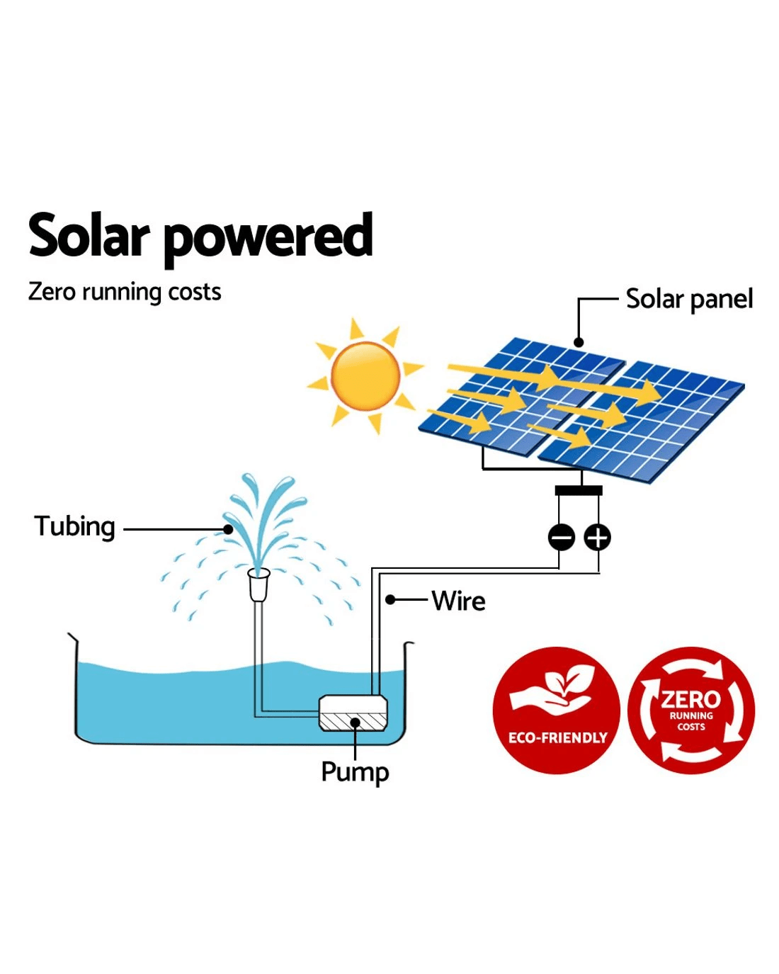 A joyous addition to your garden. Our Solar Powered Fountain can make your garden a simply stunning and mesmerizing place for everyone. Not least, with its energy drawn from the sun, your fountain is practically running at zero costs. And there is more to our fountain than just plain economics. Featuring a brushless DC pump, the fountain can pump up to 2.2m (7.2ft) high of dazzling water at a flow rate of 1100 litres per hour. The solar panels are premium polycrystalline, which means that you get better energy conversion to run the fountain effortlessly. Better still, you can mount the solar panels anywhere within a 5m radius of the water feature. The entire unit comes with all the necessary fittings and accessories for an easy, no-hassle set up.