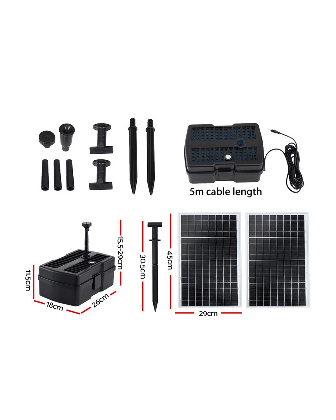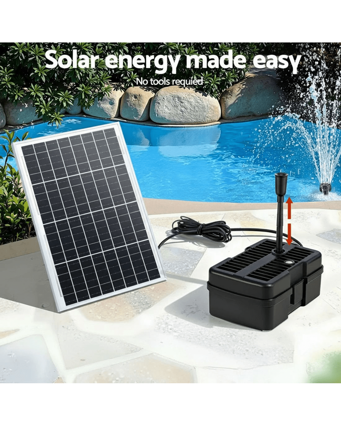 The Gardeon solar water pump fountain runs entirely on direct sunlight—no batteries or electricity needed. It delivers a strong flow of 1,190 L/H with durable DC brushless technology. Adjustable height and a 5m long cable offer flexible setup. Comes with a 2-section nozzle and triple extension for customizable water spray. Easy to install and maintain, perfect for indoor and outdoor use.