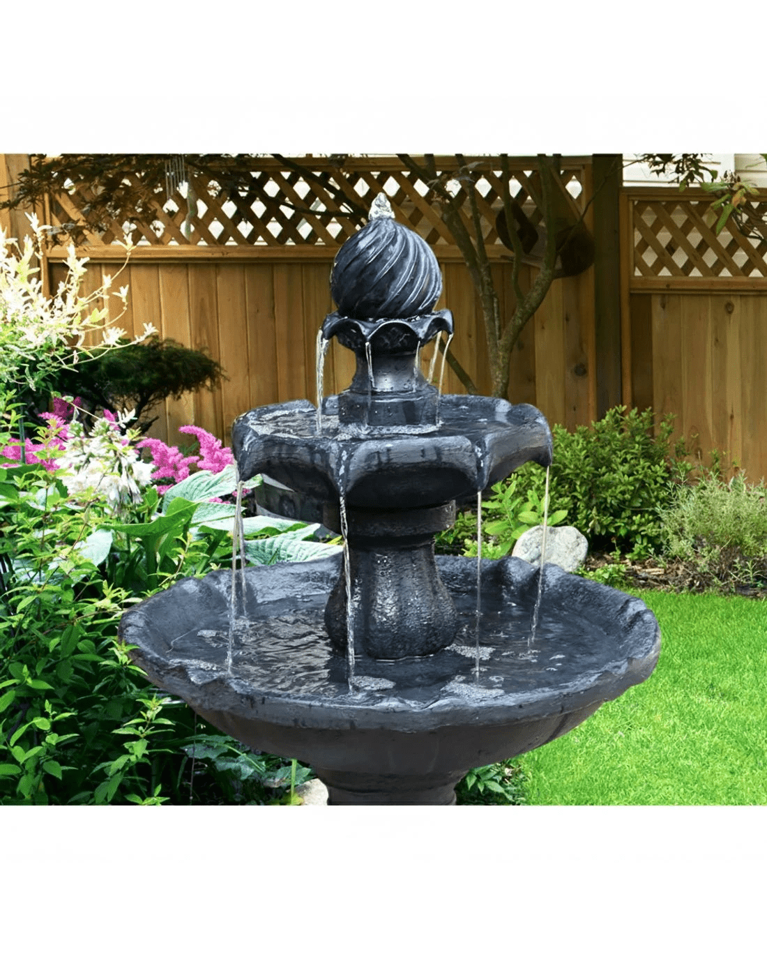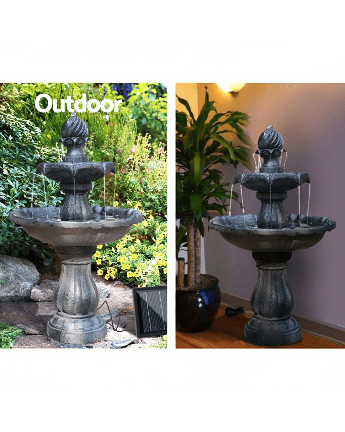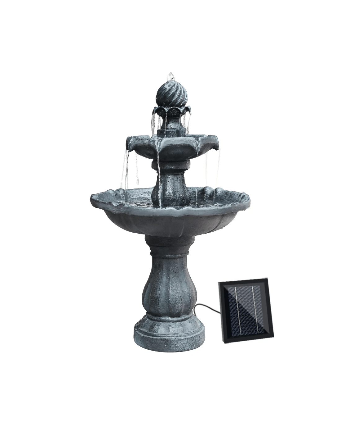 Gardeon Solar Water Feature 3-Tier Fountain with Pump Kit Bird Bath 93CM - Black