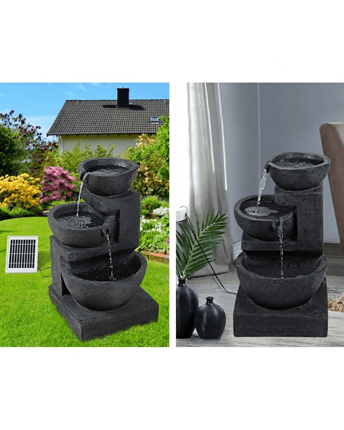 Add a conversational piece to your garden with our 3-tier Solar Fountain. With its eye-catching sculptural design, the Water Fountain certainly deserves a prominent place in your garden landscape.
