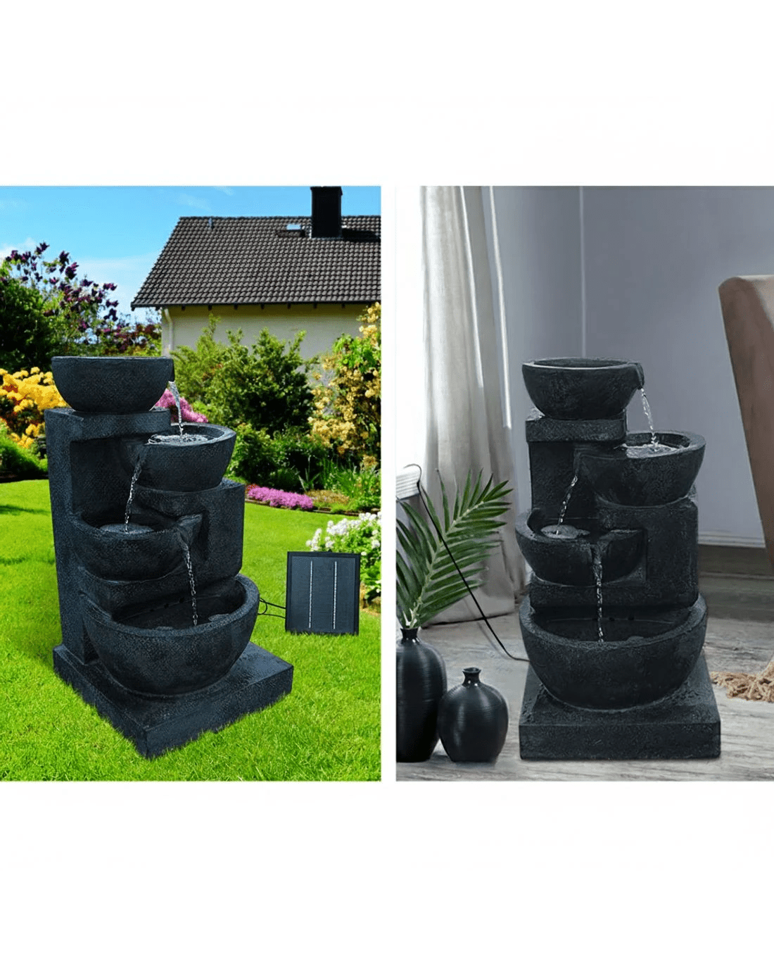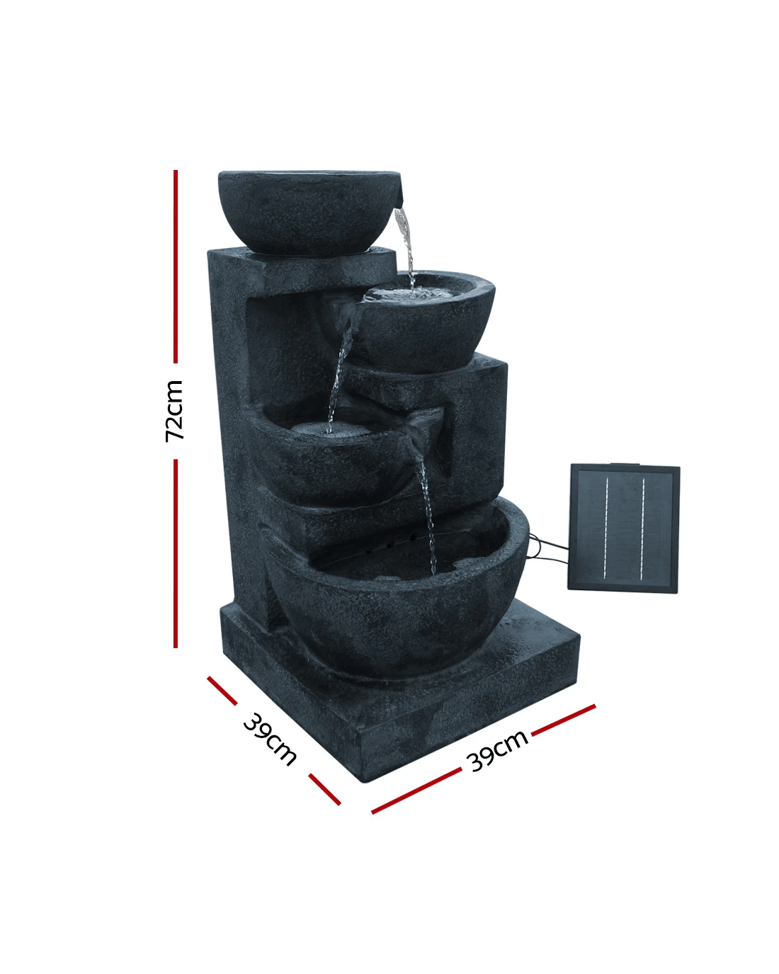 Add a conversational piece to your garden with our 4-tier Solar Fountain. With its eye-catching sculptural design, the Water Fountain certainly deserves a prominent place in your garden landscape.