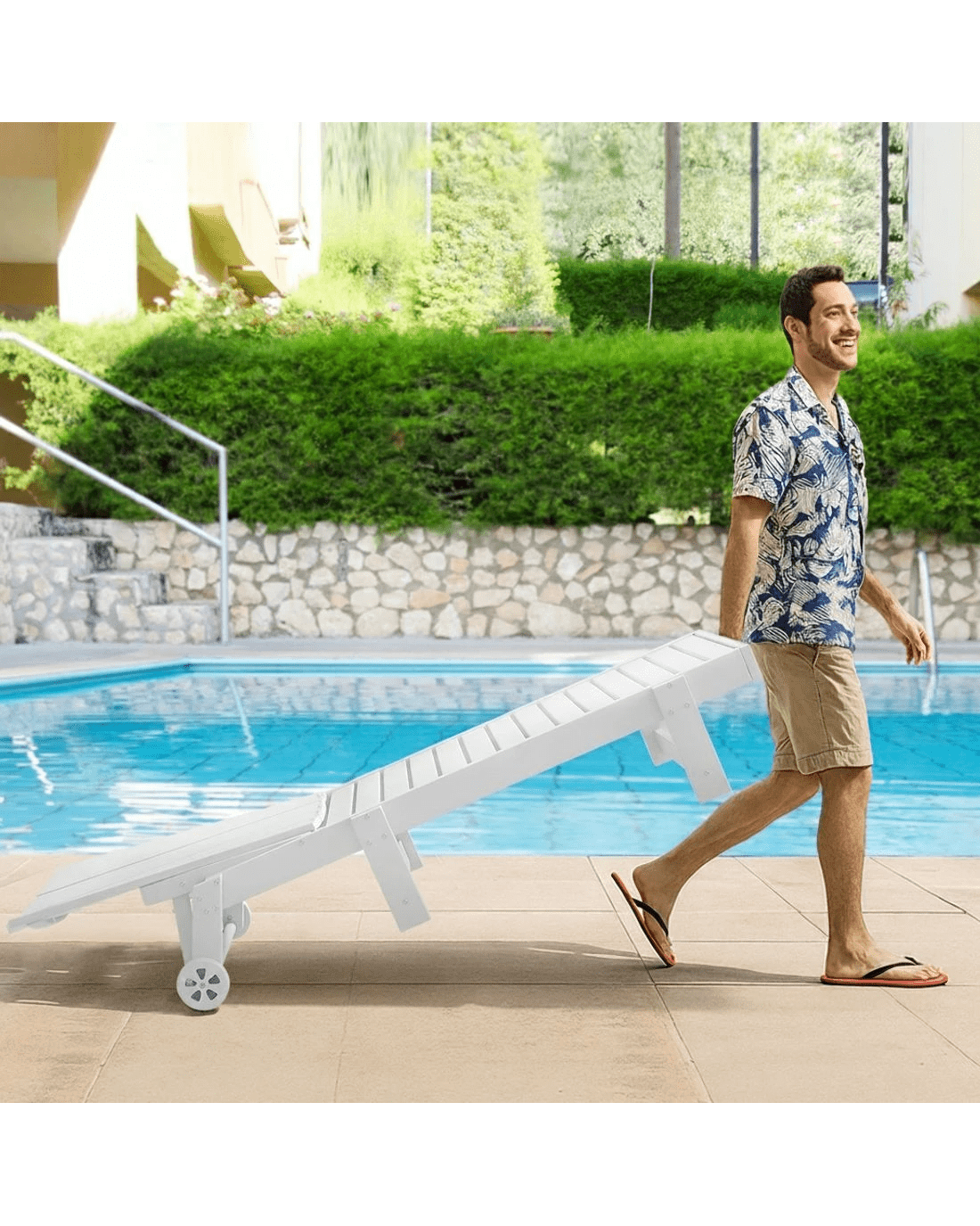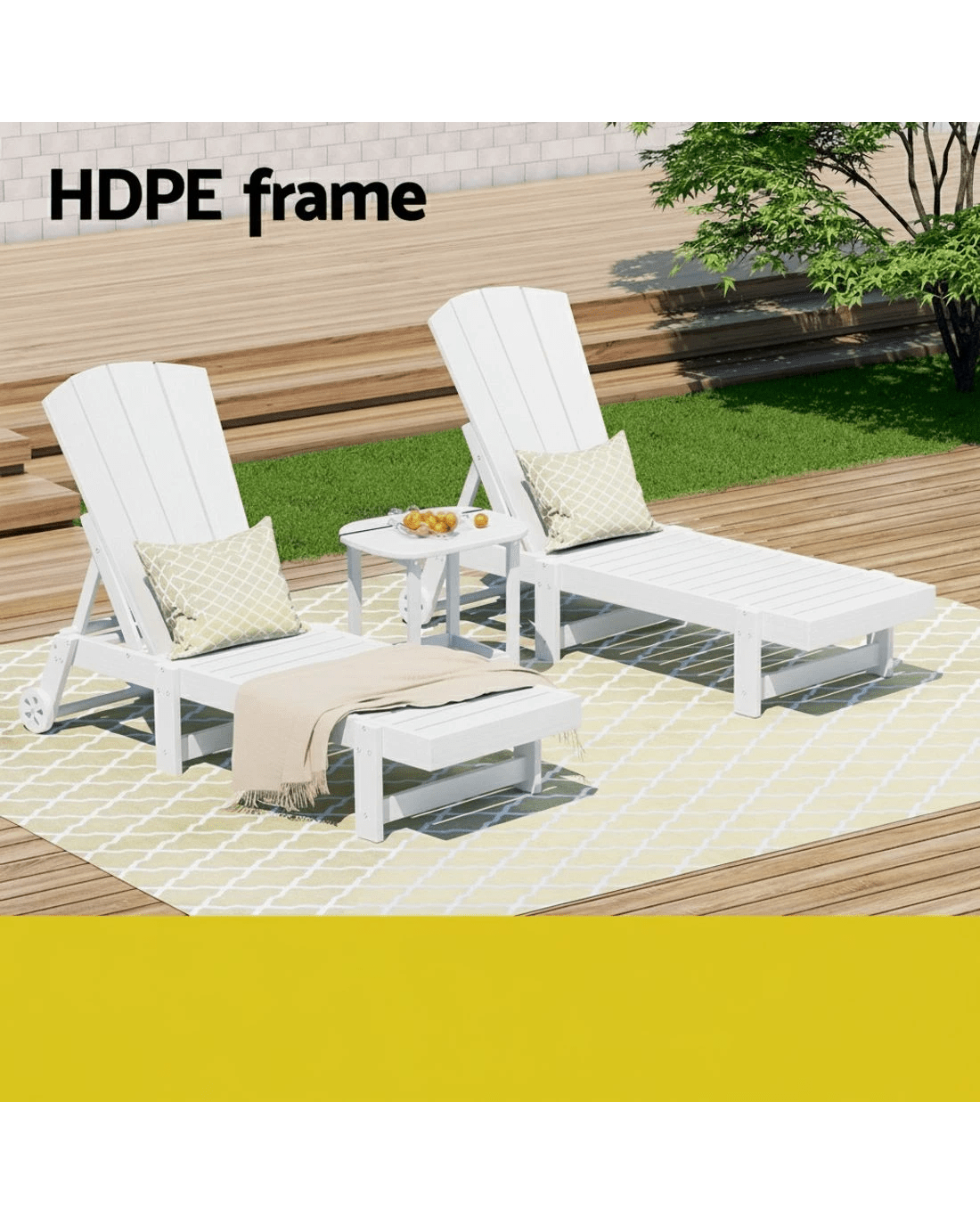 Upgrade your relaxation with the Gardeon 4-position adjustable chaise lounge! Featuring a versatile reclining backrest, this lounge chair adapts perfectly to sunbathing, reading, or napping. Its sturdy frame supports up to 150kg, while the rolling wheels and handles allow for effortless repositioning. Crafted from weatherproof wood-grain HDPE and 304 stainless steel, it resists sun, rain, and wind without fading. The chair includes a convenient cup holder and is designed for quick setup—so you can start enjoying it immediately with minimal effort. Ideal for poolside, patio, or beach relaxation.