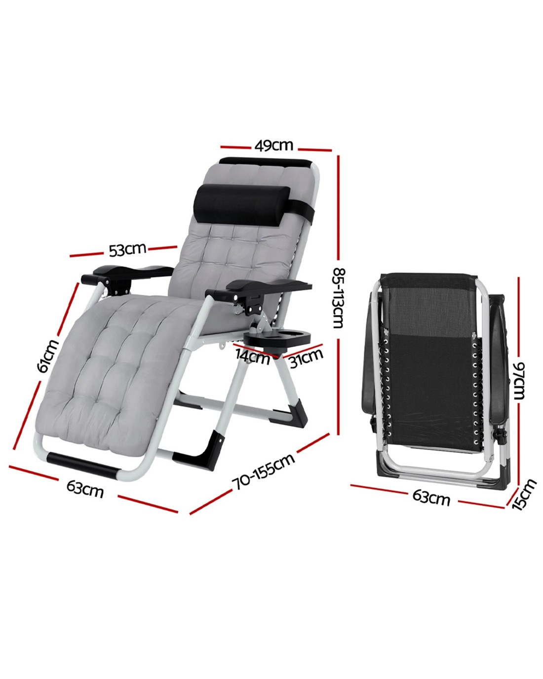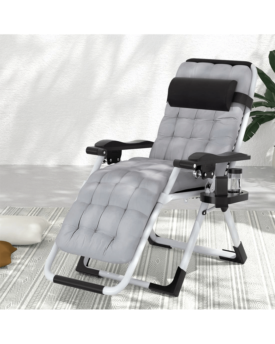 Introducing the Gardeon Folding Sun Lounger, the perfect addition to your indoor or outdoor relaxation space. Made with a breathable textilene fabric, this lounger will keep you cool and comfortable even on the hottest of days. The removable headrest provides extra cushioning for your head and neck, ensuring maximum relaxation. A cosy cotton pad can be used for additional comfort and easily removed for disassembly. Crafted with a sturdy steel frame, this lounger is both lightweight and durable, making it easy to move around and store when not in use. The non-slip feet provide added stability, so you can recline up to 170 degrees with confidence. A convenient cup holder allows you to enjoy your favourite beverages while lounging in the sun. Assembly is a breeze, so you can start enjoying your new lounger in no time. When you're ready to pack up and go, the foldable design makes it easy to transport and store. Whether you're soaking up the sun in your backyard or lounging in your living room, the Gardeon Folding Sun Lounger is the perfect choice for ultimate relaxation.