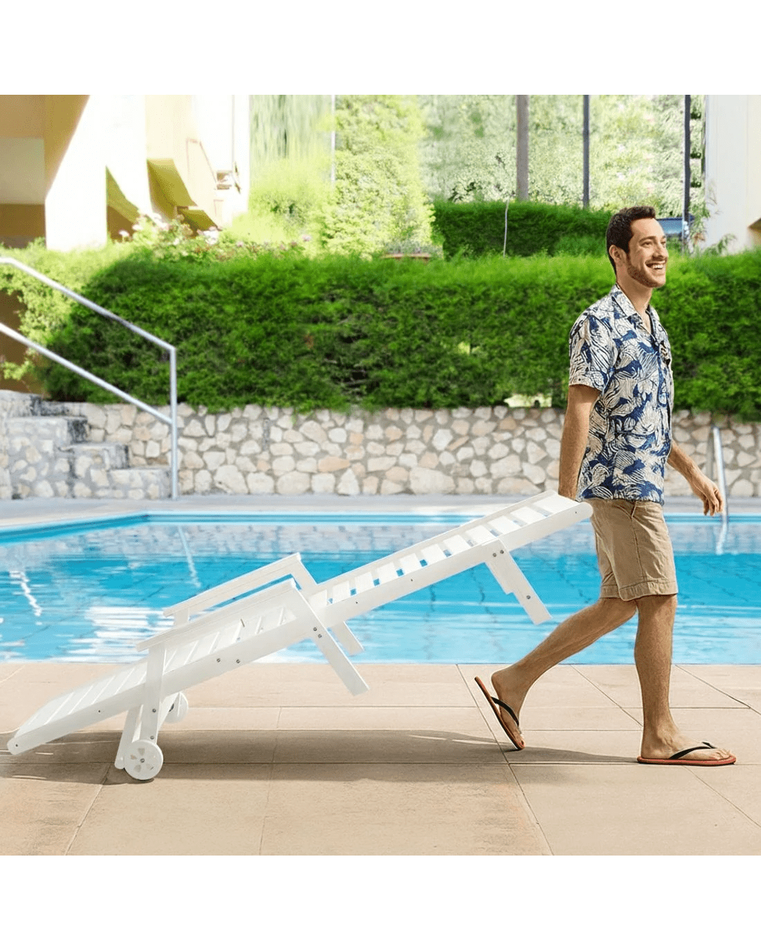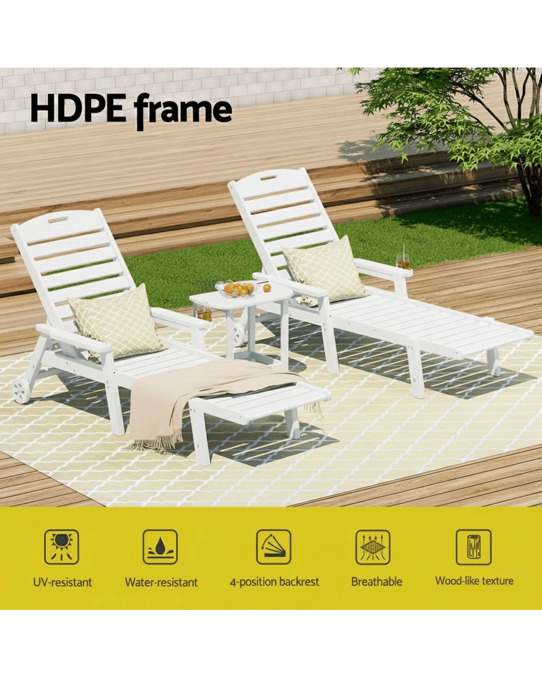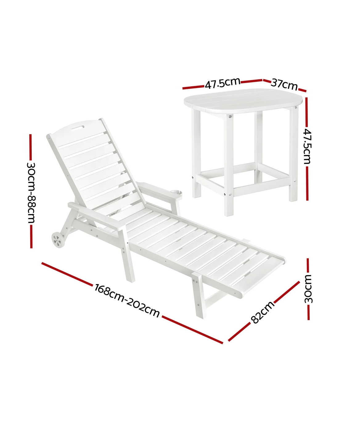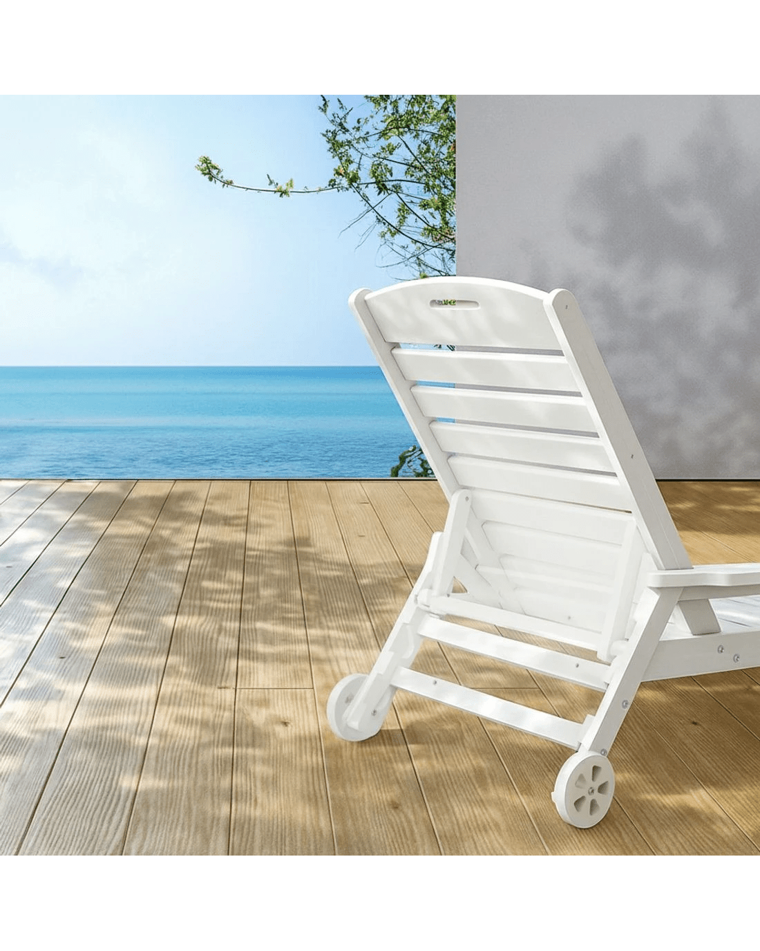 Gardeon Sun Lounge Lounger Beach Chair HDPE Patio Outdoor Furniture with Wheels - White