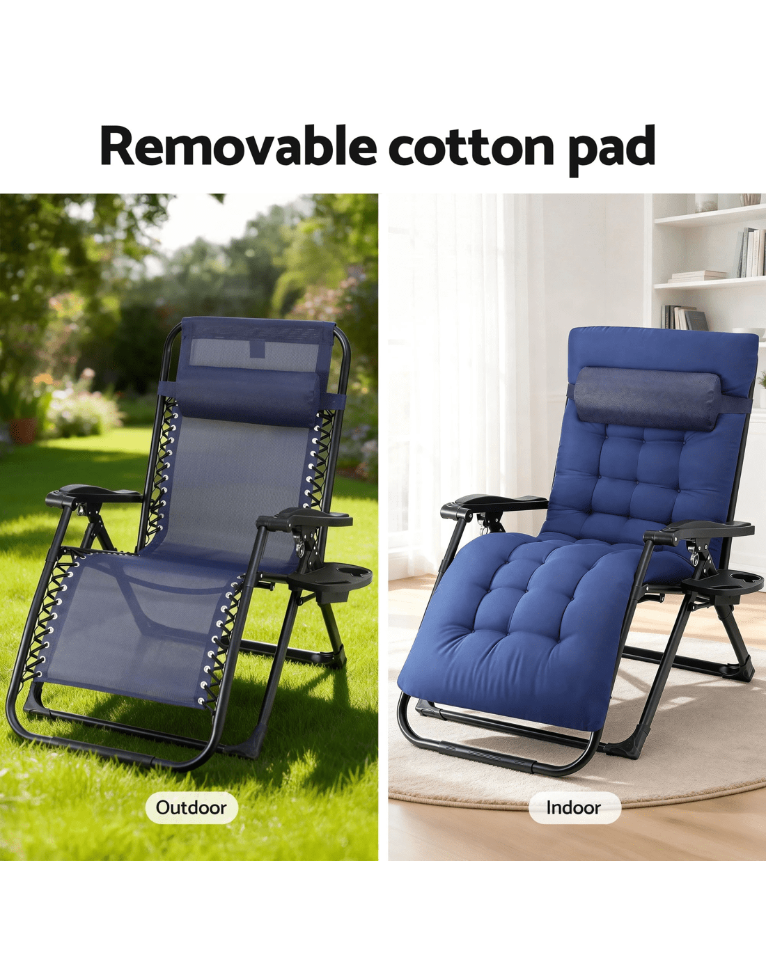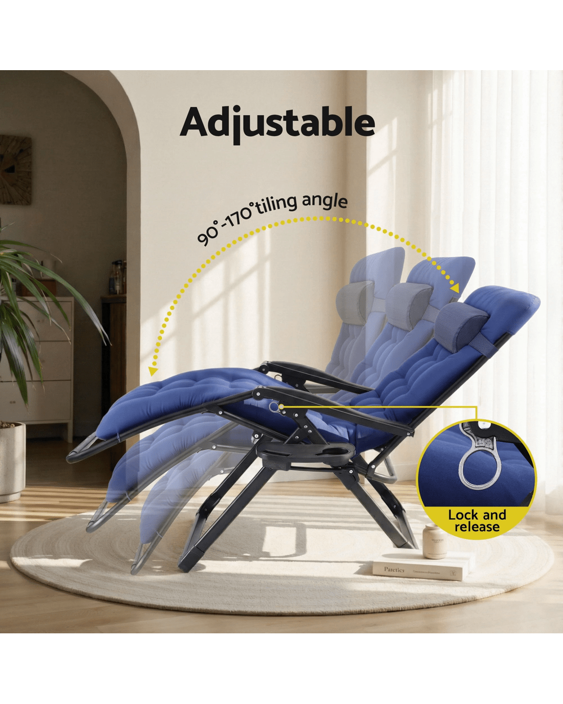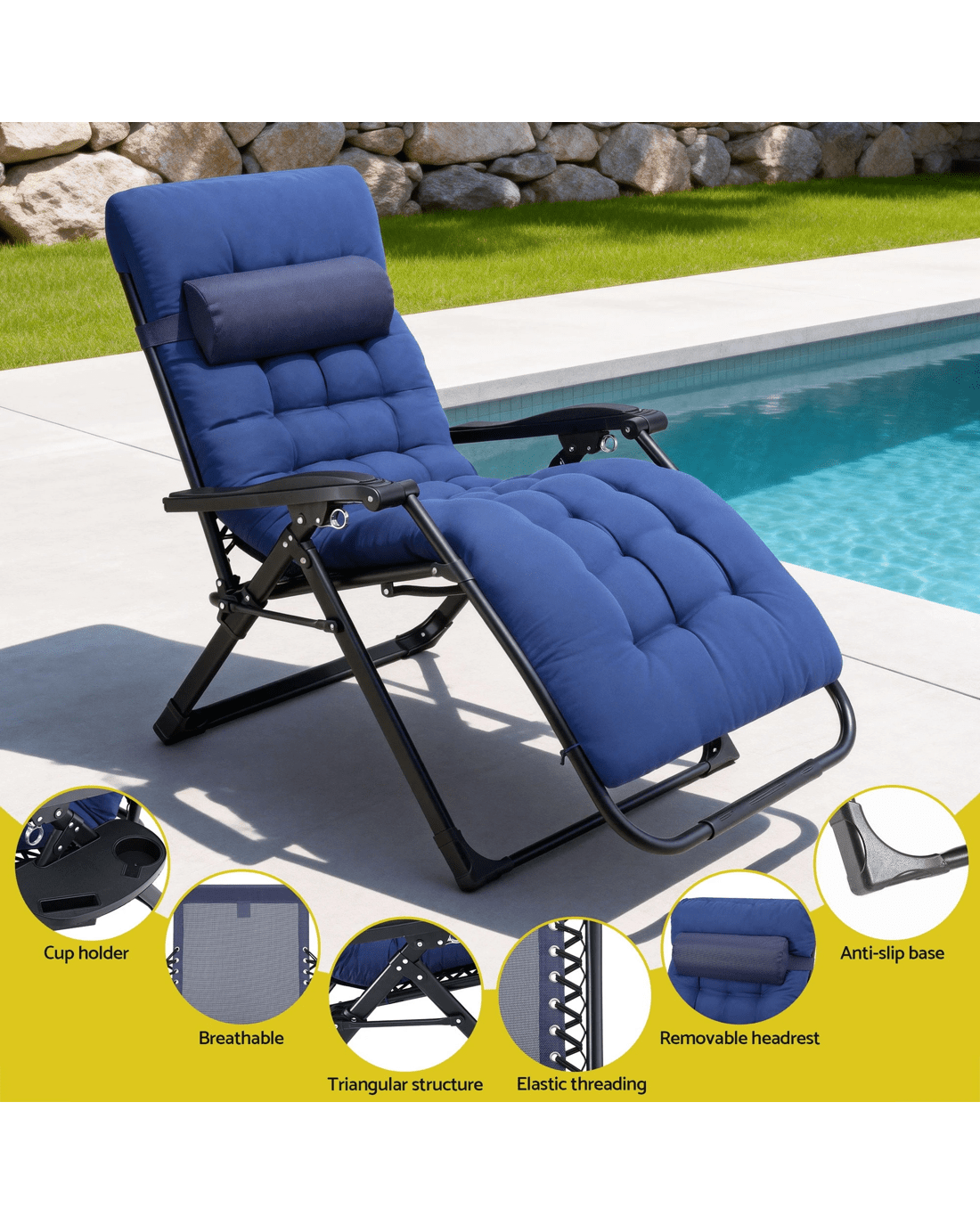 Gardeon Sun Lounge Lounger Folding Camping Zero Gravity Chair Outdoor Furniture - Blue