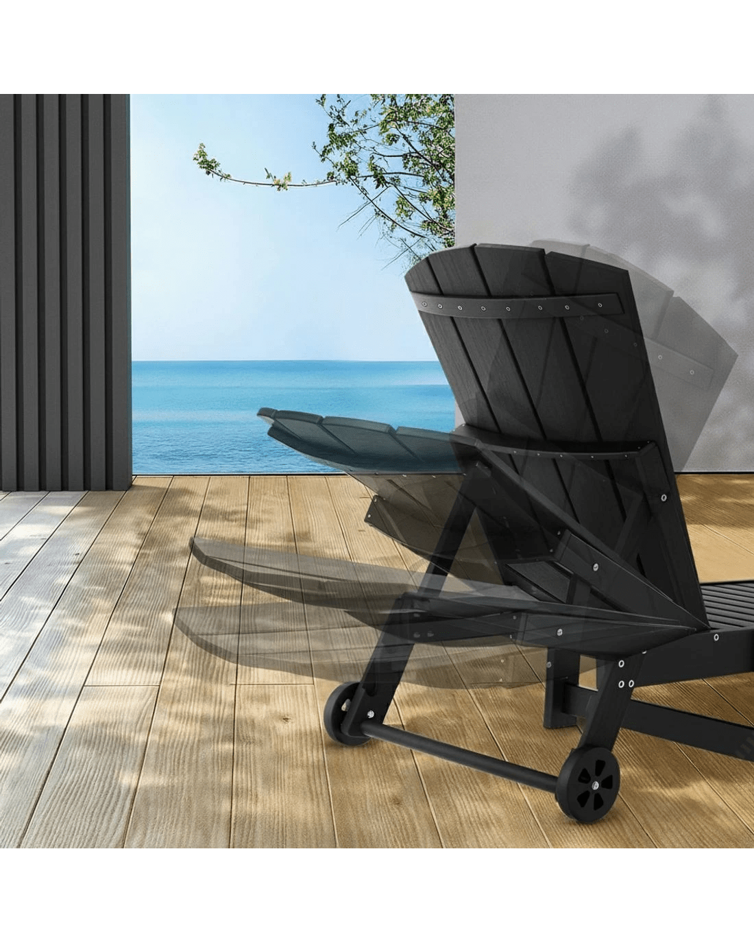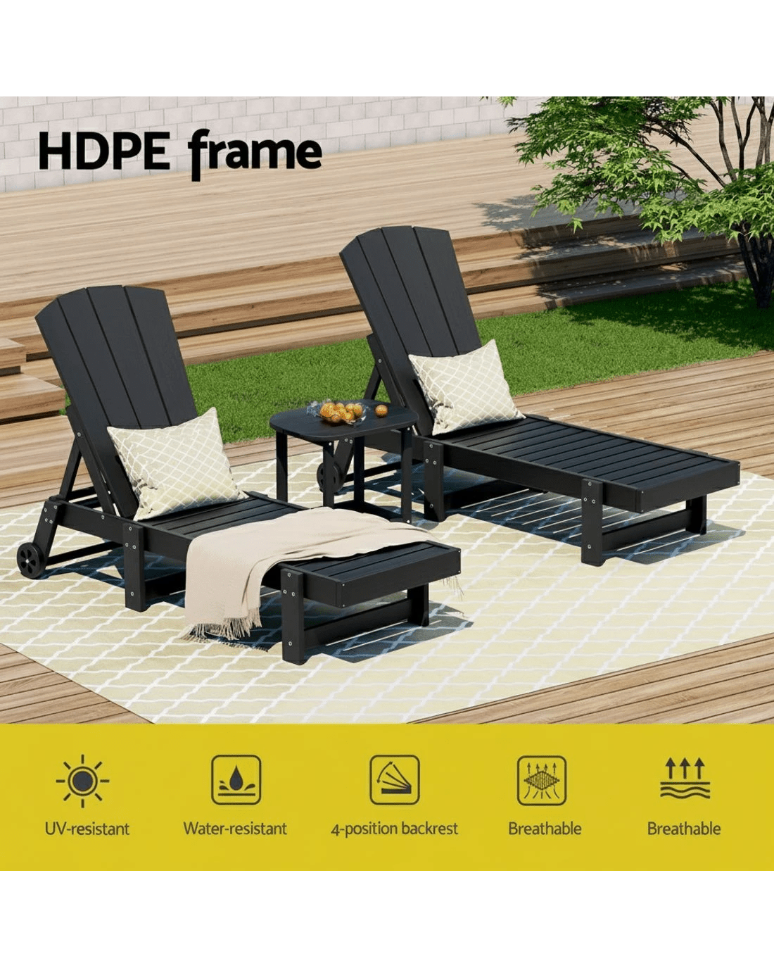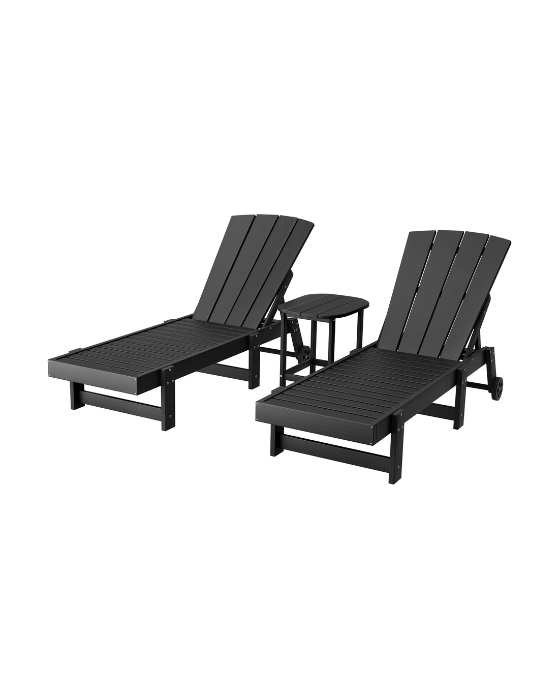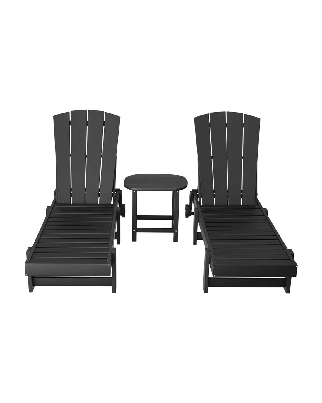 Gardeon Sun Lounge Lounger Table and Chairs Beach Chair HDPE Patio Outdoor Furniture - Black
