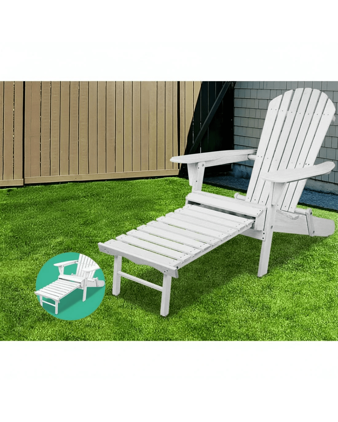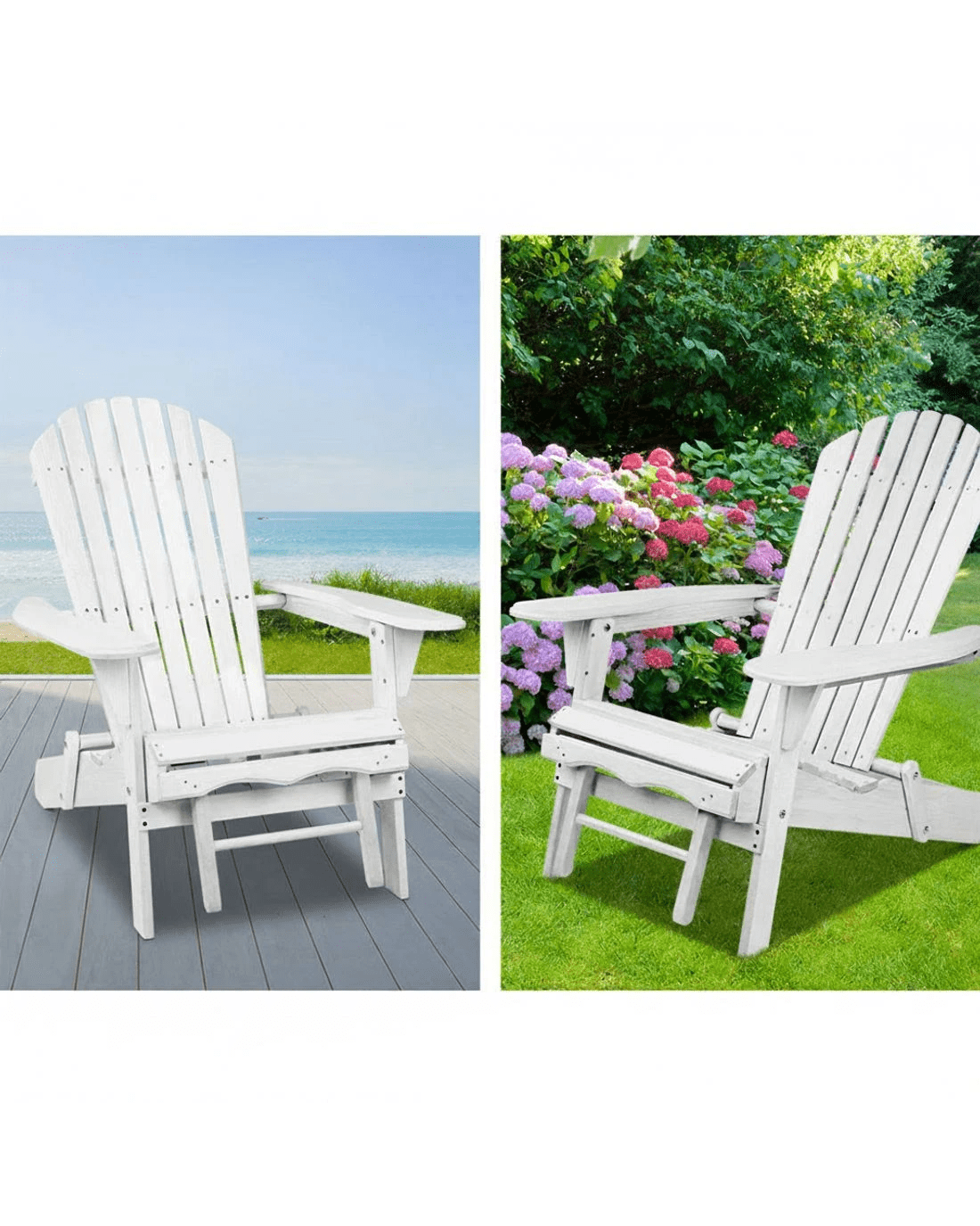 Gardeon Sun Lounge Outdoor Chairs Wooden Foldable Patio Furniture Adirondack - White