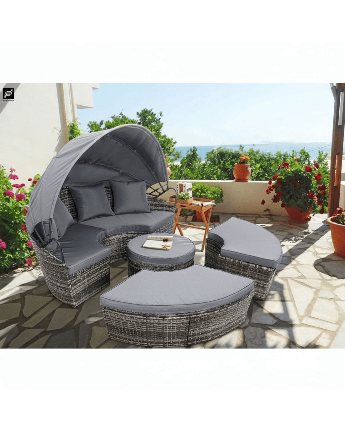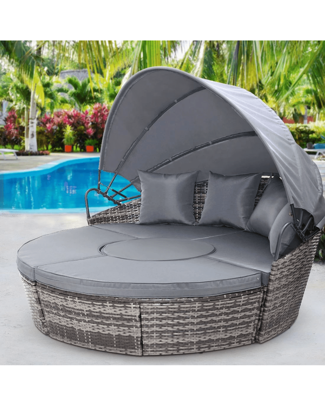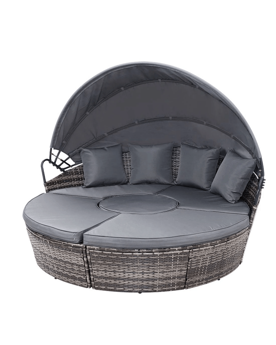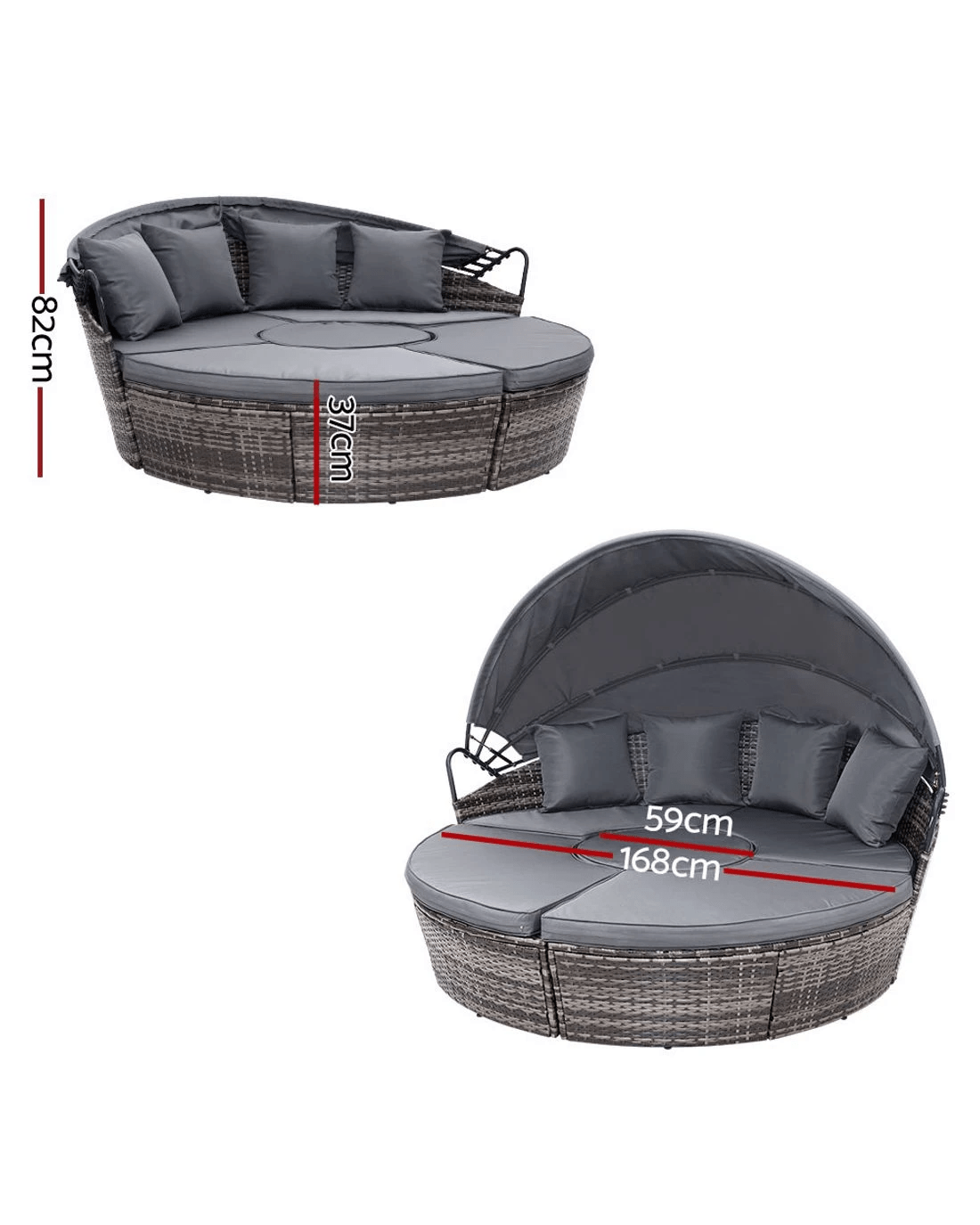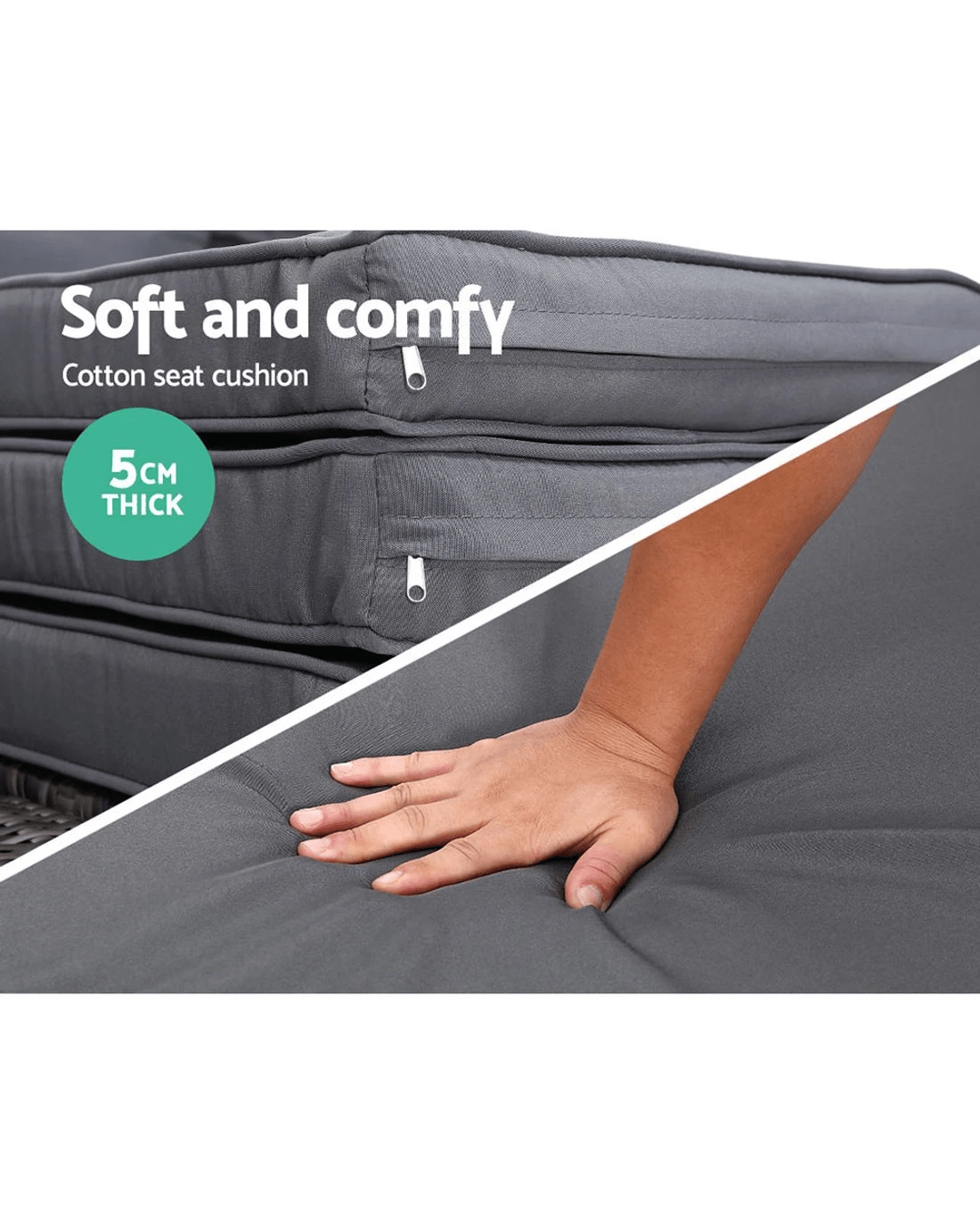 Gardeon Sun Lounge Setting Wicker Lounger Day Bed Patio Outdoor Furniture - Grey
