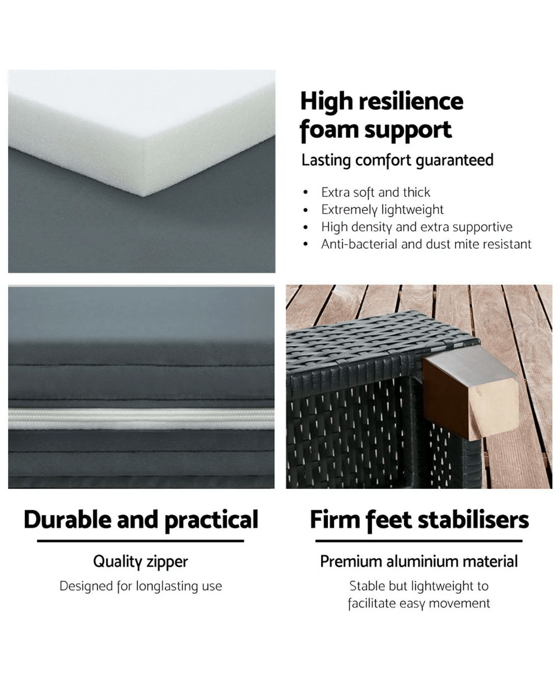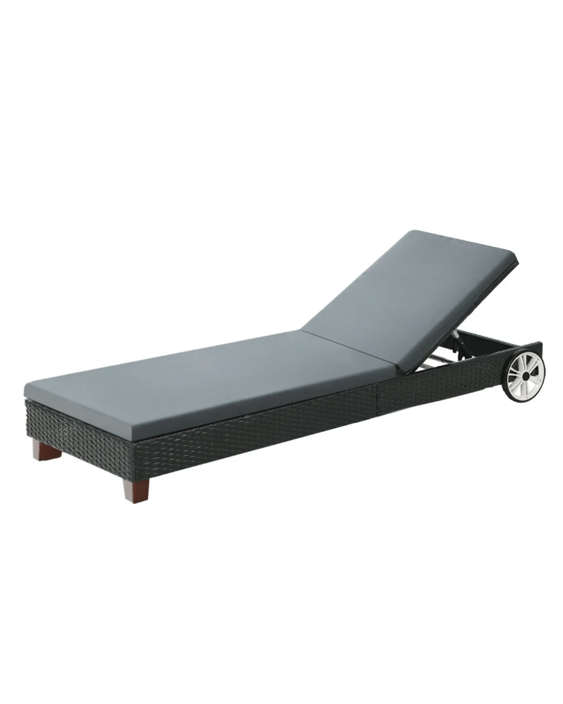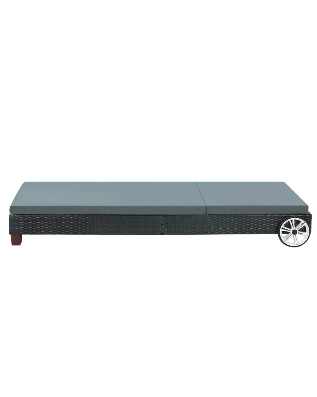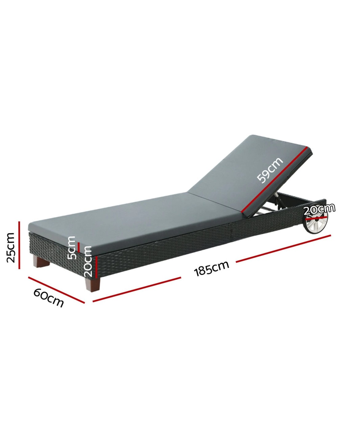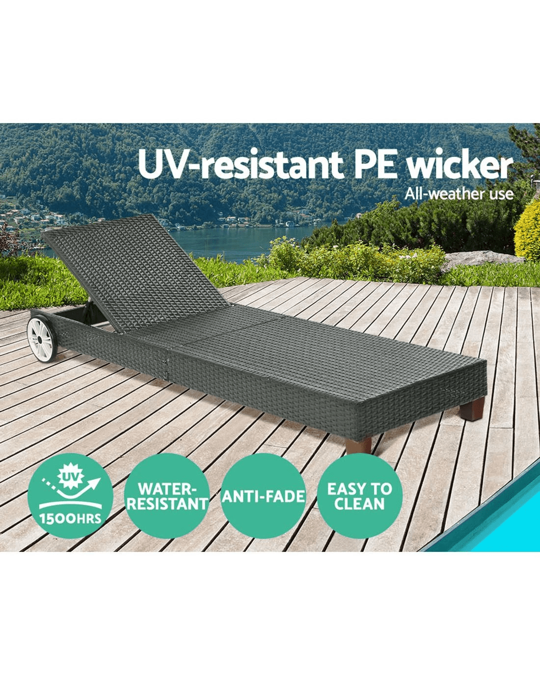 Gardeon Sun Lounge Wicker Lounger Outdoor Furniture Day Bed Wheels Patio - Black