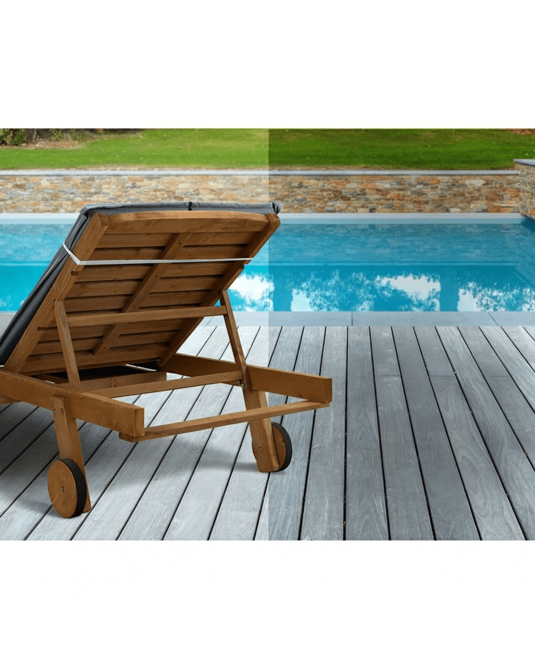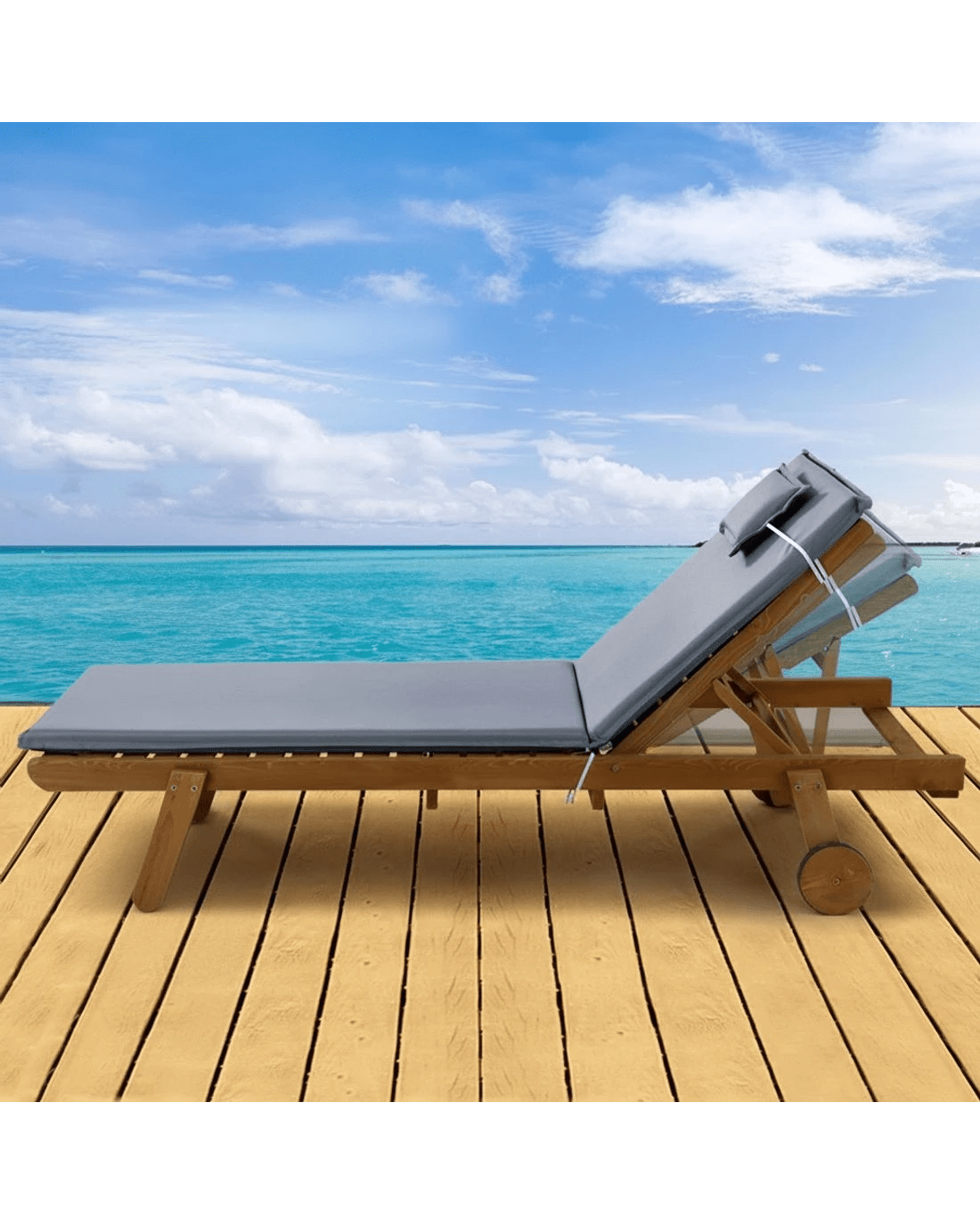 Gardeon Sun Lounge Wooden Lounger Outdoor Furniture Day Bed Wheels Patio - Multi