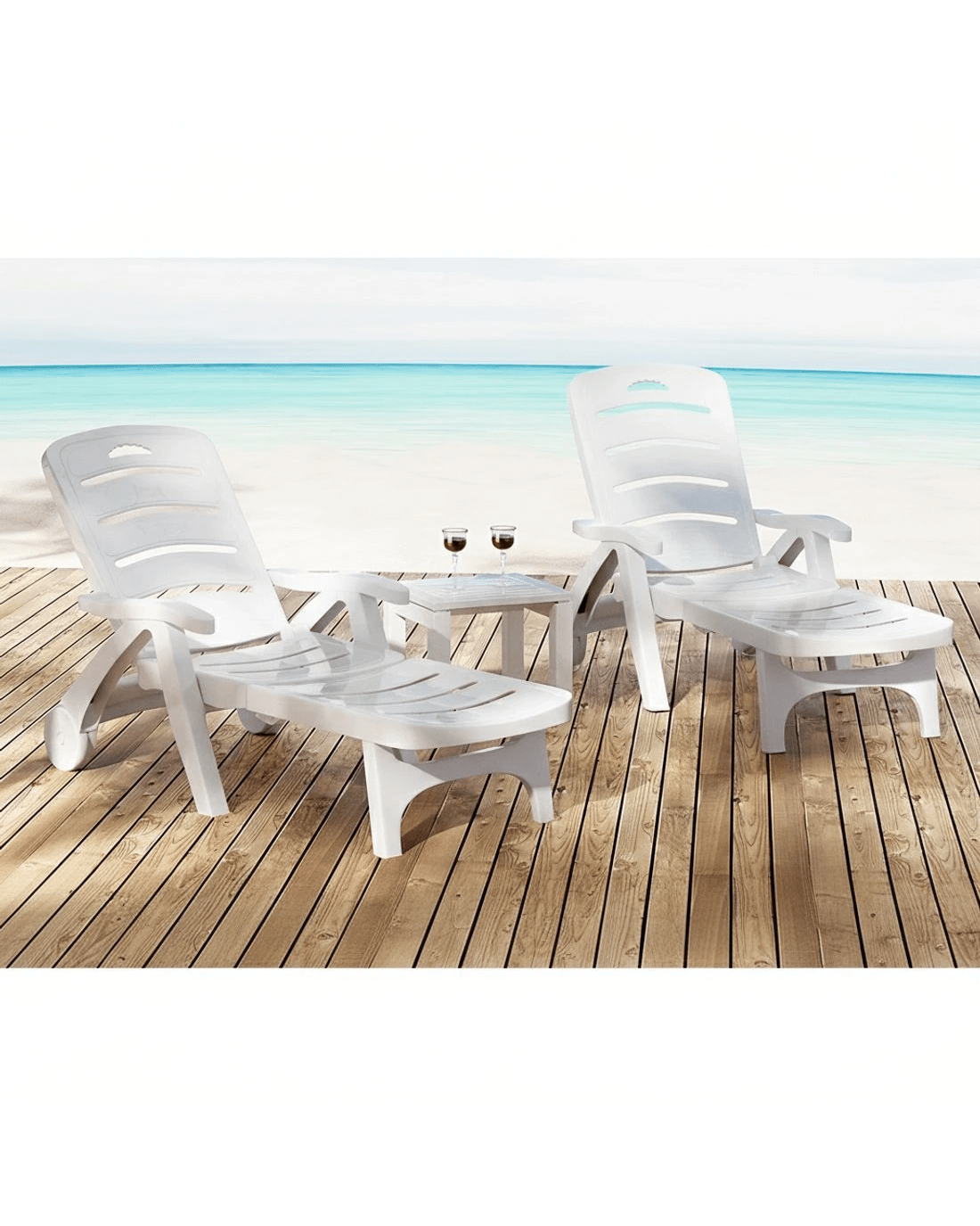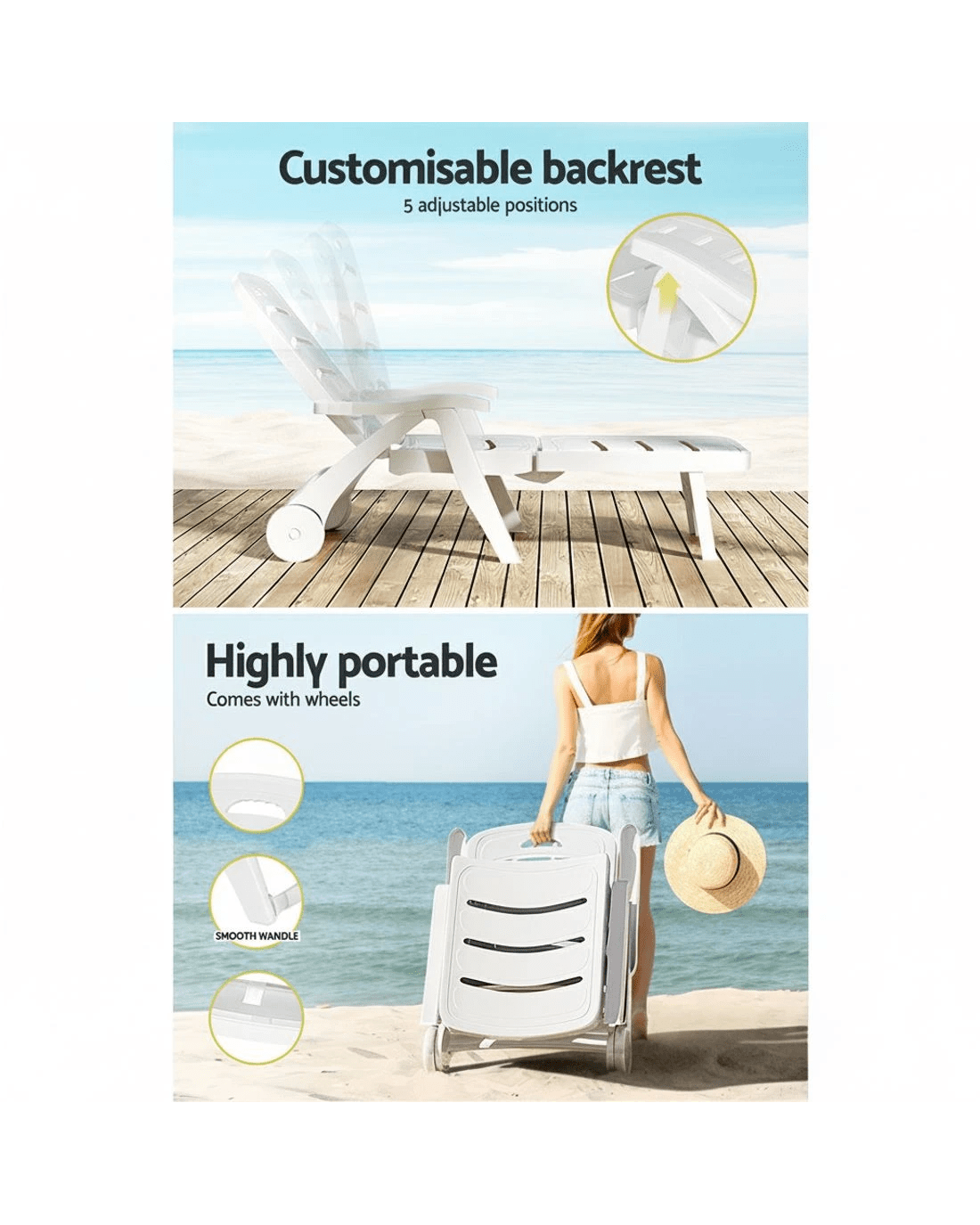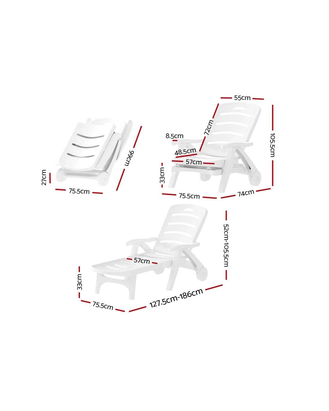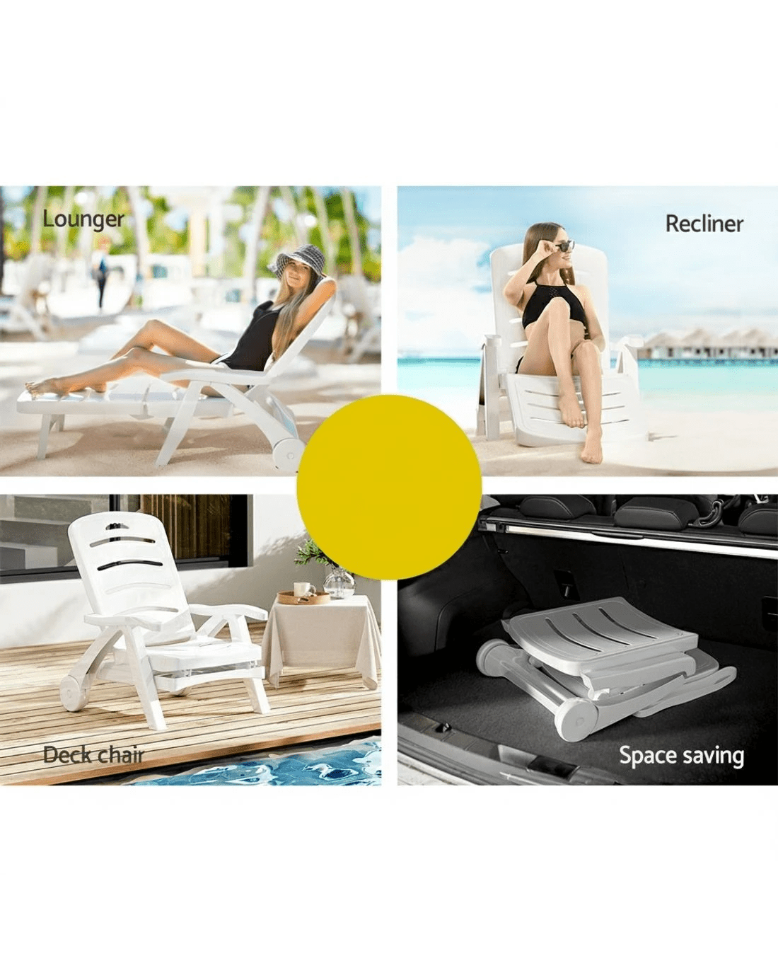 Gardeon Sun Lounger Folding Chaise Lounge Chair Wheels Patio Outdoor - White