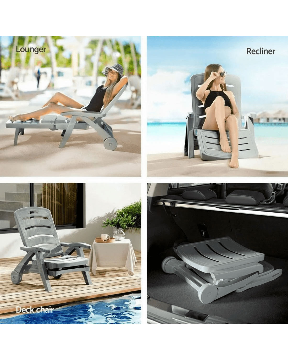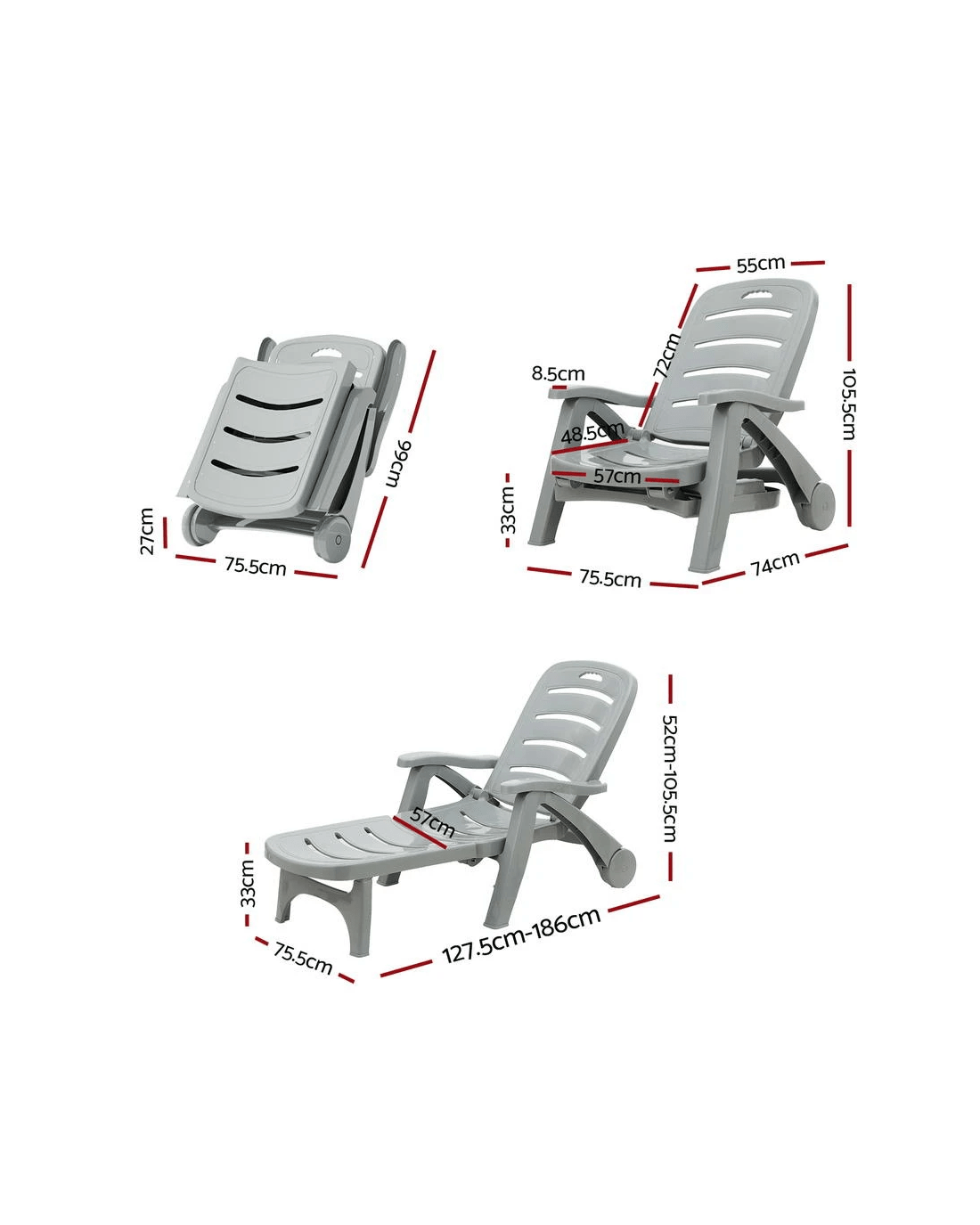 Gardeon Sun Lounger Folding Lounge Chair Wheels Patio Outdoor Furniture - Grey