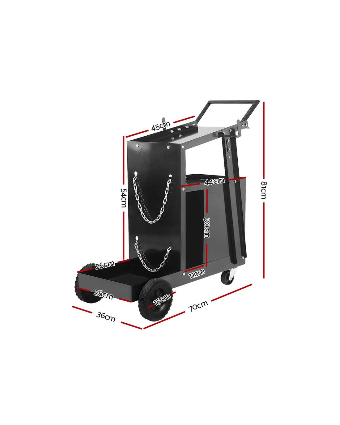 Introducing our Gardeon Welding Cart, specifically crafted to meet the needs of professional and hobbyist welders alike. This cart is built with sturdy steel, offering resilience and durability. It features a three-tier design, providing ample space for your welding machine, gas cylinders, and accessories, while the top shelf is slanted for easy welder access. Smooth-gliding, lockable front wheels ensure both mobility and stability. Compact and efficient, this welding cart is the perfect addition to your workshop, streamlining your welding tasks with ease and reliability.