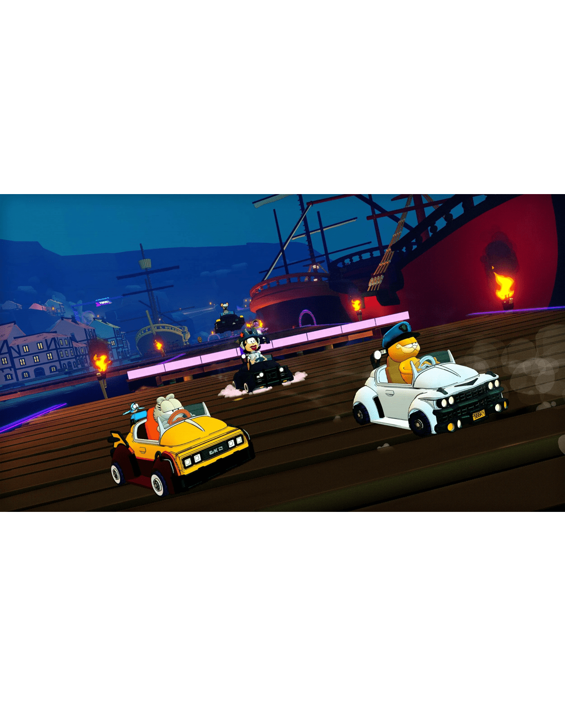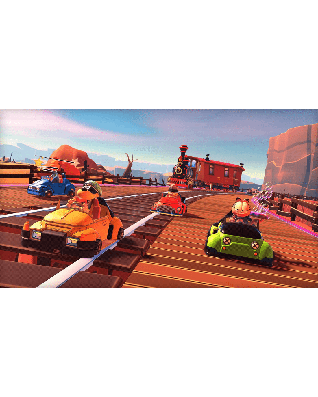 Play as one of the eight cult characters from the Garfield universe, fill up your karts, customise your look,and race away at breakneck speeds. Take a wild ride through an unhinged universe, wherethere’s a surprise waiting around every turn. Pirate,western, or detective: Garfield speeds through brightly coloured worlds to prove that, even in his dreams, he’s the king!