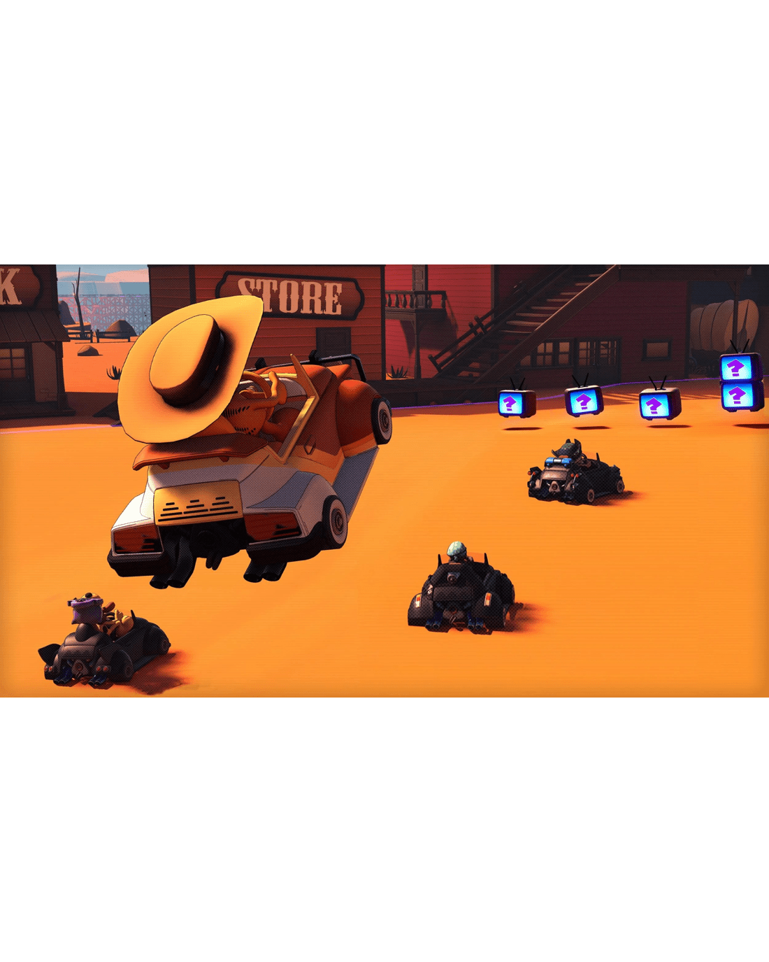 Pit yourself against your friends on wacky circuits from three unique universes! Find your way through mysterious detective scenes, brave the pirate seas, or kick up dust along old cowboy trails.