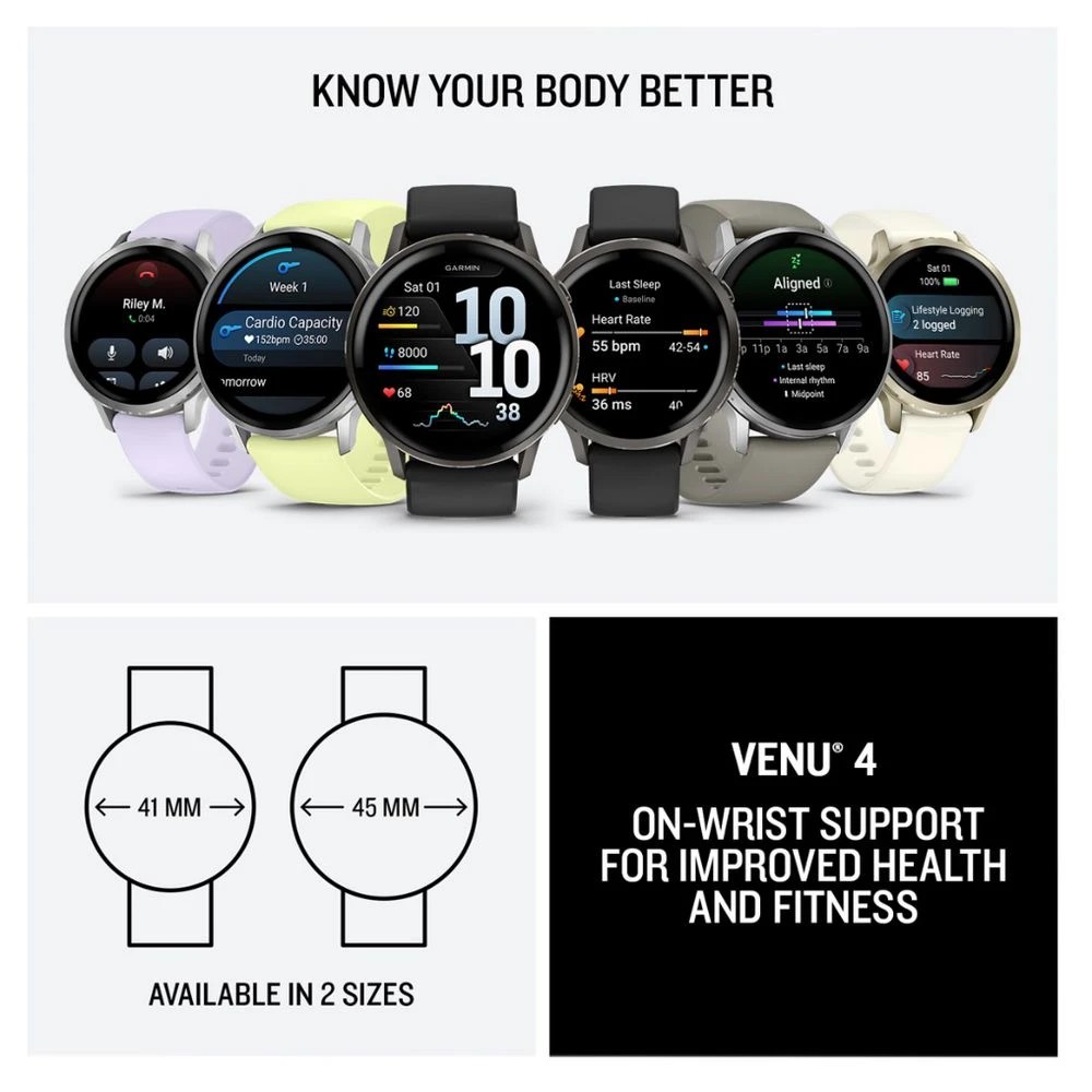 Garmin Venu 4 45mm Smartwatch Silver with Silver Grey Band