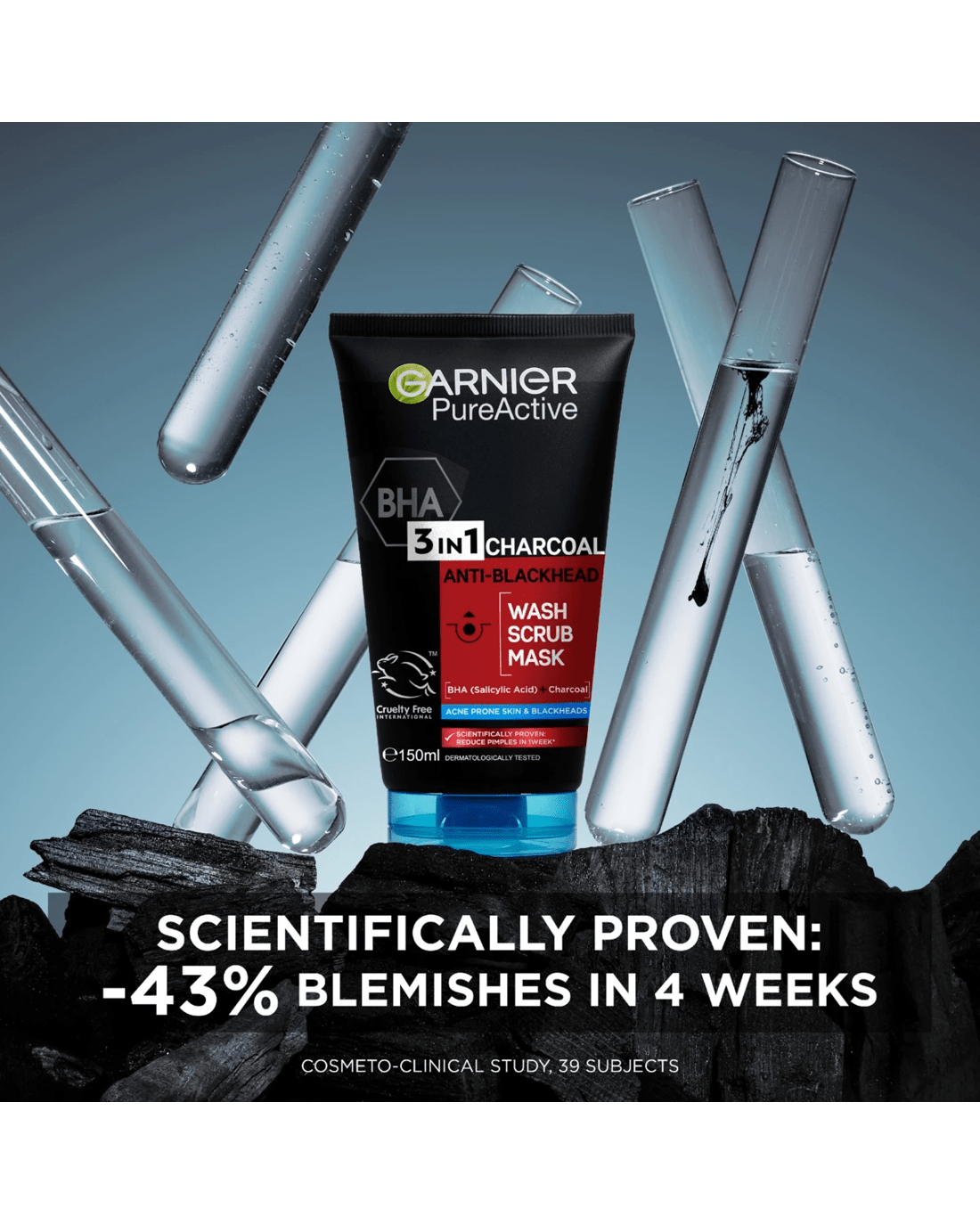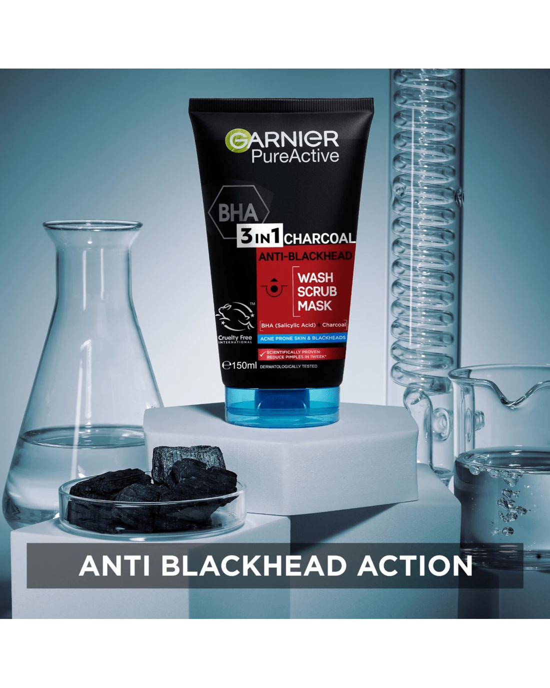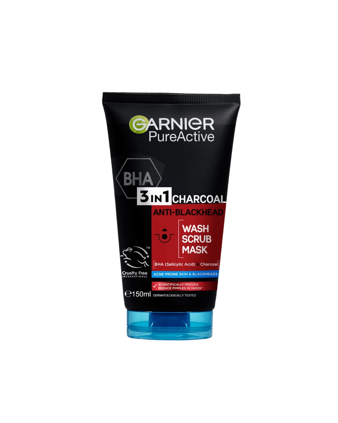 Garnier SkinActive PureActive Intensive 3-in-1 Anti-Blackhead Wash, Scrub and Mask 150ml - Charcoal