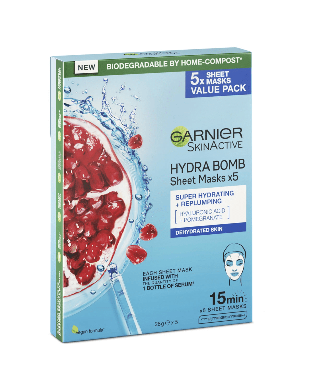 Sold by KmartGarnier SkinActive 5 Pack Hydra Bomb Sheet Mask - Hyaluronic Acid and Pomegranate