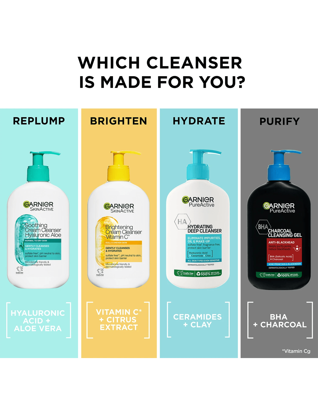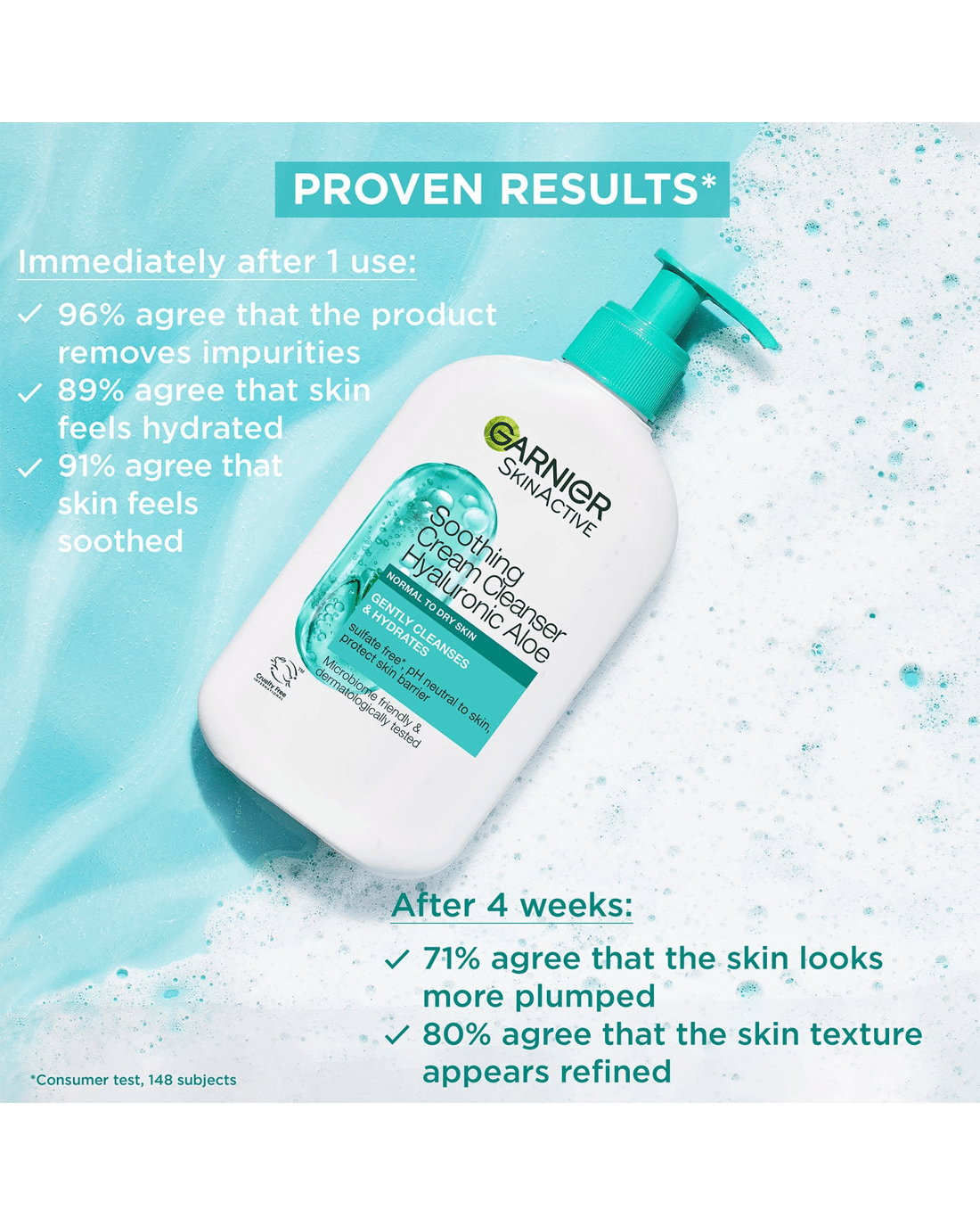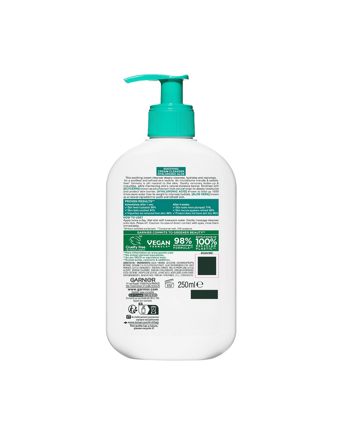 Garnier SkinActive Soothing Cream Cleanser 250ml - Hyaluronic Acid and Aloe Vera