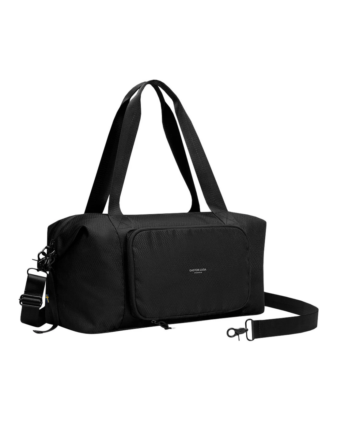 Carry essentials at ease with this Gaston Luga Lightweight Packable Duffel Bag. Made from GRS certified recycled polyester, it folds into a compact pouch for simple storage. Plus, it features two outer zipped pockets that provide quick access to small items, while the slip-over luggage strap allows for convenient transport.