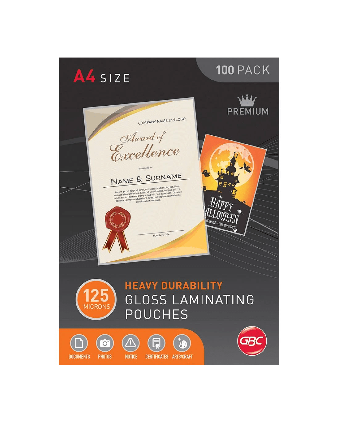 Sold by OfficeworksGBC A4 Laminating Pouch 125 Micron Gloss 100 Pack