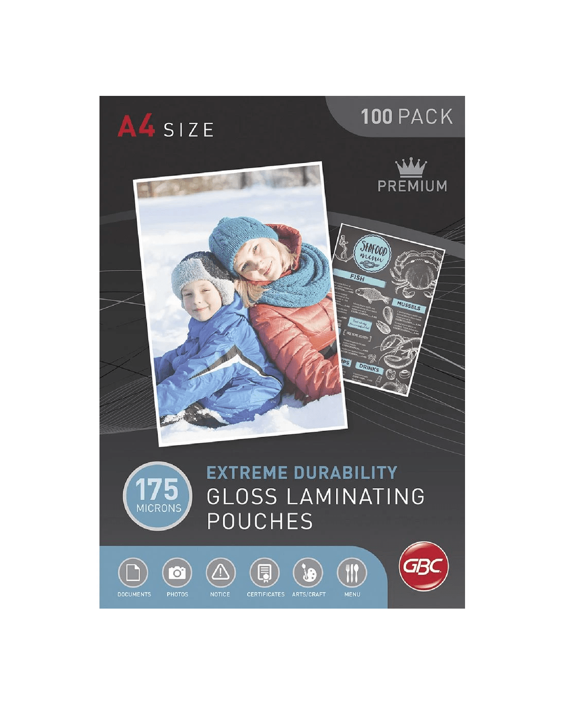 Sold by OfficeworksGBC A4 Laminating Pouches 175 Micron Gloss 100 Pack